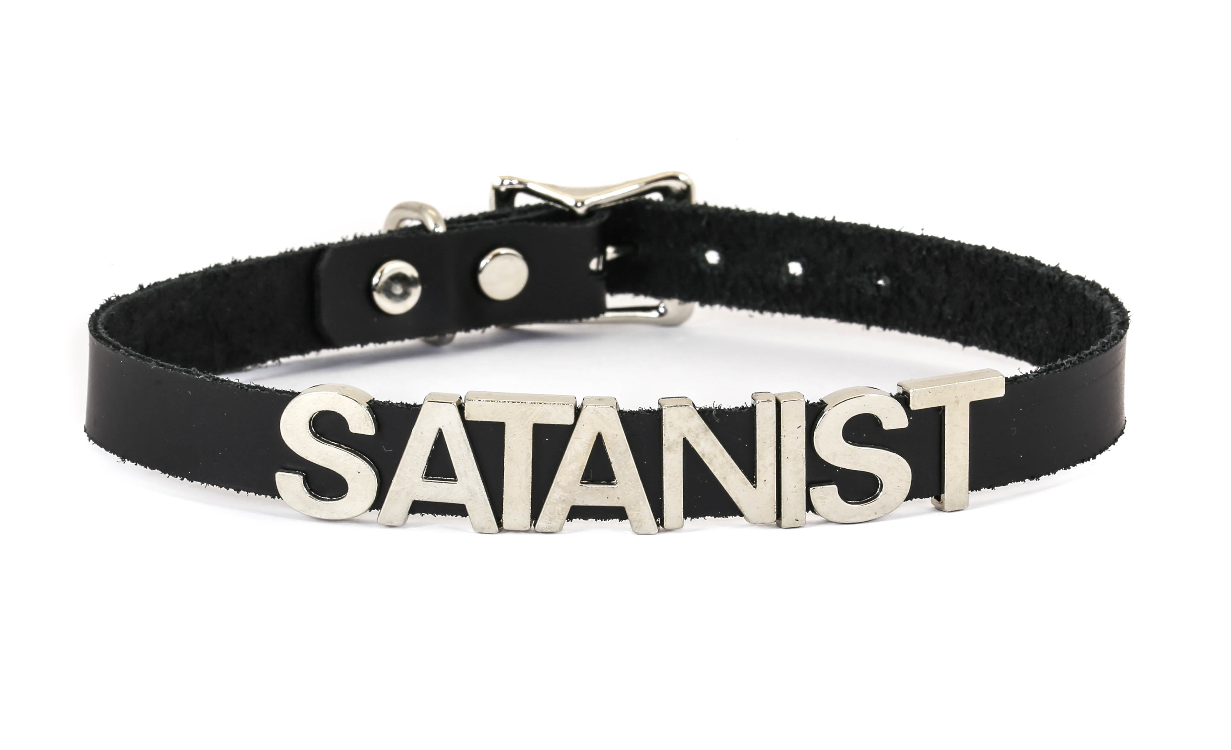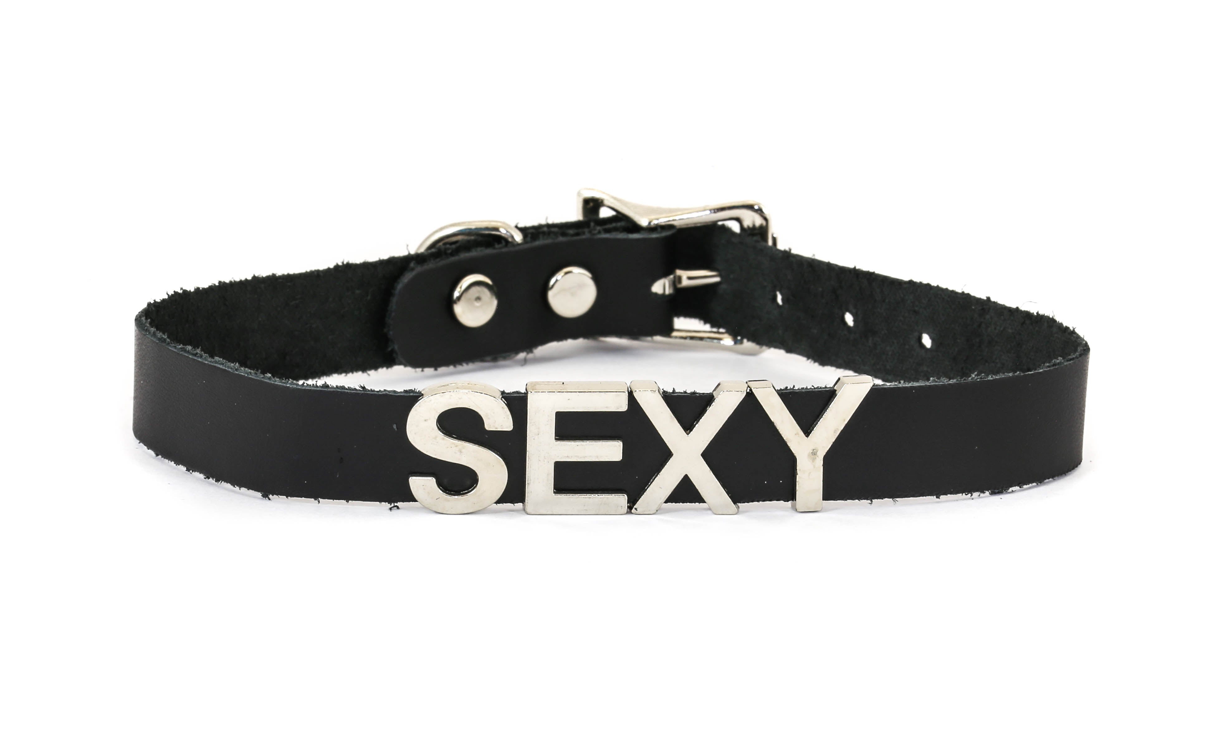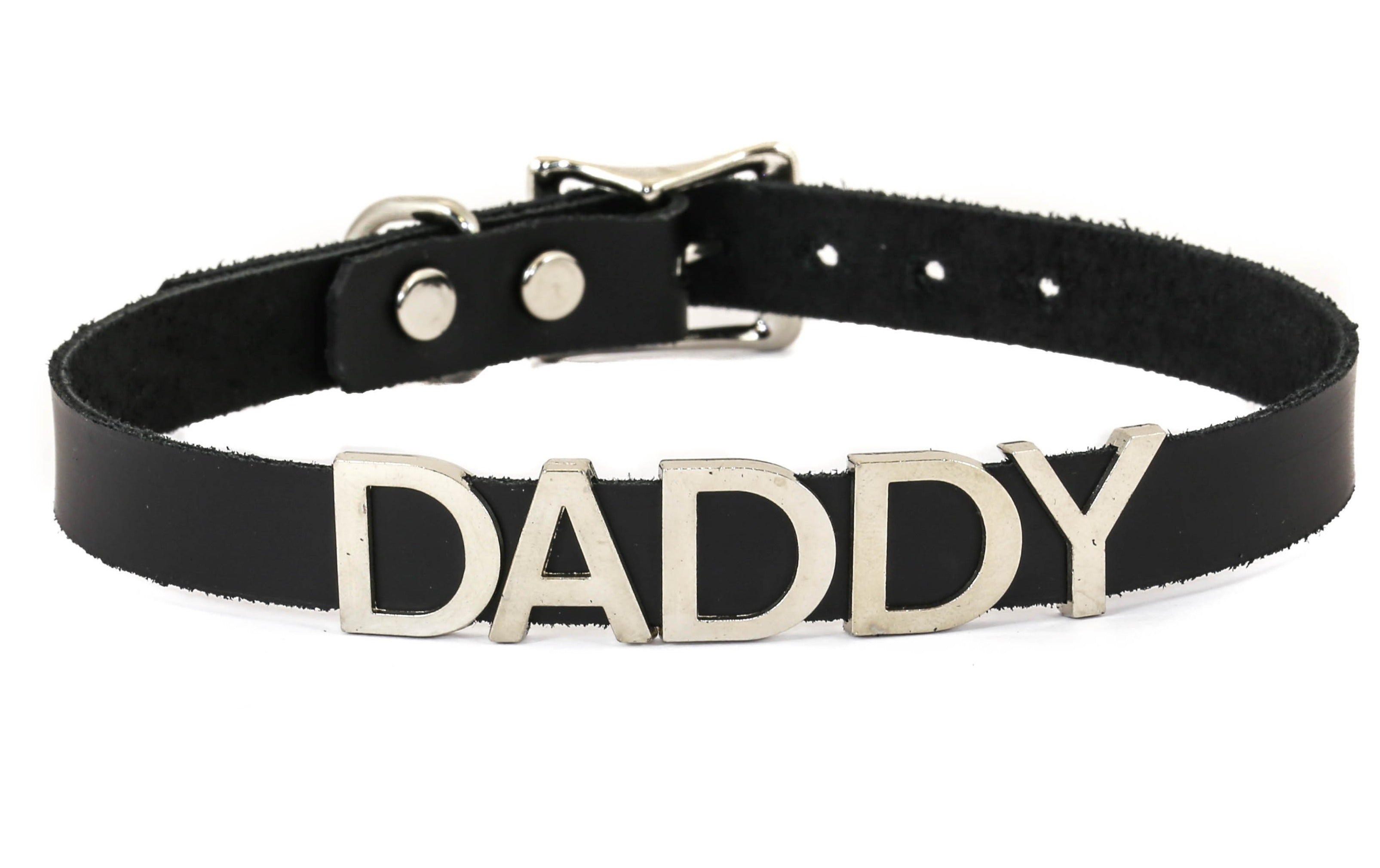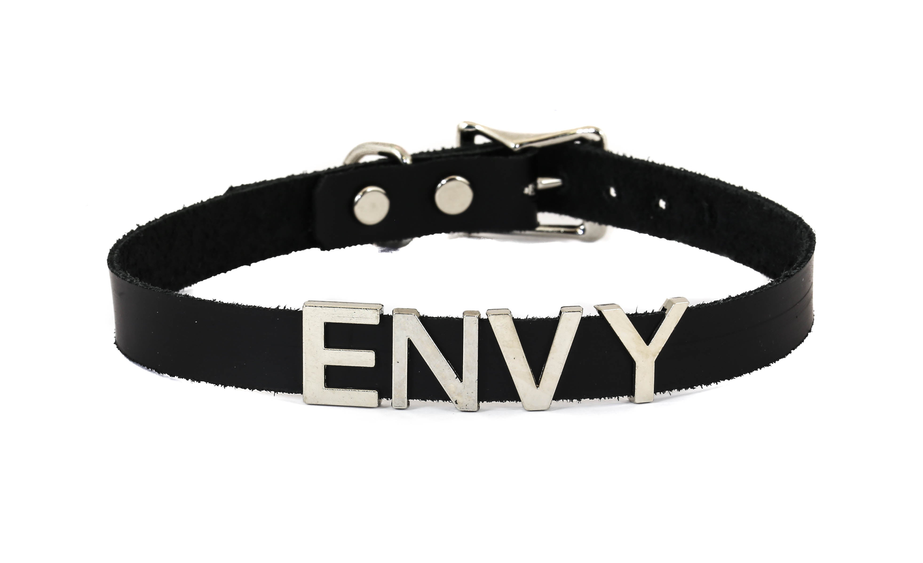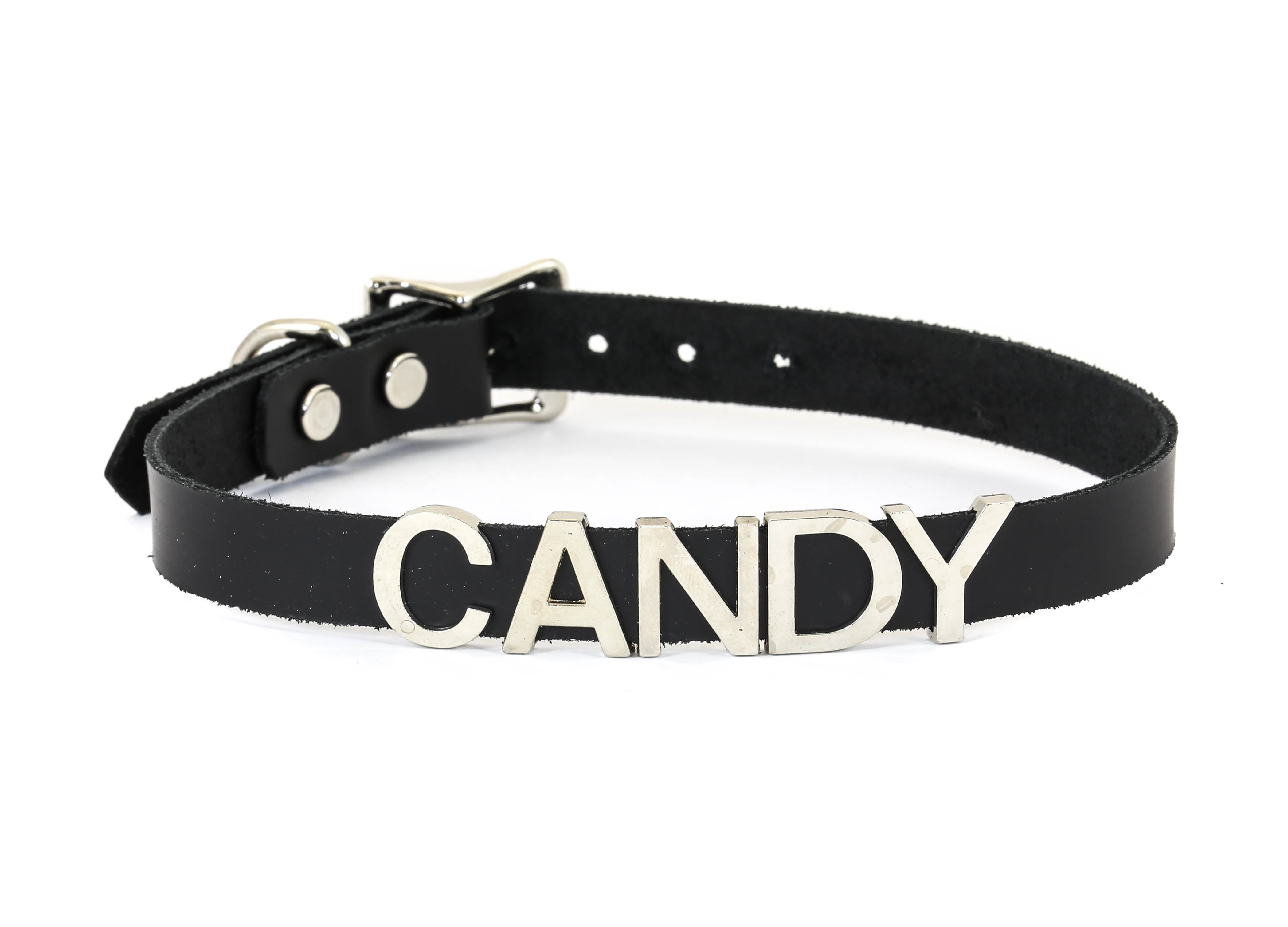 STAINLESS STEEL LETTER WORDS ID NAME BLACK LEATHER CHOKER