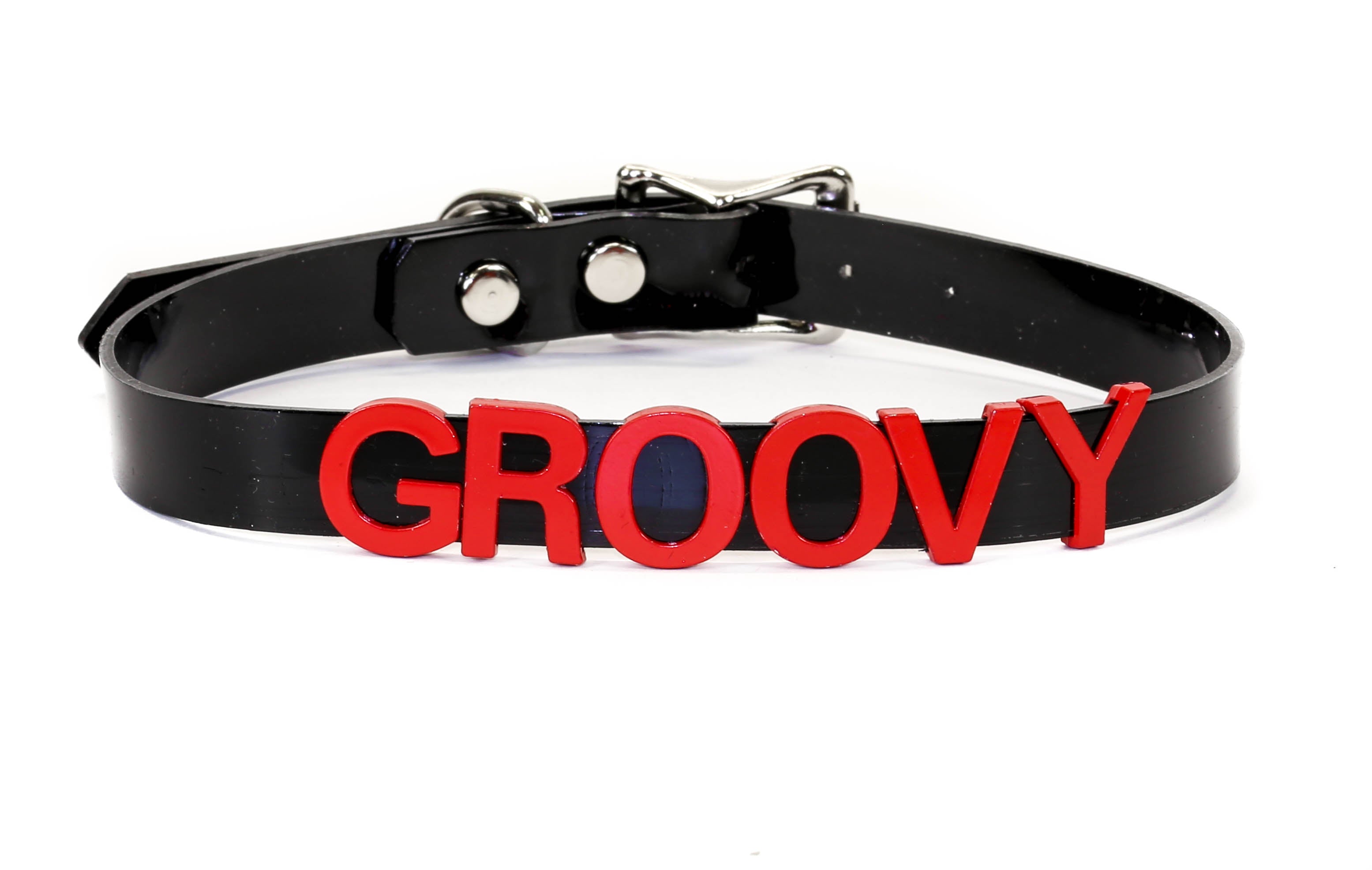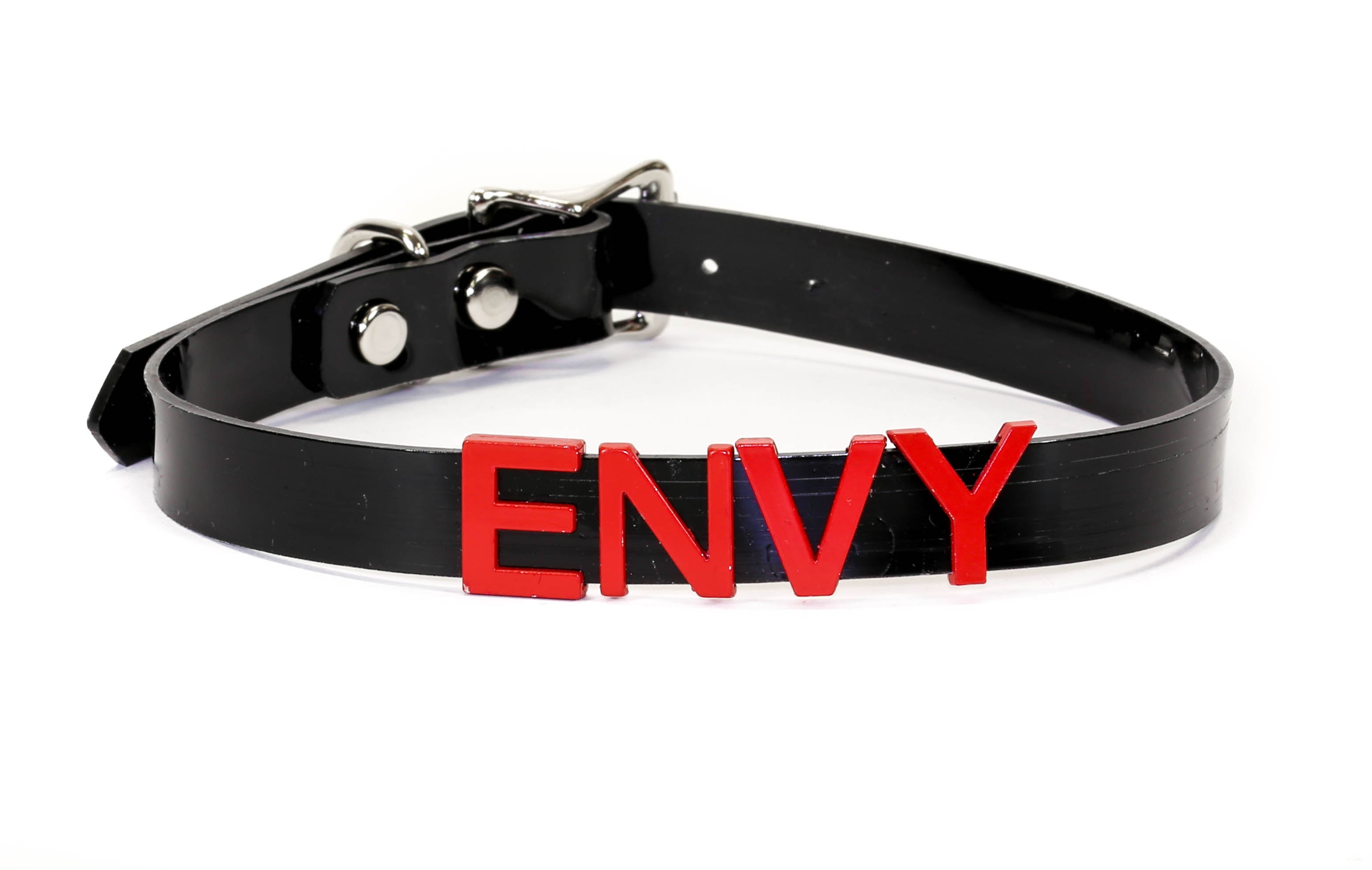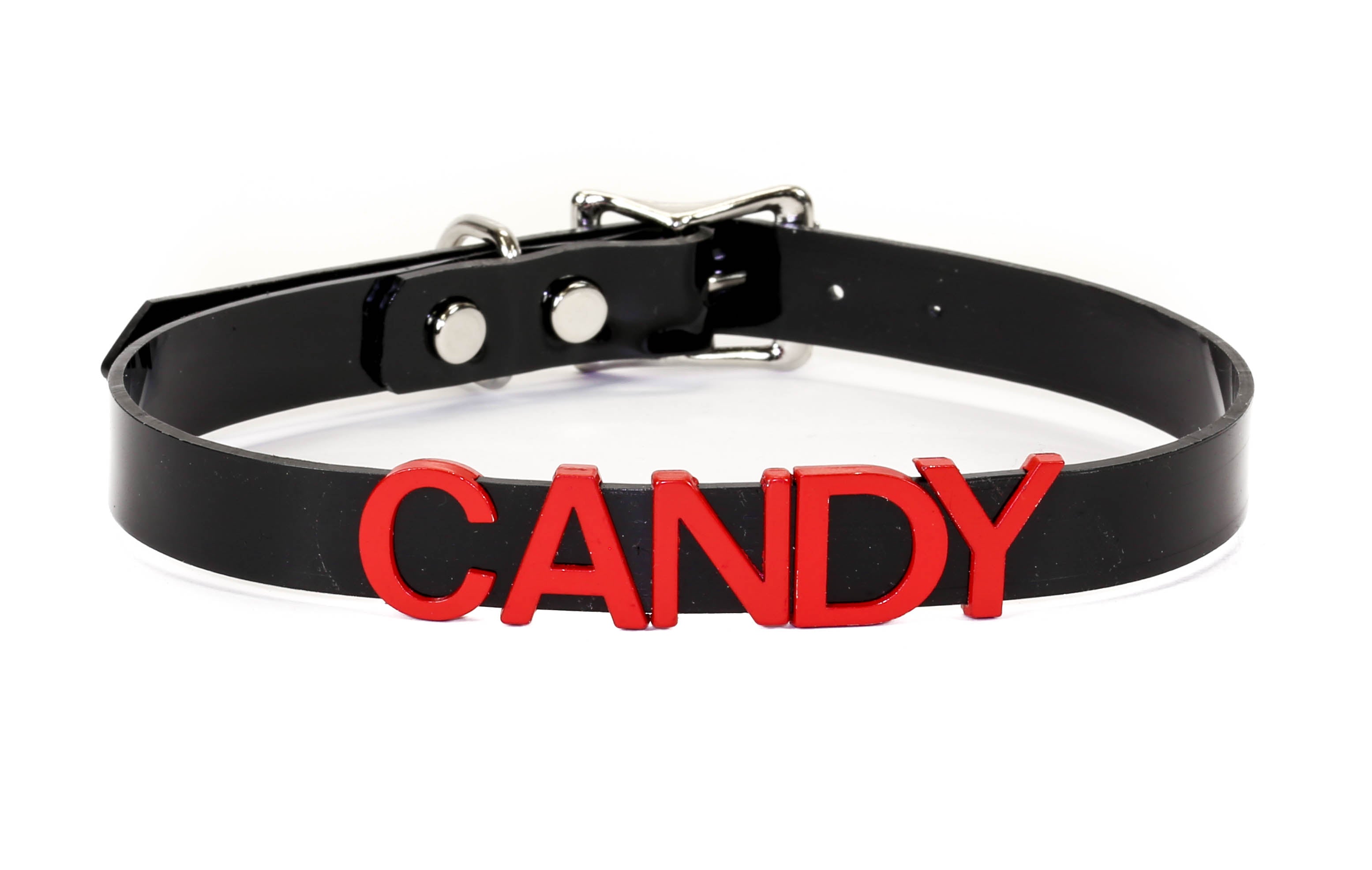 STAINLESS STEEL LETTER WORDS ID NAME BLACK VINYL CHOKER