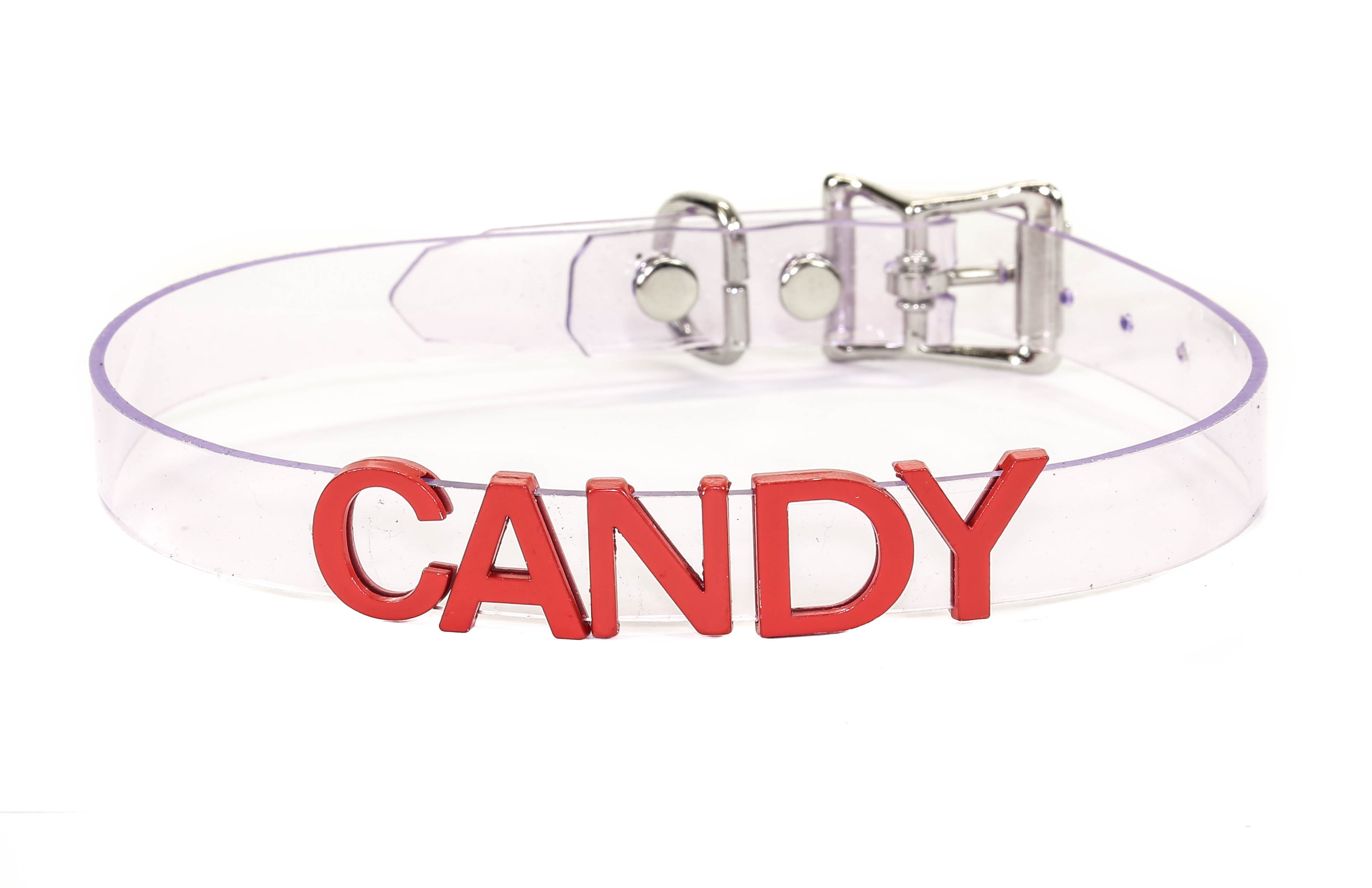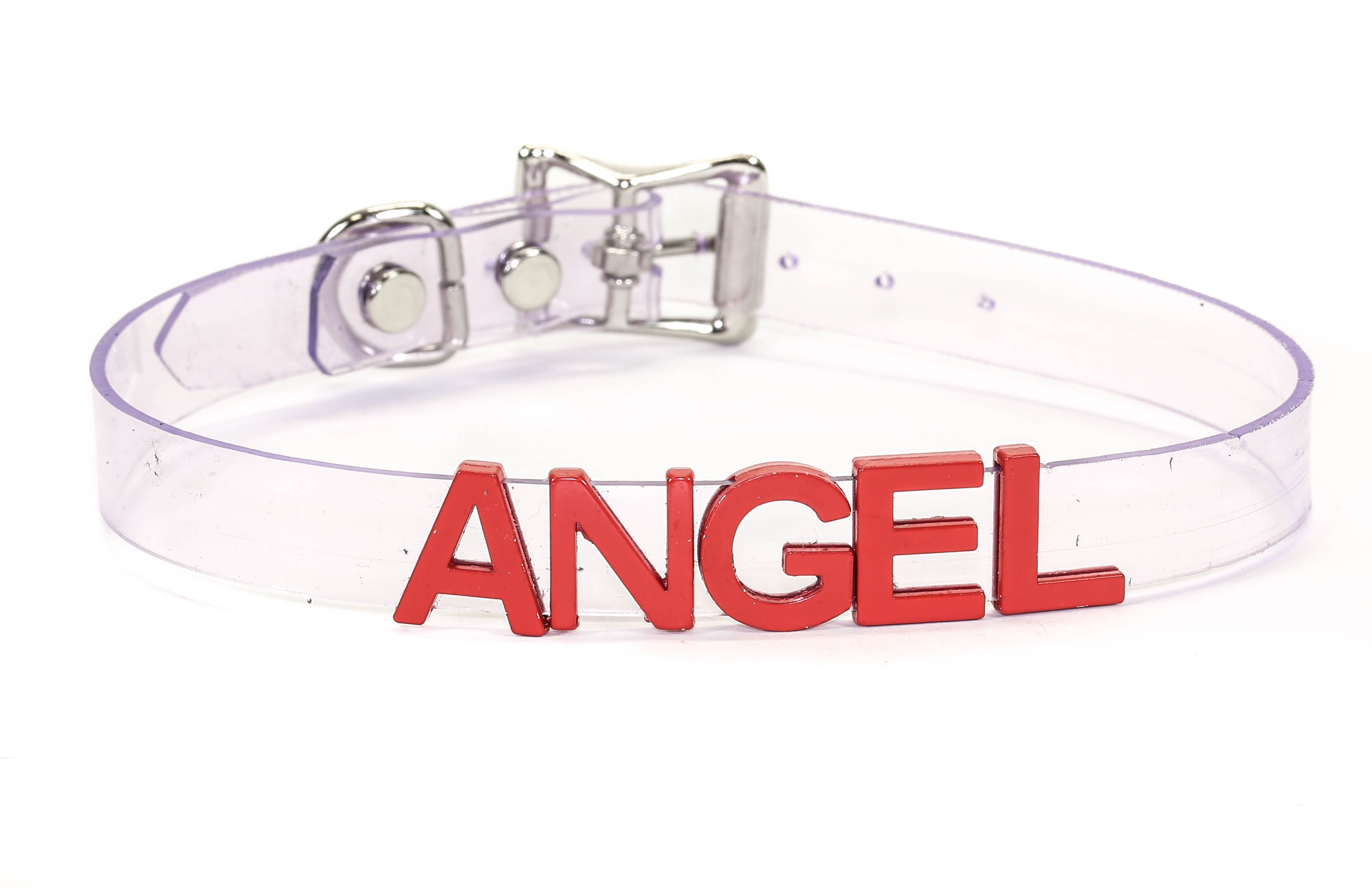 STAINLESS STEEL LETTER WORDS ID NAME CLEAR VINYL CHOKER