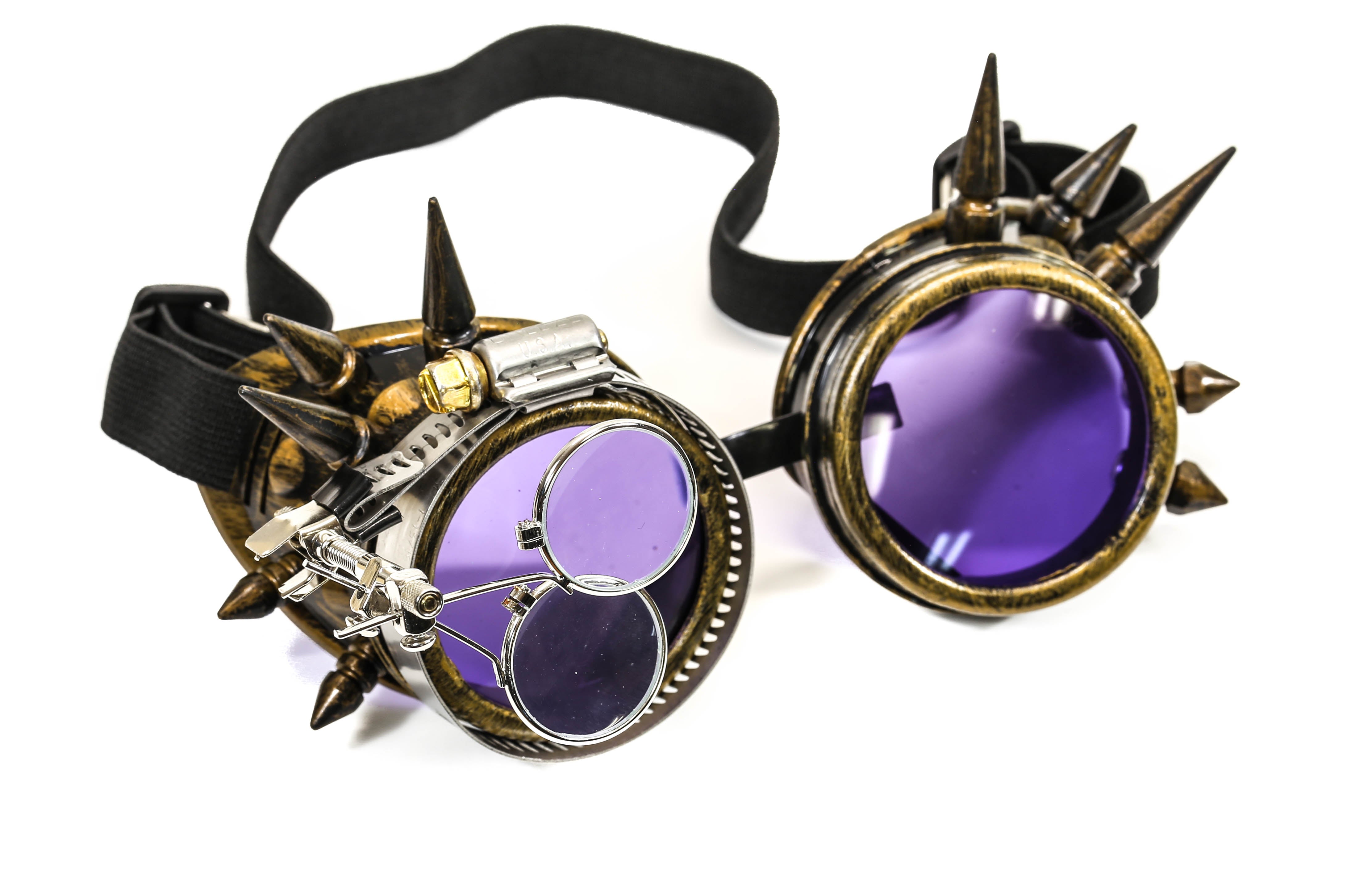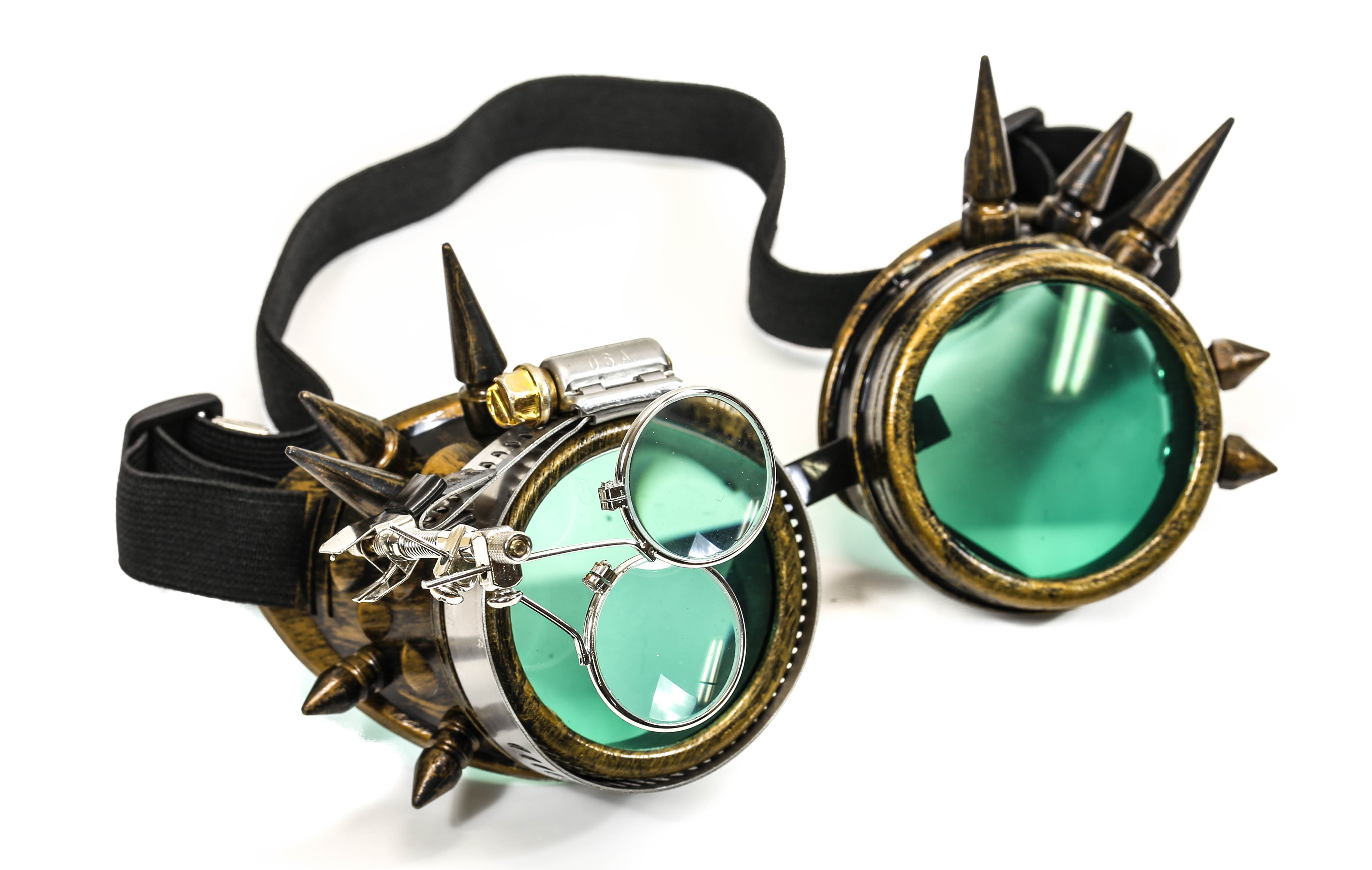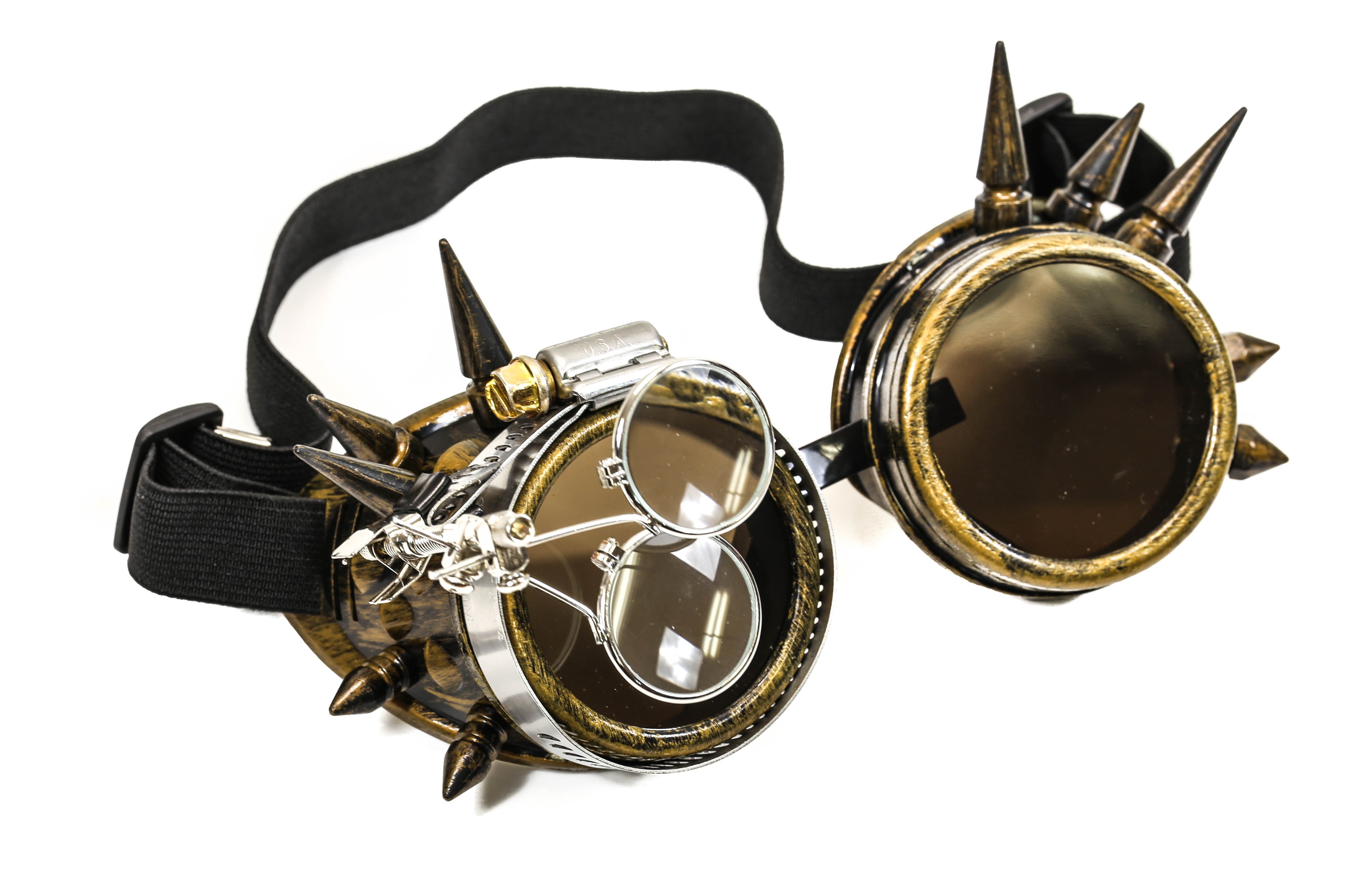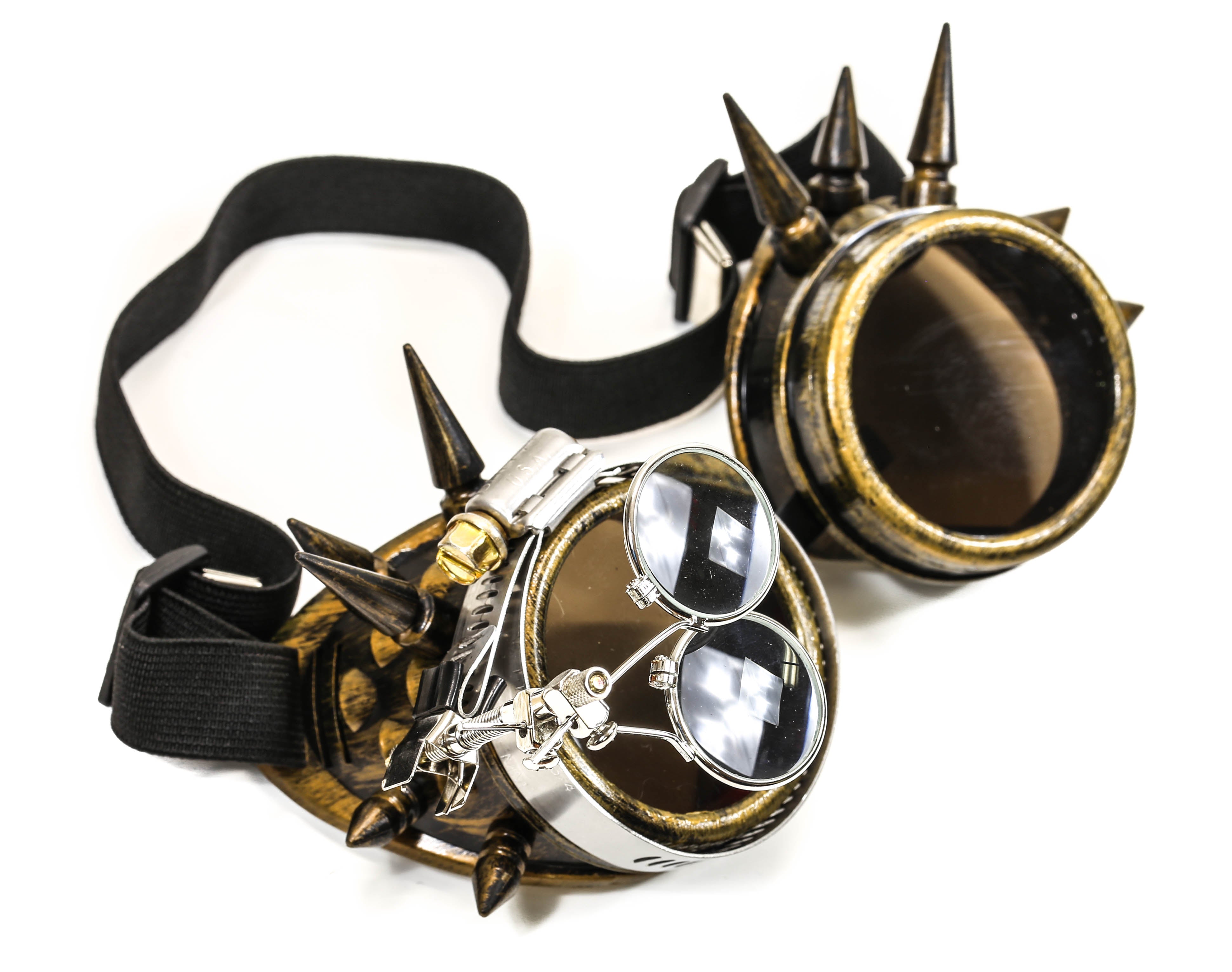 | 16X LOUPE BRASS SPIKE GOGGLES COLORED LENS |