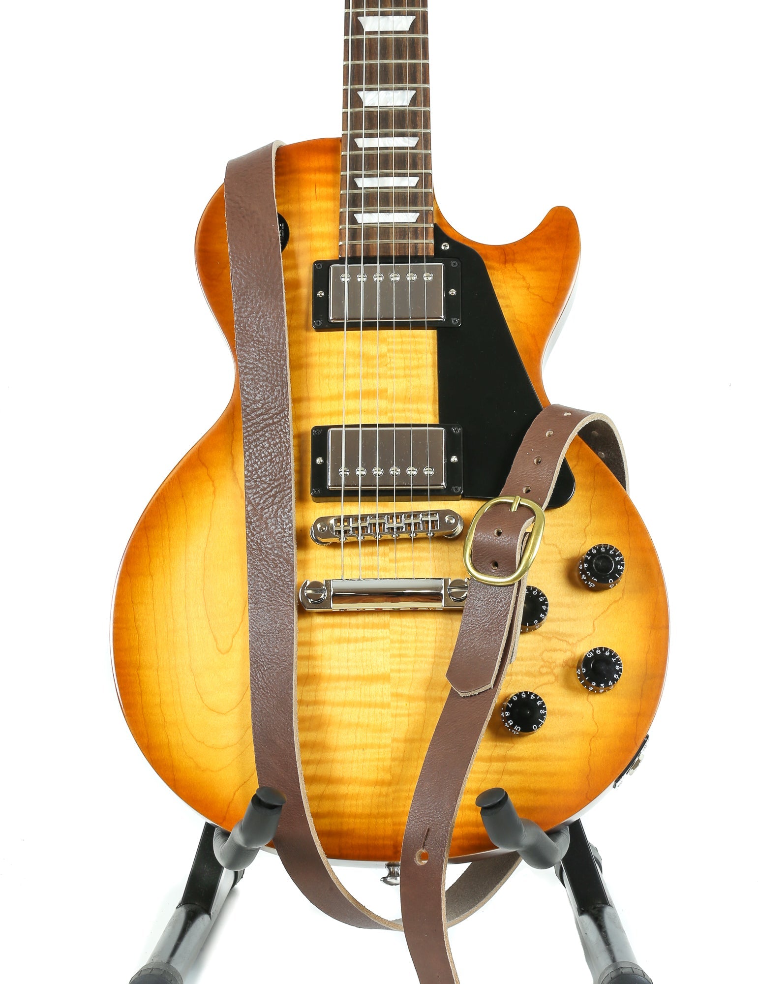 This 1 1/4" Wide Guitar Strap Is A Durable Heavy Duty Strap. Thin And Smart Looking And Can Hold any Heavy Guitars. Finest American Cowhide Military Grade Leather Used. Best For Acoustic Or Electric. Its Just A Raw Skin. No Color Or Chemical Dye Used. Edge Shaped And Sanded Properly So It Will Never Leave Stain Mark On Your Light Colored Shirts. Professionally & Carefully Handmade. Nickel Free Hardwares.