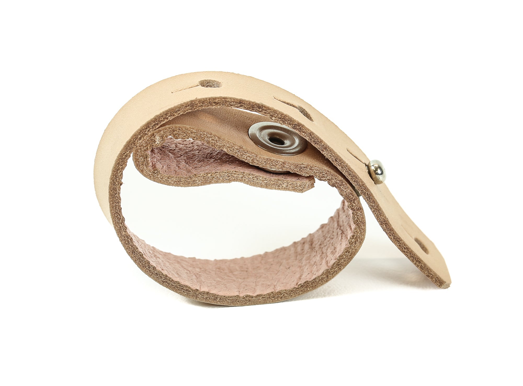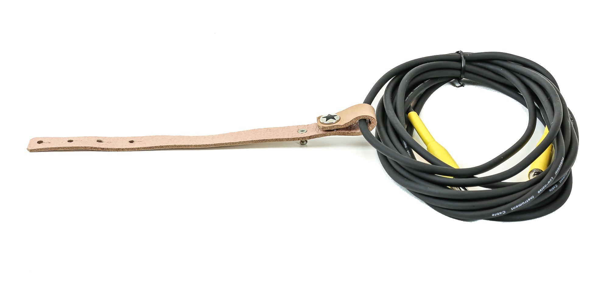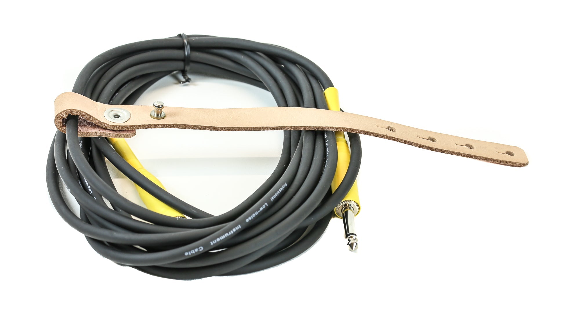 3/4" Genuine Leather Cable Organizer.  Leave It With The Cable Snapped.  So You Will Not Misplace This.  Snap The Cable First And Then Tie After Your Done With Your Gig.  Tie As Tight As You Want, There Are 4 Holes And Saddle Button Spike.  We reckoned get the 4 pack.