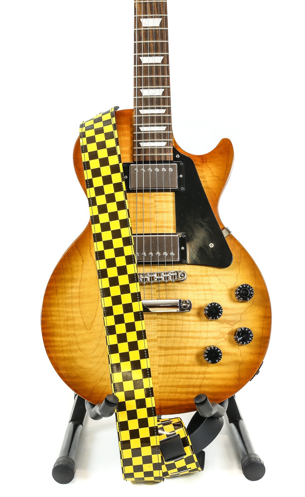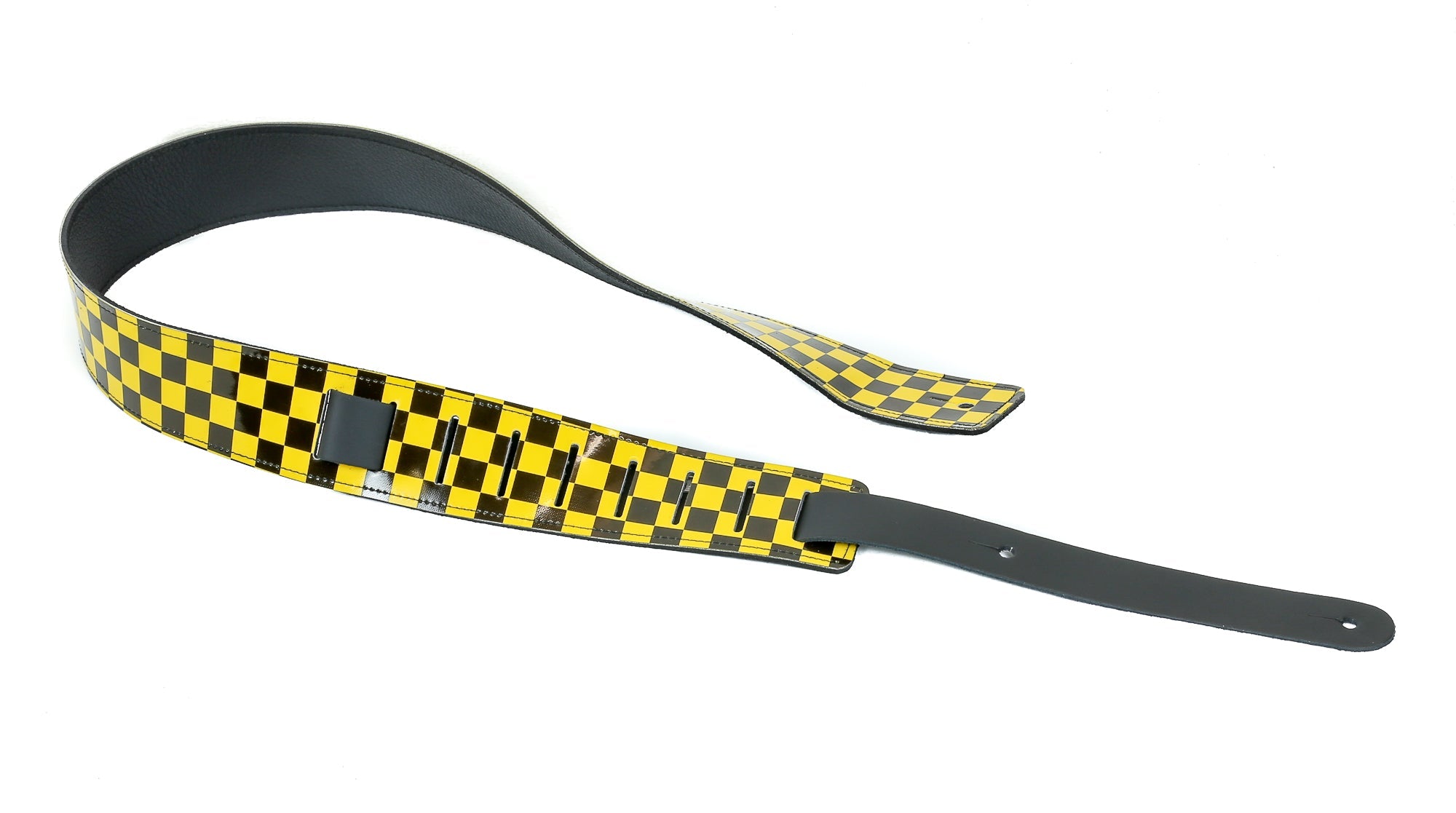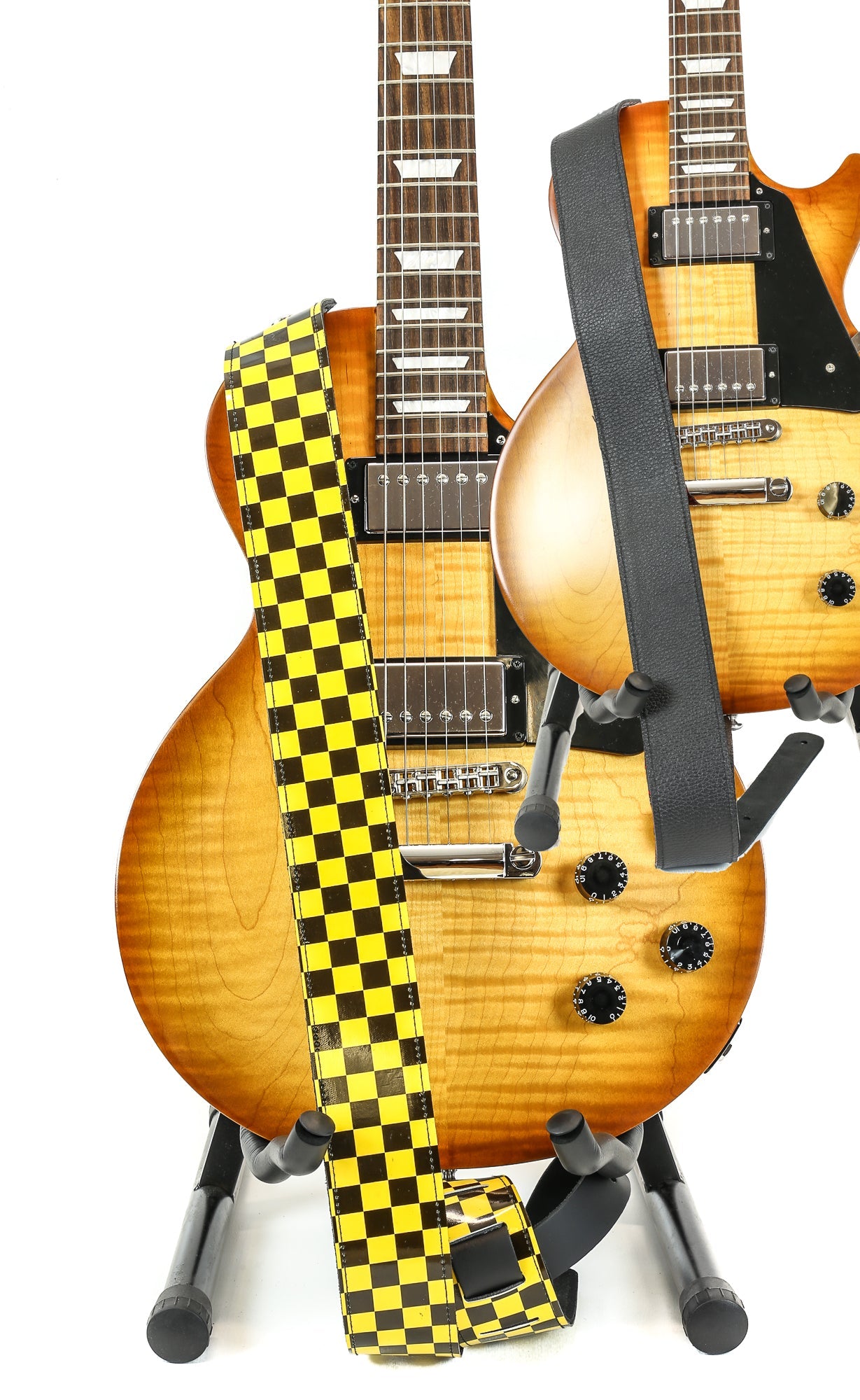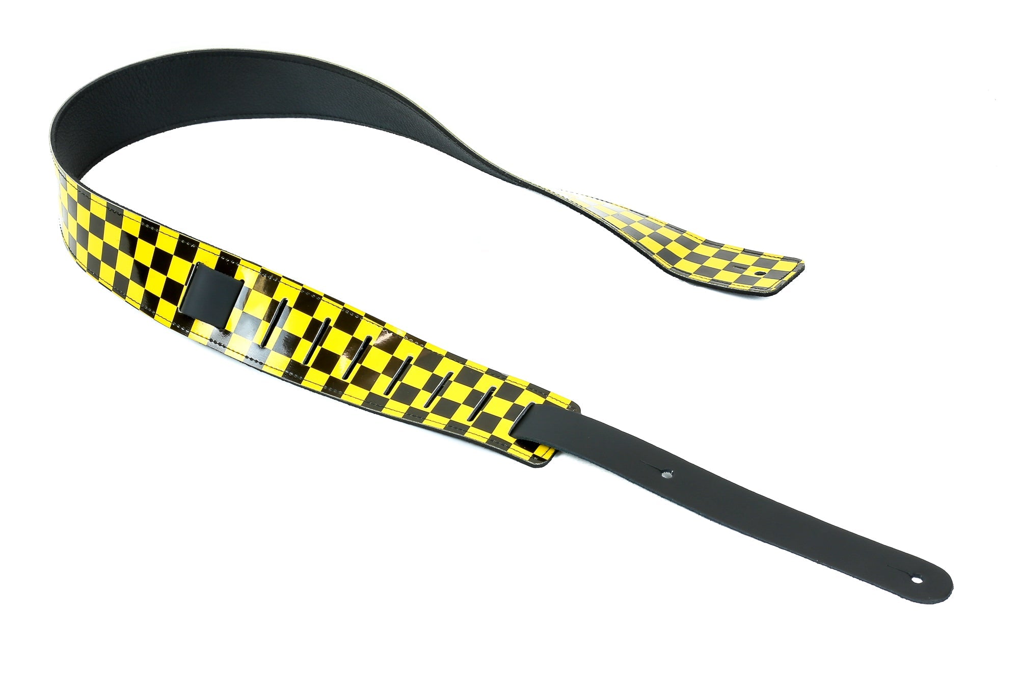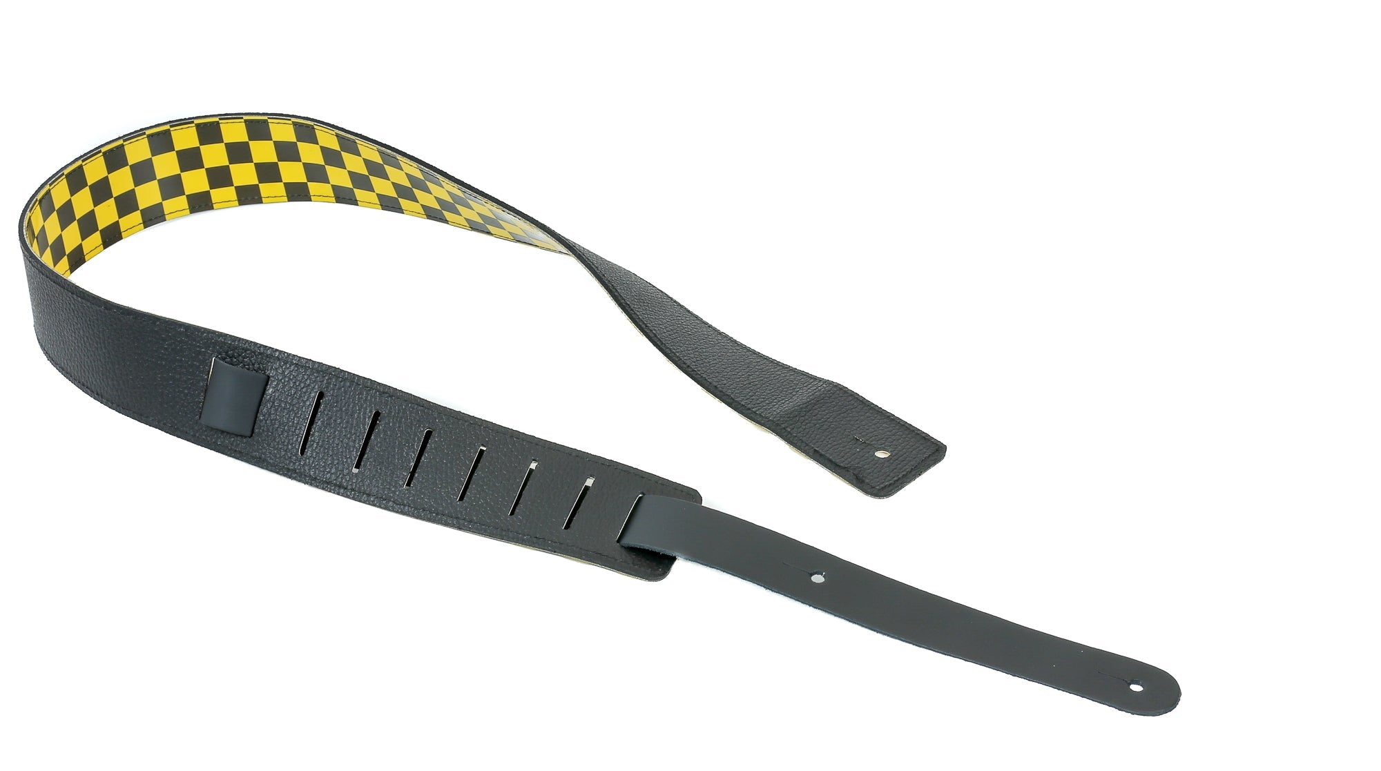 Reversible Genuine Buffalo Leather Checkerboard Classic Guitar Strap Yellow