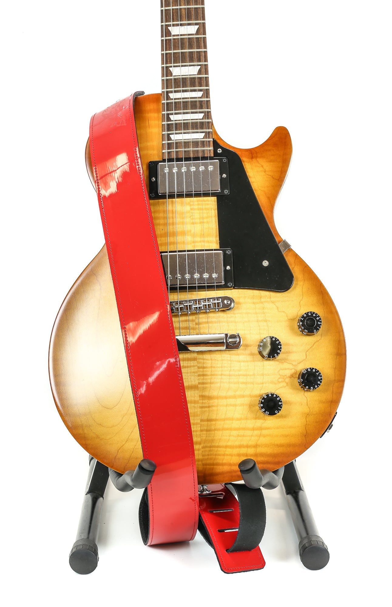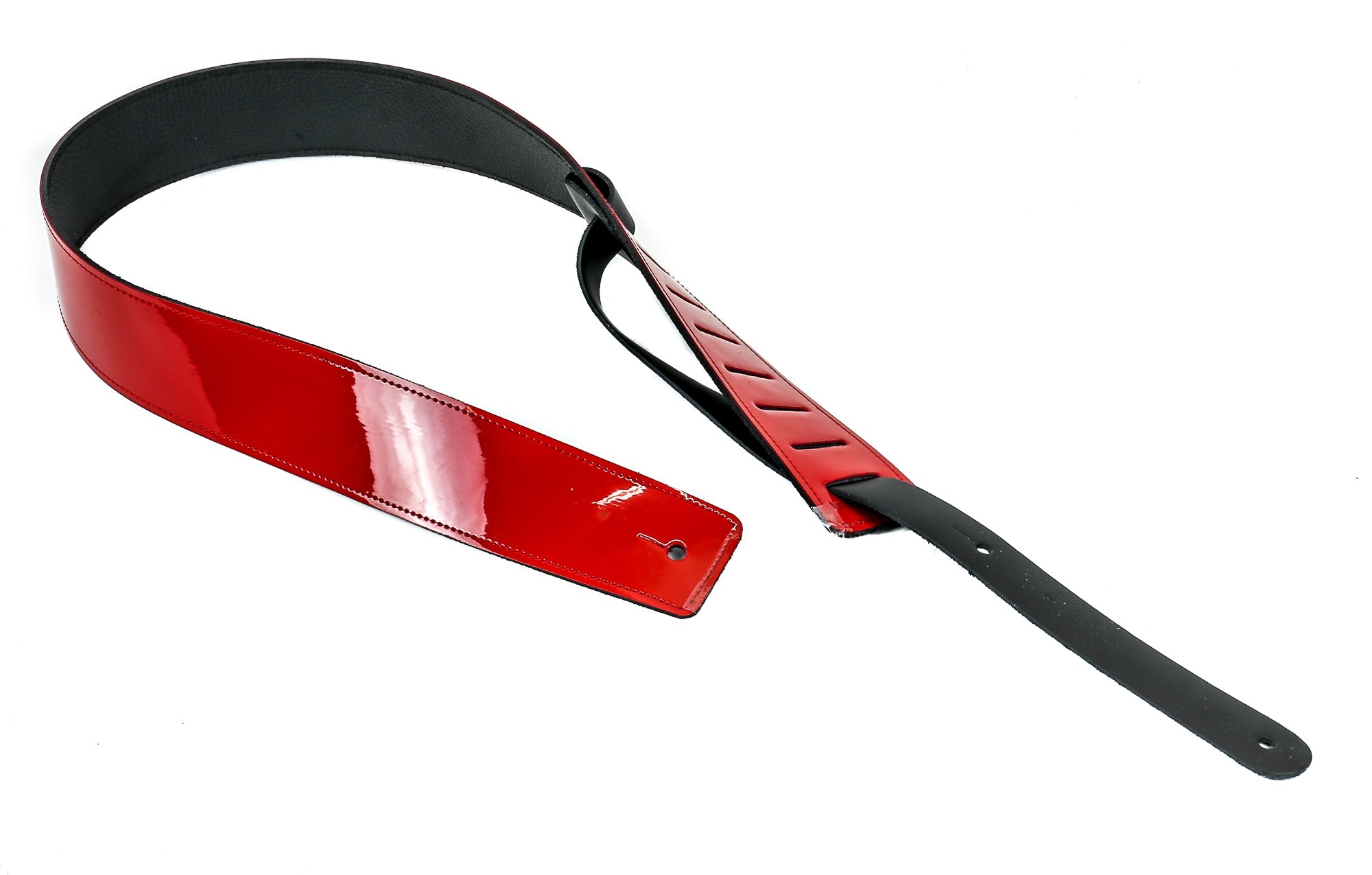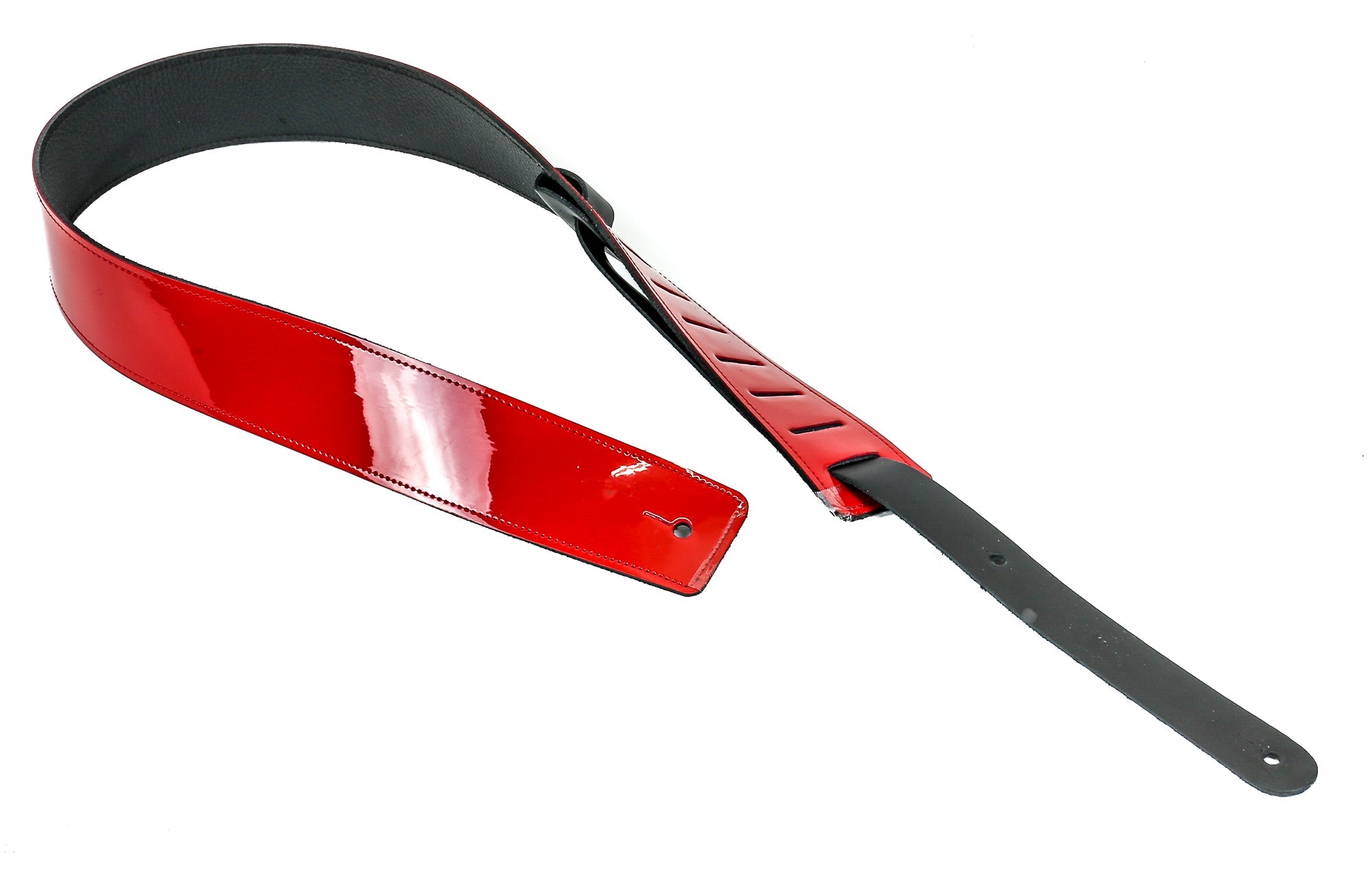 Reversible Genuine Buffalo Leather Patent Neon Classic Guitar Strap Neon Red