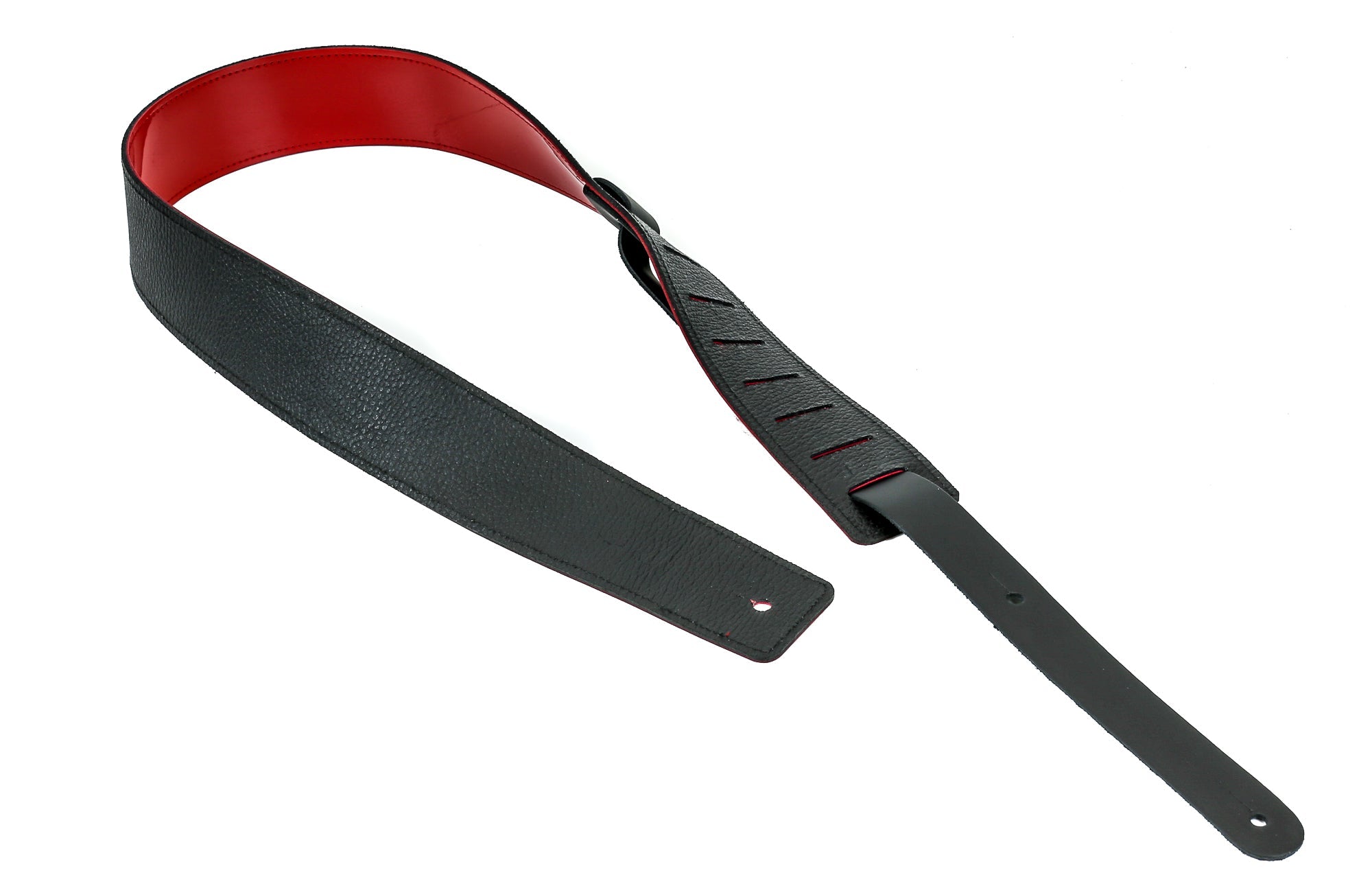 Reversible Guitar/ Bass Strap. One Side Has Genuine Black Buffalo Leather (Custom Leather Backing Like Latigo Brown Available On Request).  Other Side Made With Commercial Grade Designed Pvc Vinyl.  Bottom Connector Strap Made With Genuine 4Oz Cowhide Leather.  Two In One.  Great To Have This On Your Collection.