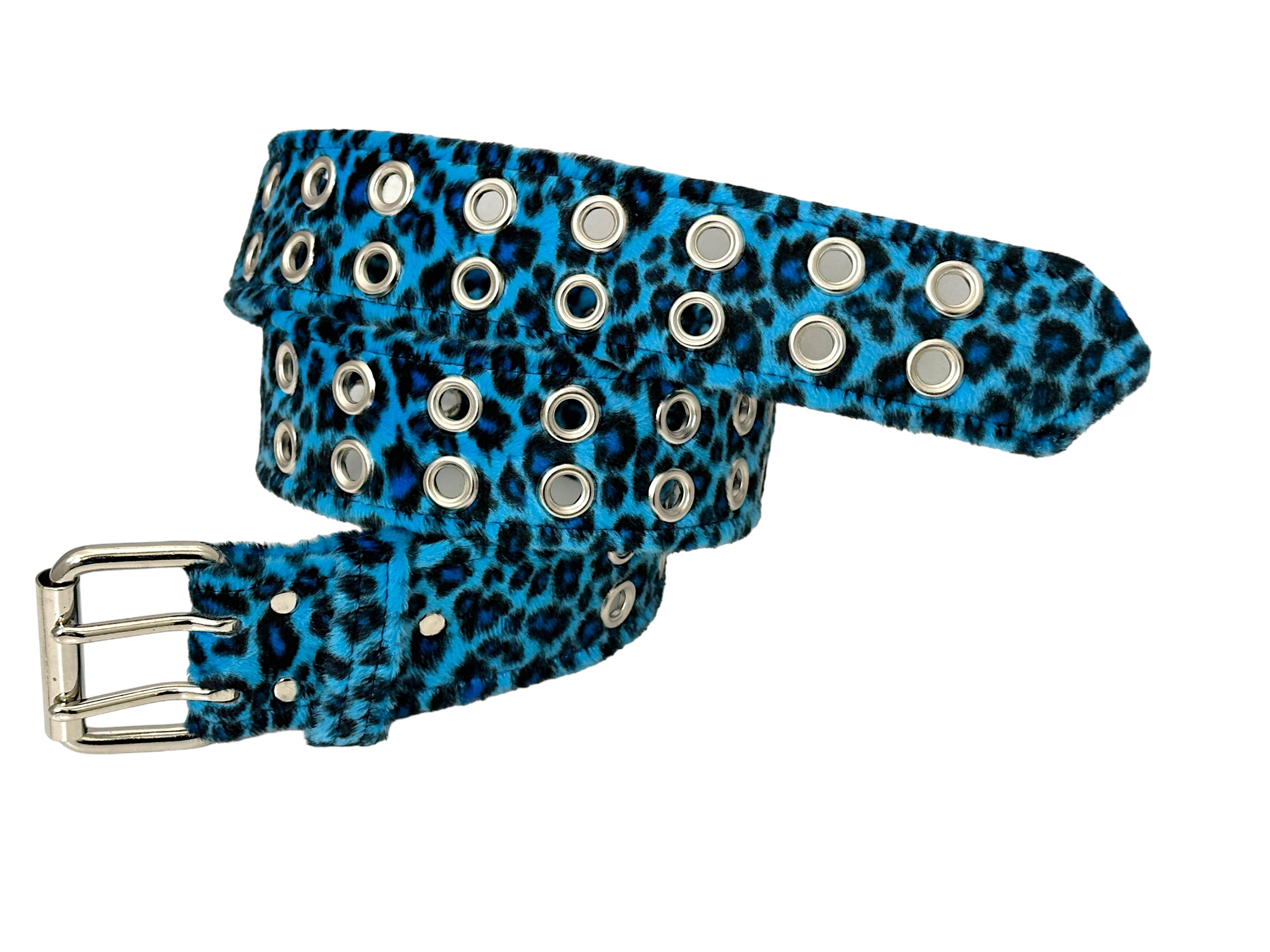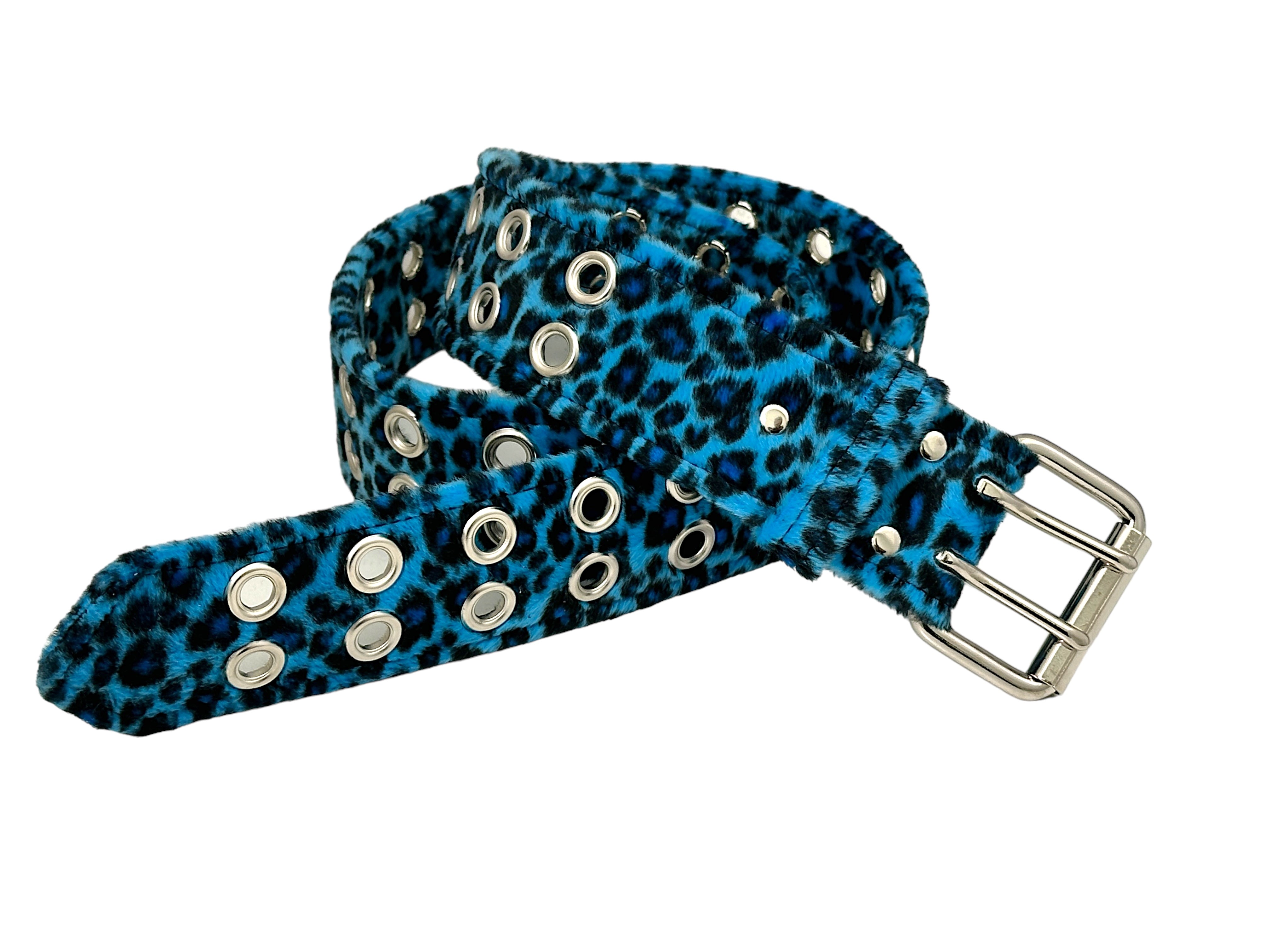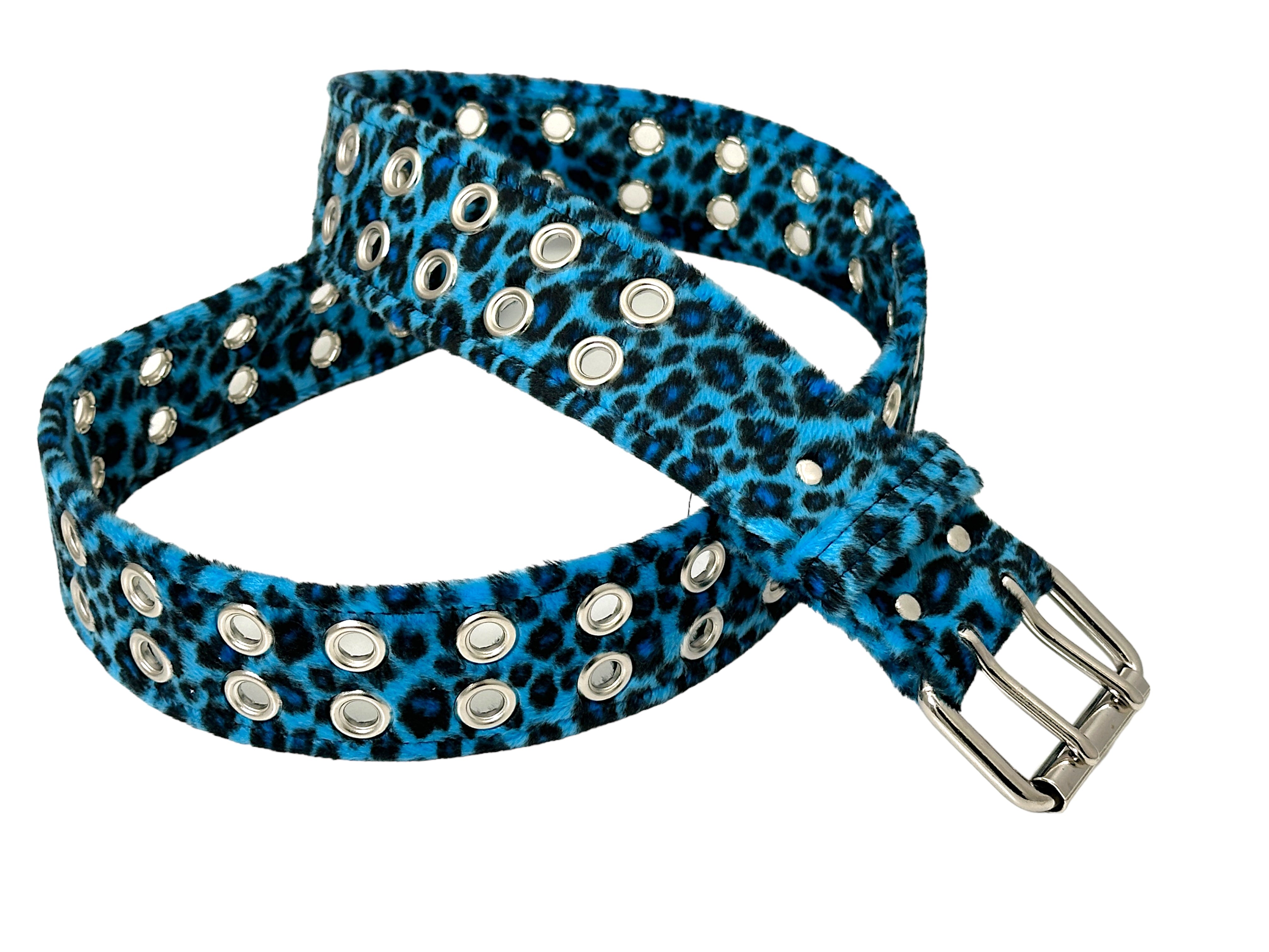 BLUE LEOPARD FUZZY 2 ROW GROMMET EYELET CARPENTER BELT