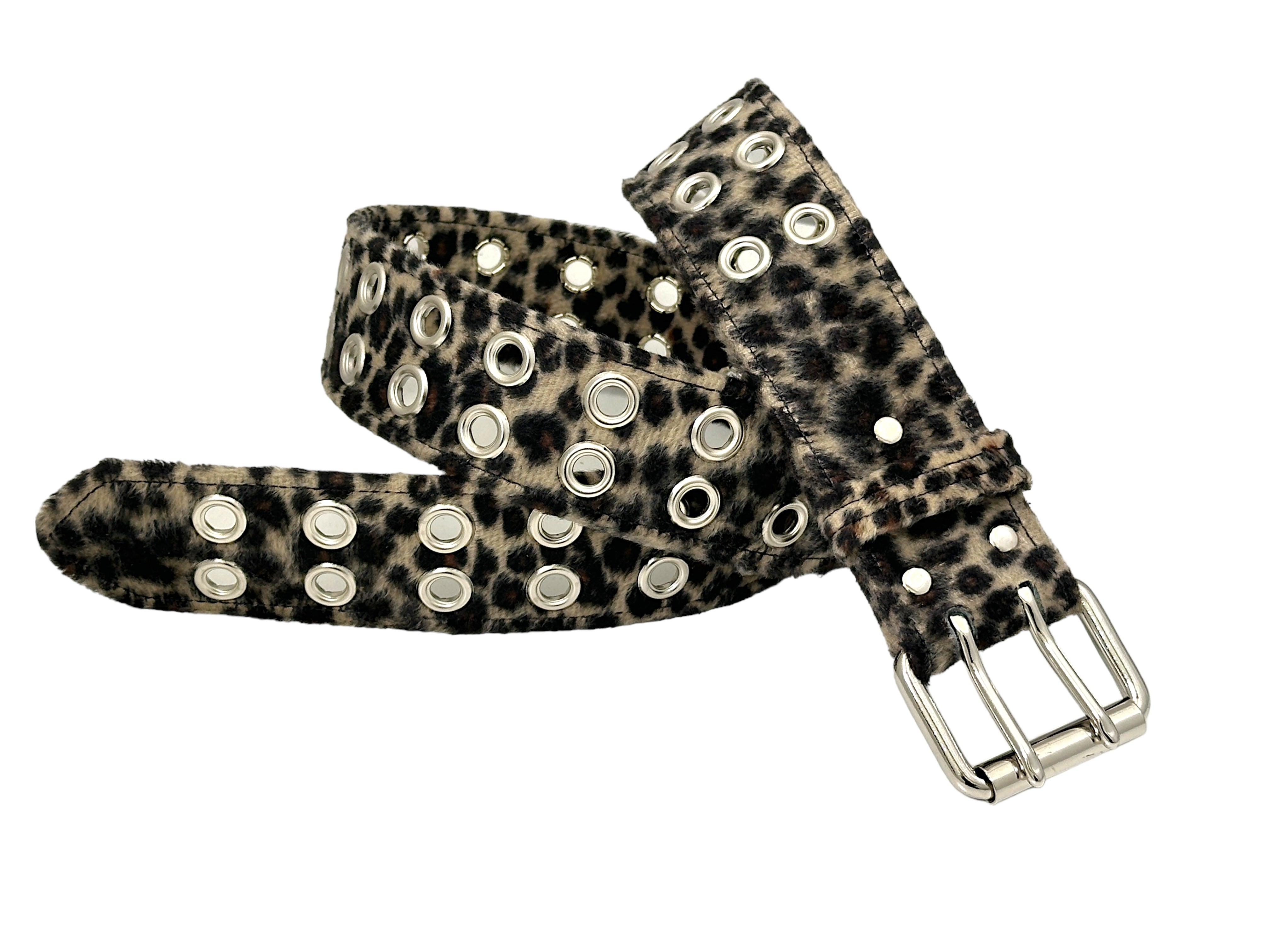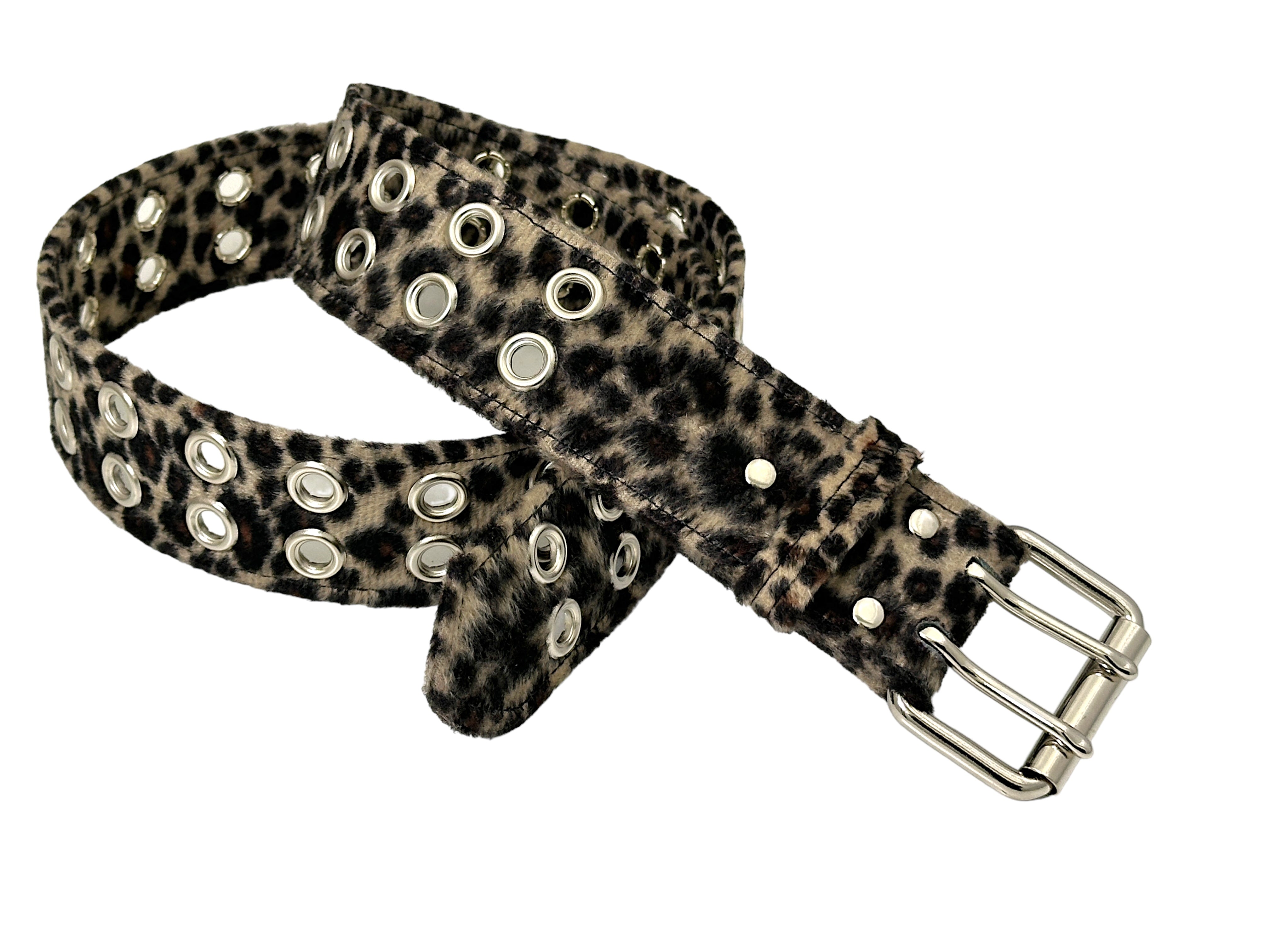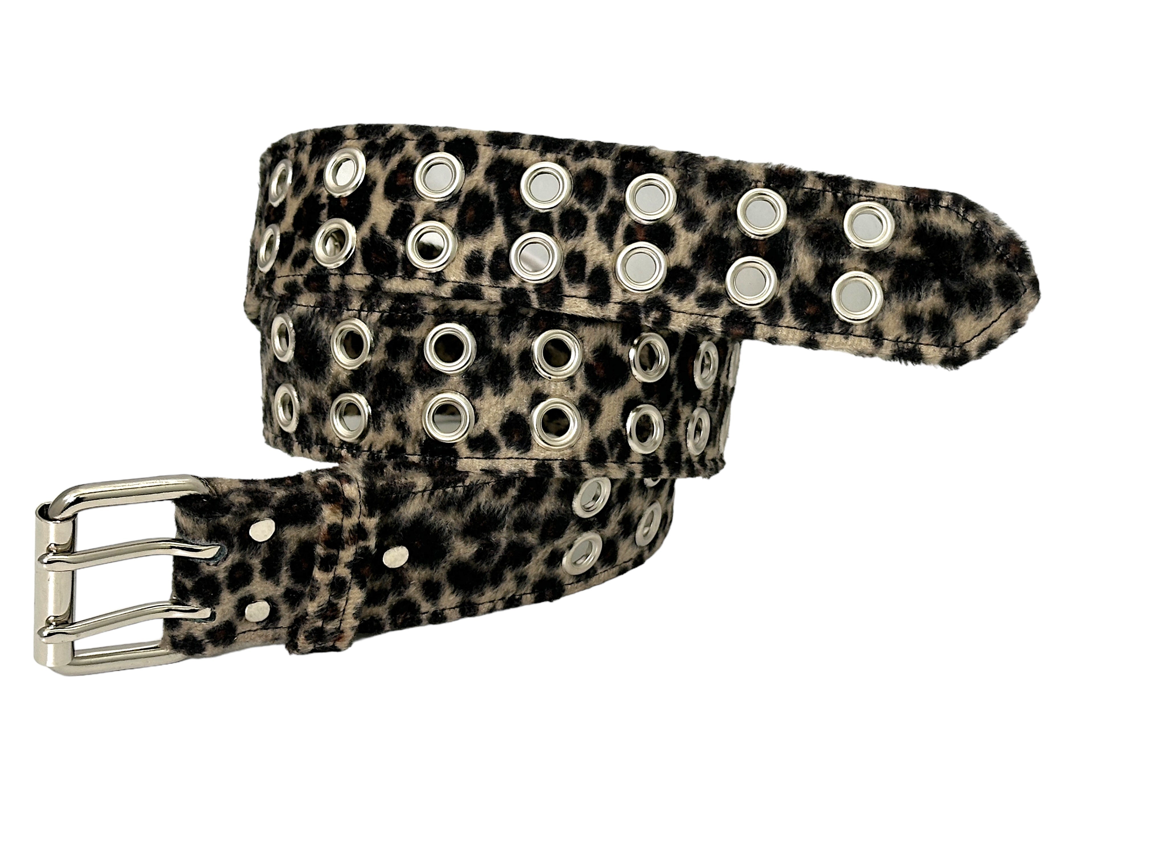 BROWN LEOPARD FUZZY 2 ROW GROMMET EYELET CARPENTER BELT