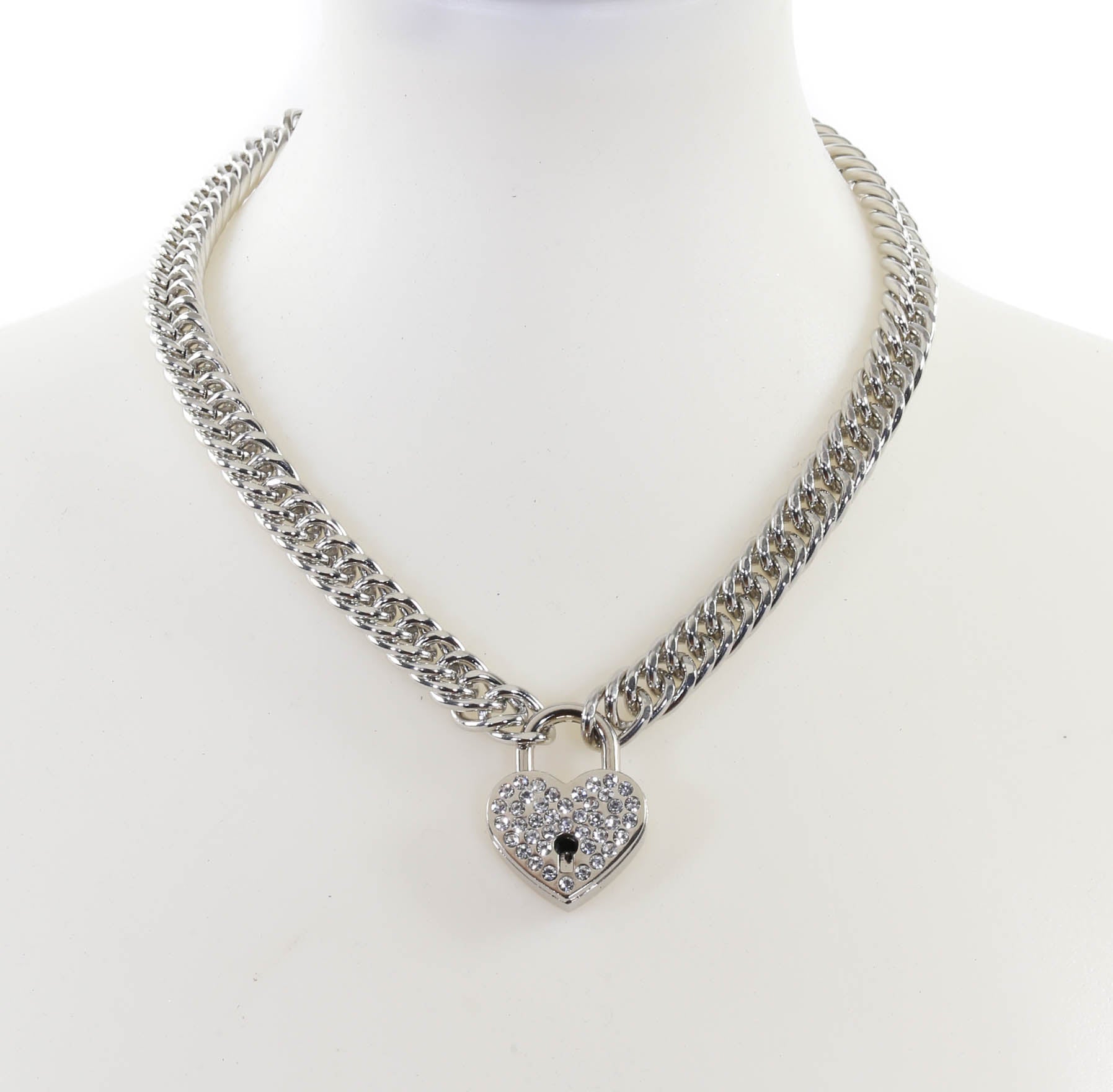Rhinestone Heart Padlock Necklace Pendant Premium Diamond Cut Chain