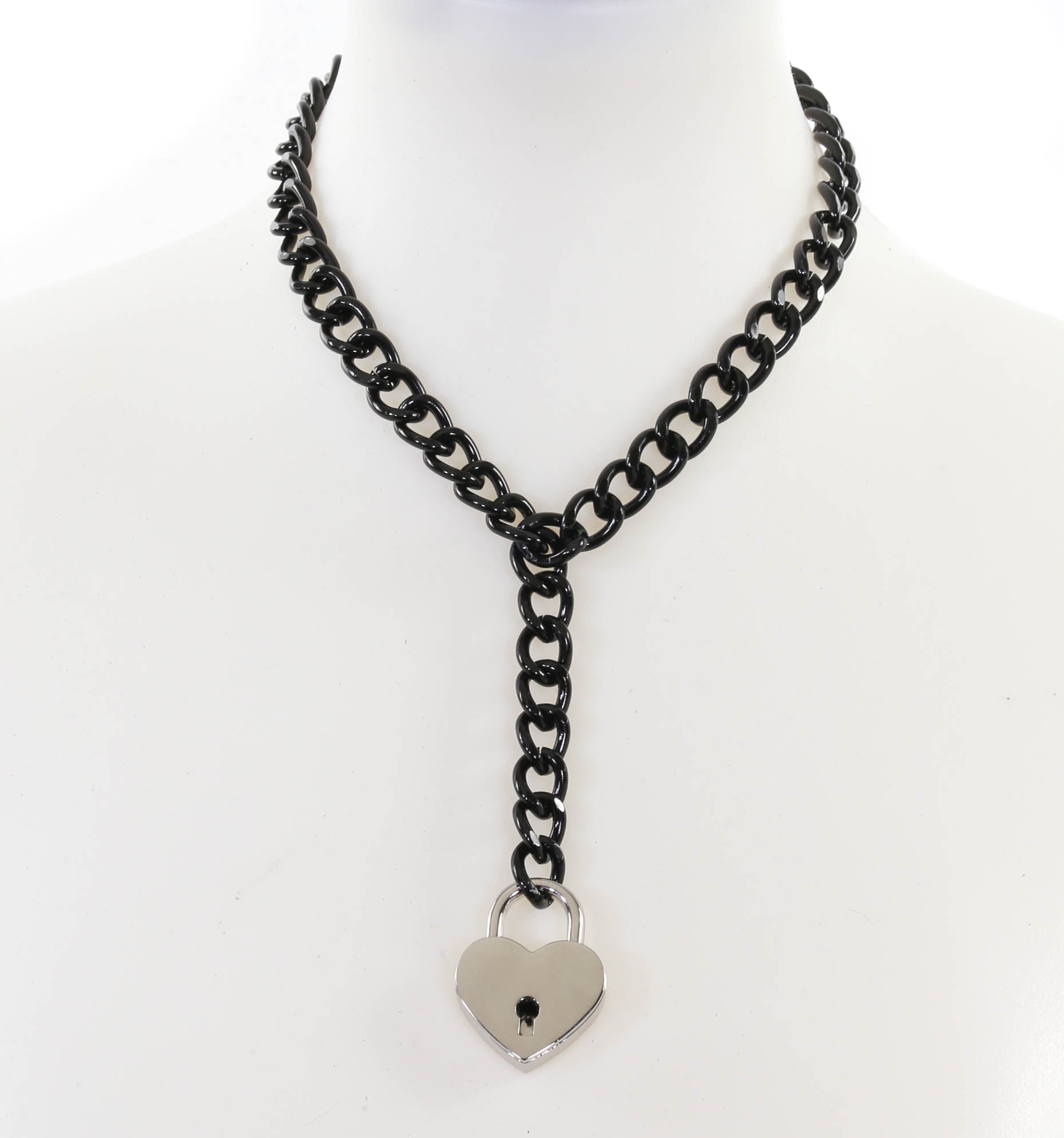 Hanging Sliver Heart Lock Pendant Black Cain Choker Necklace