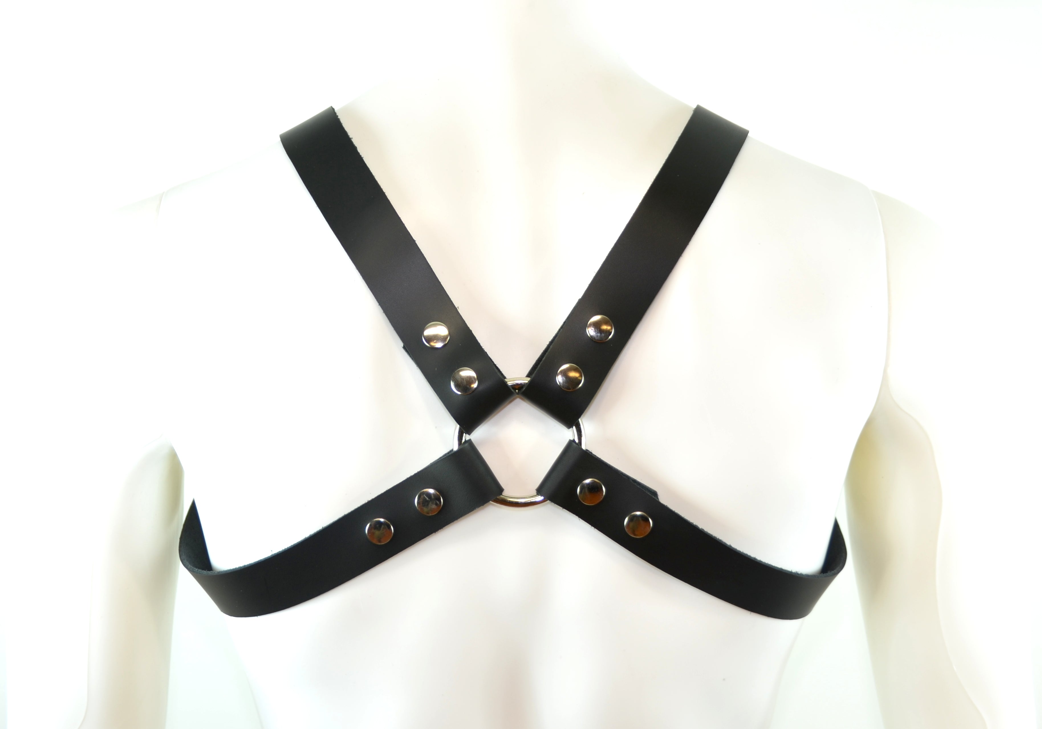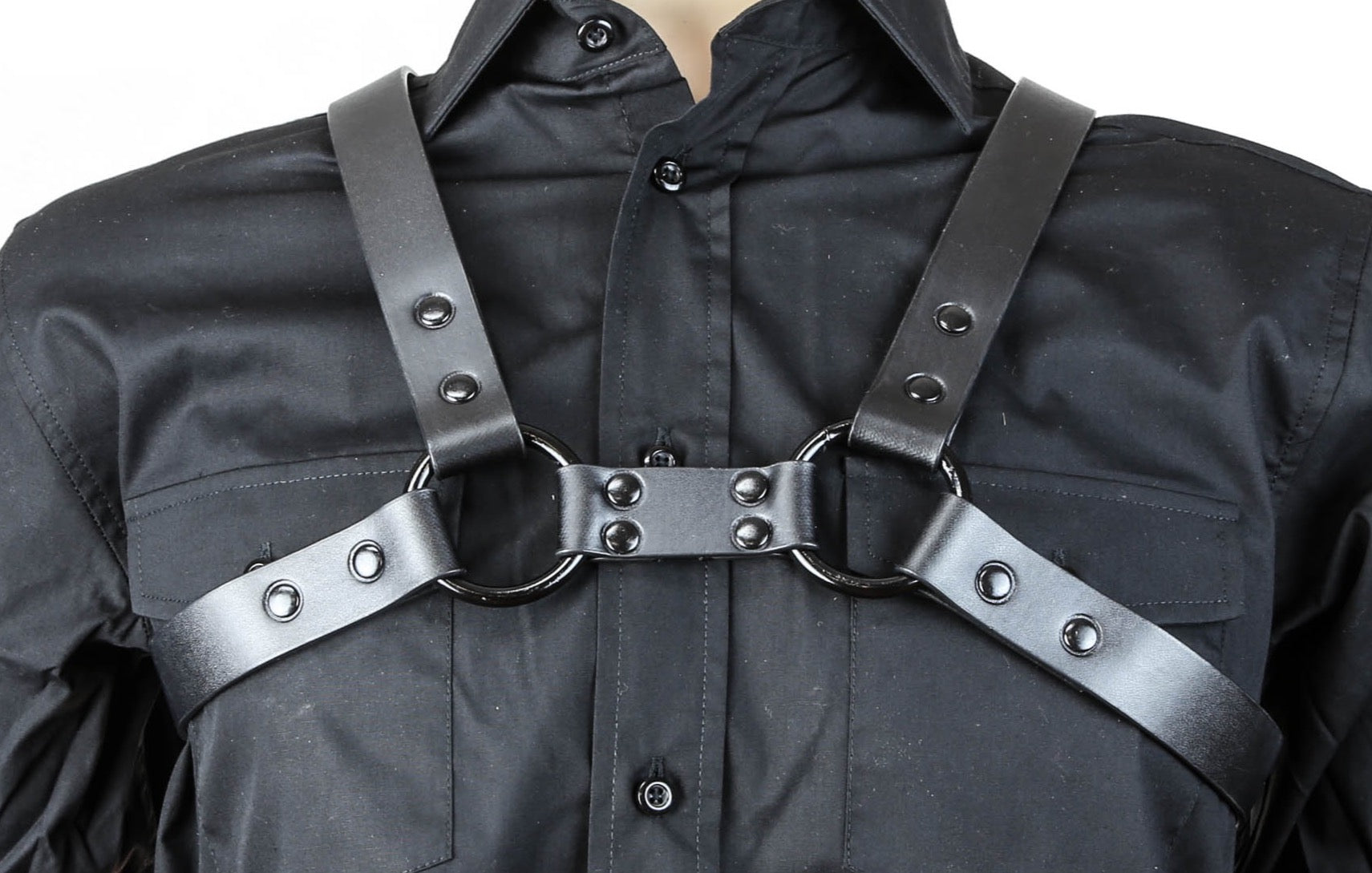 Leather Bulldog Body Harness Black Rings Snap Adjustable