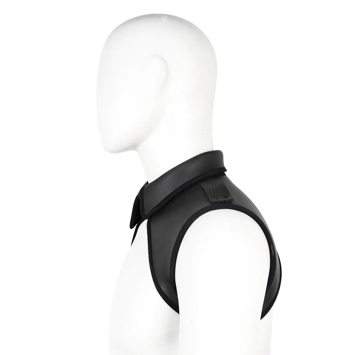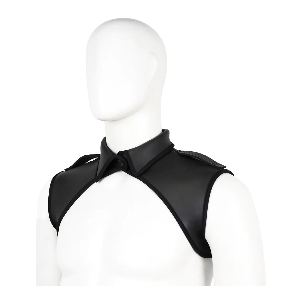 Made out of PVC vegan leather, this harness has smooth straps that cross over the chest to accentuate your chest. Joined by a metal ring on the front as well as the back, the 4 straps are embellished with two rows of studs and four adjustable buckles on the back. Strap this harness on for an edgy, head-turning look.