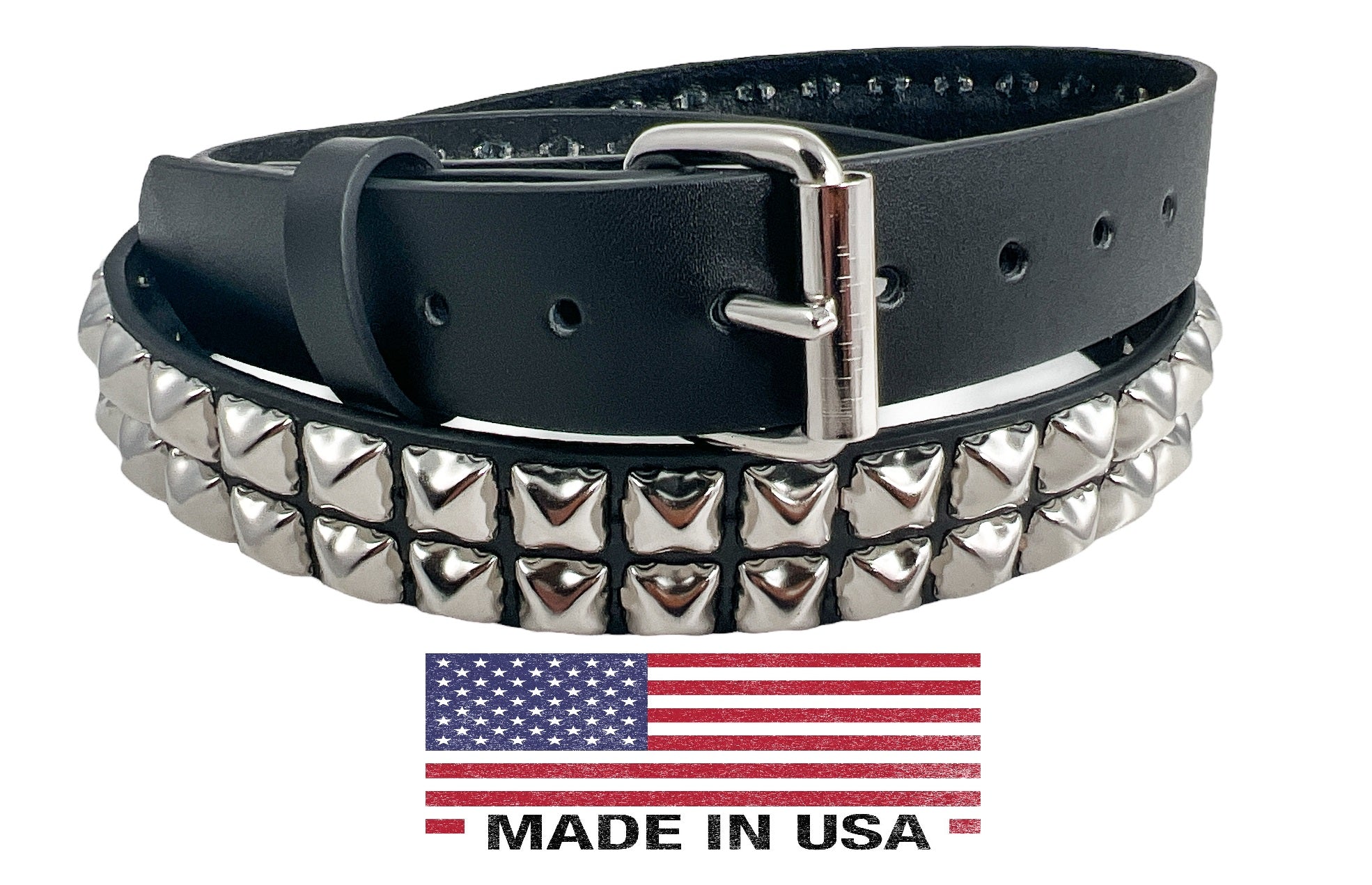 2 Row Silver Pyramid Studded Punk Influenced Belt By Funk Plus GRADE A Leather