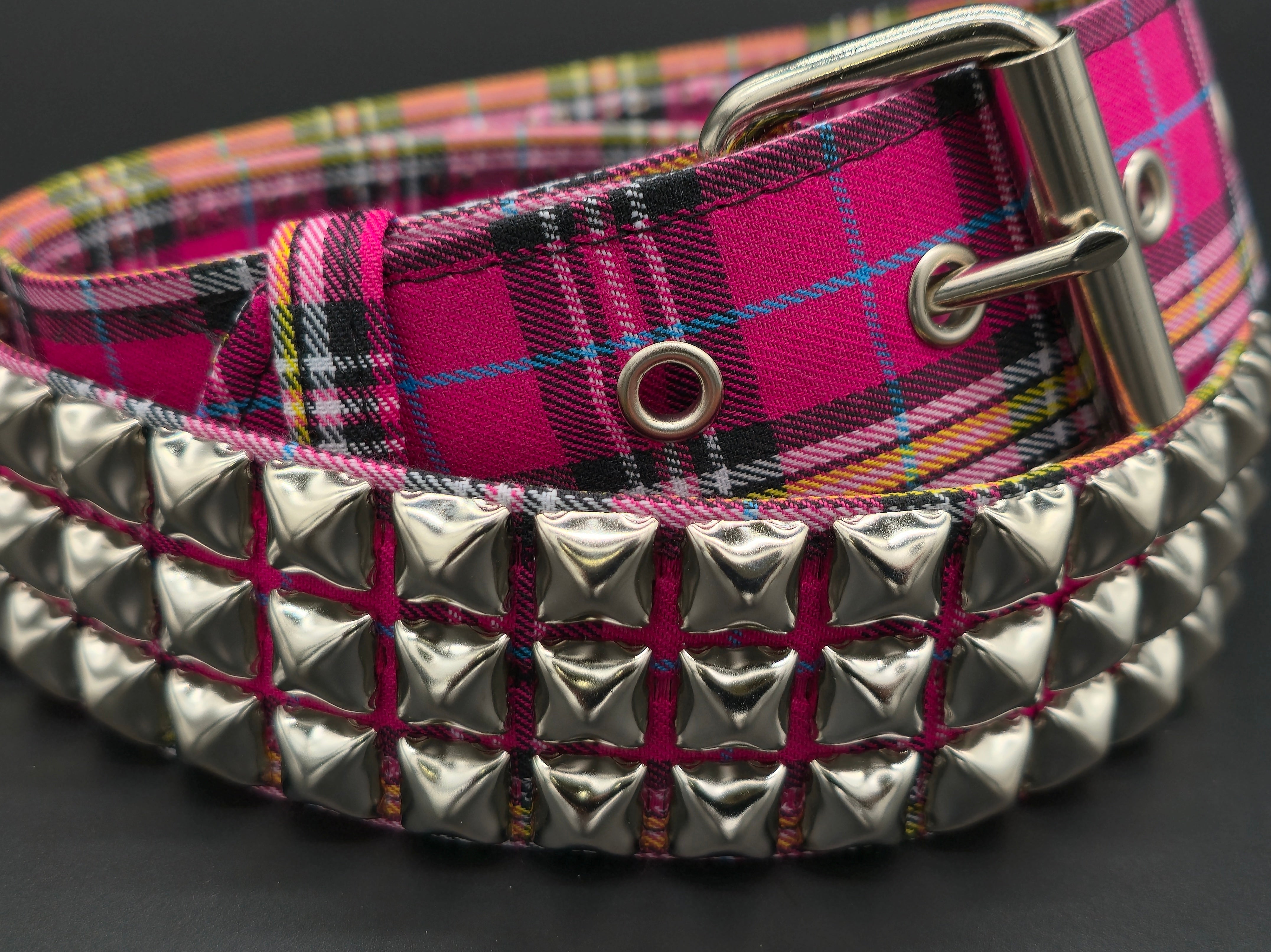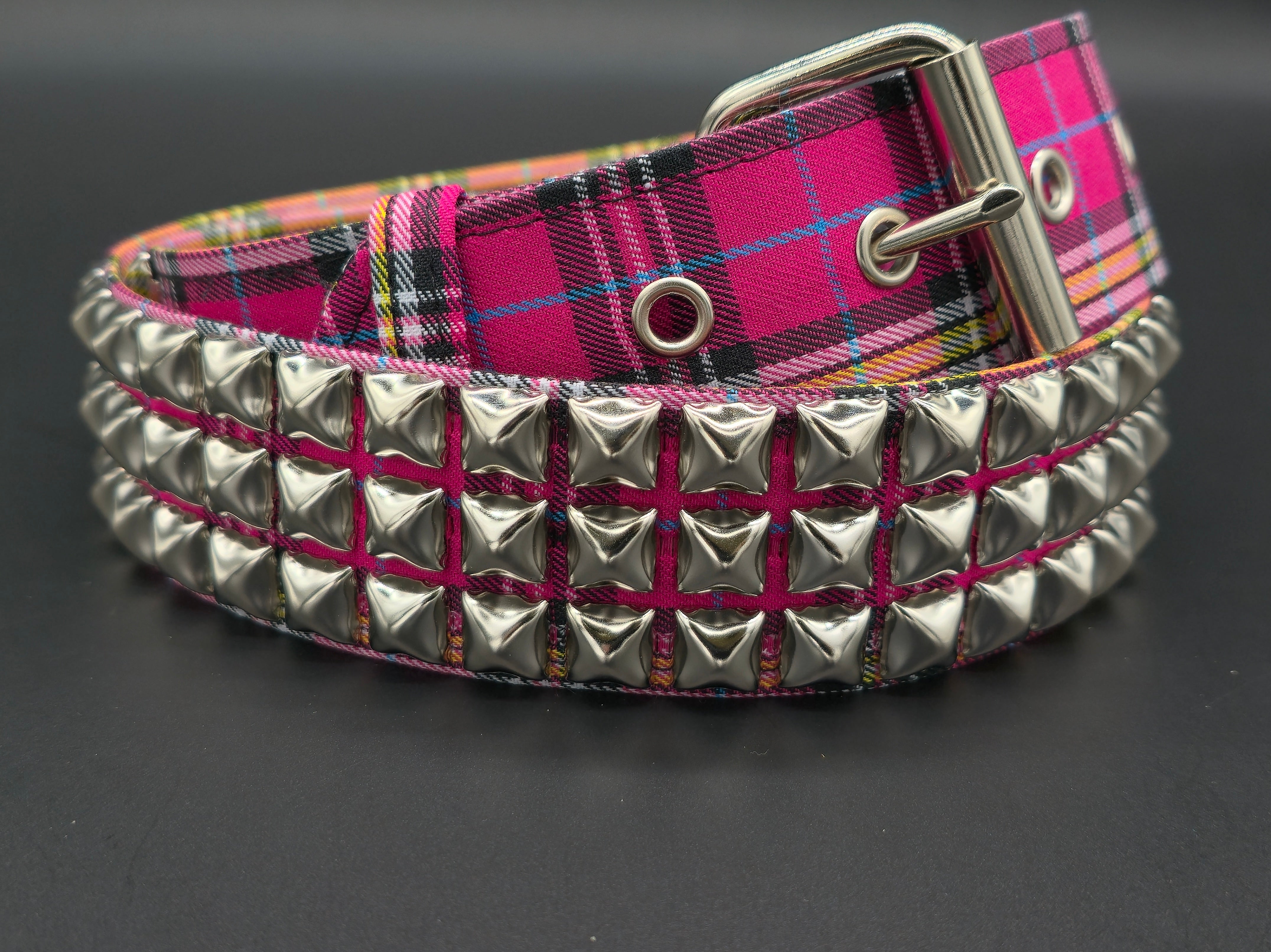 3 ROW 1/2" SILVER PYRAMID STUDS BELT, 1 3/4" WIDE