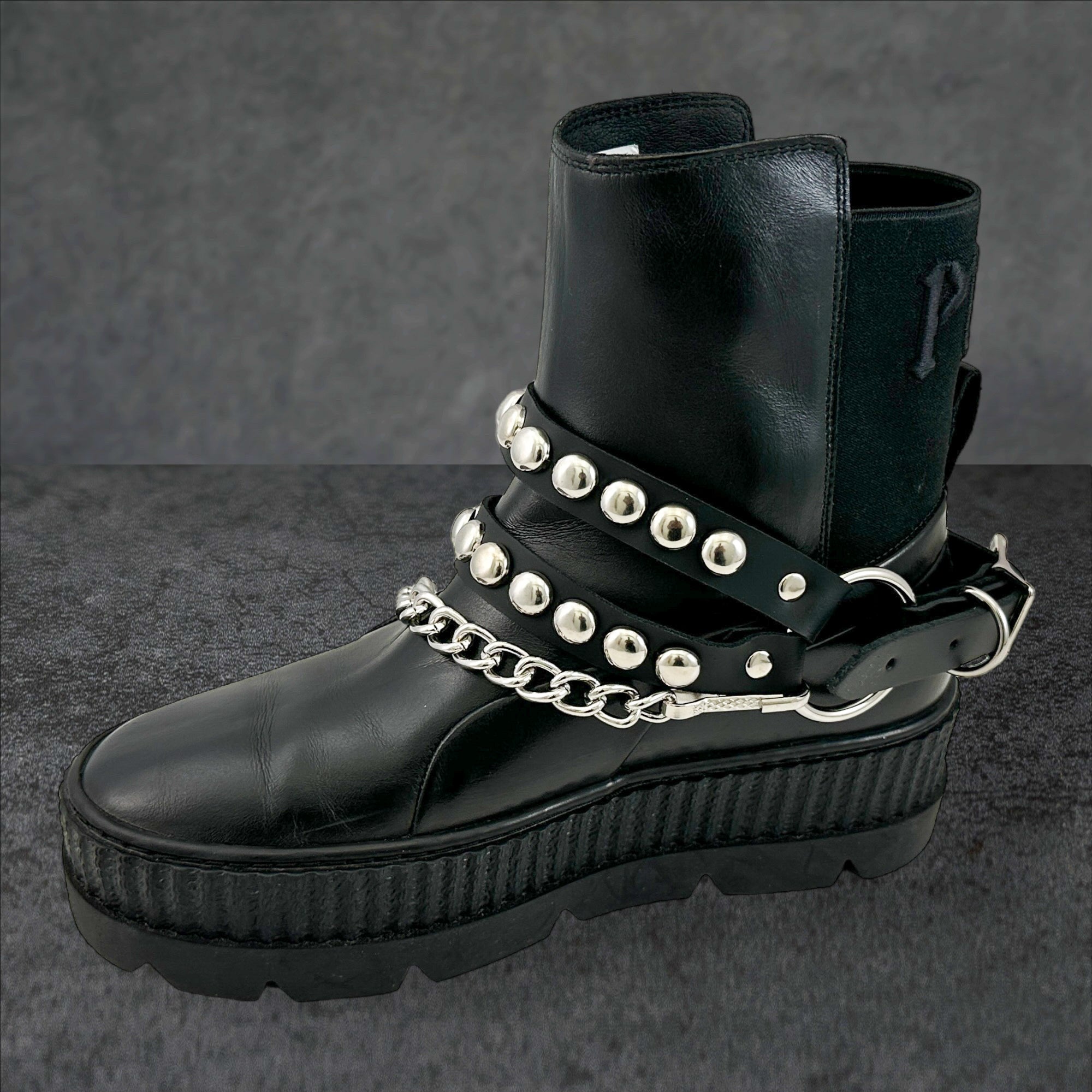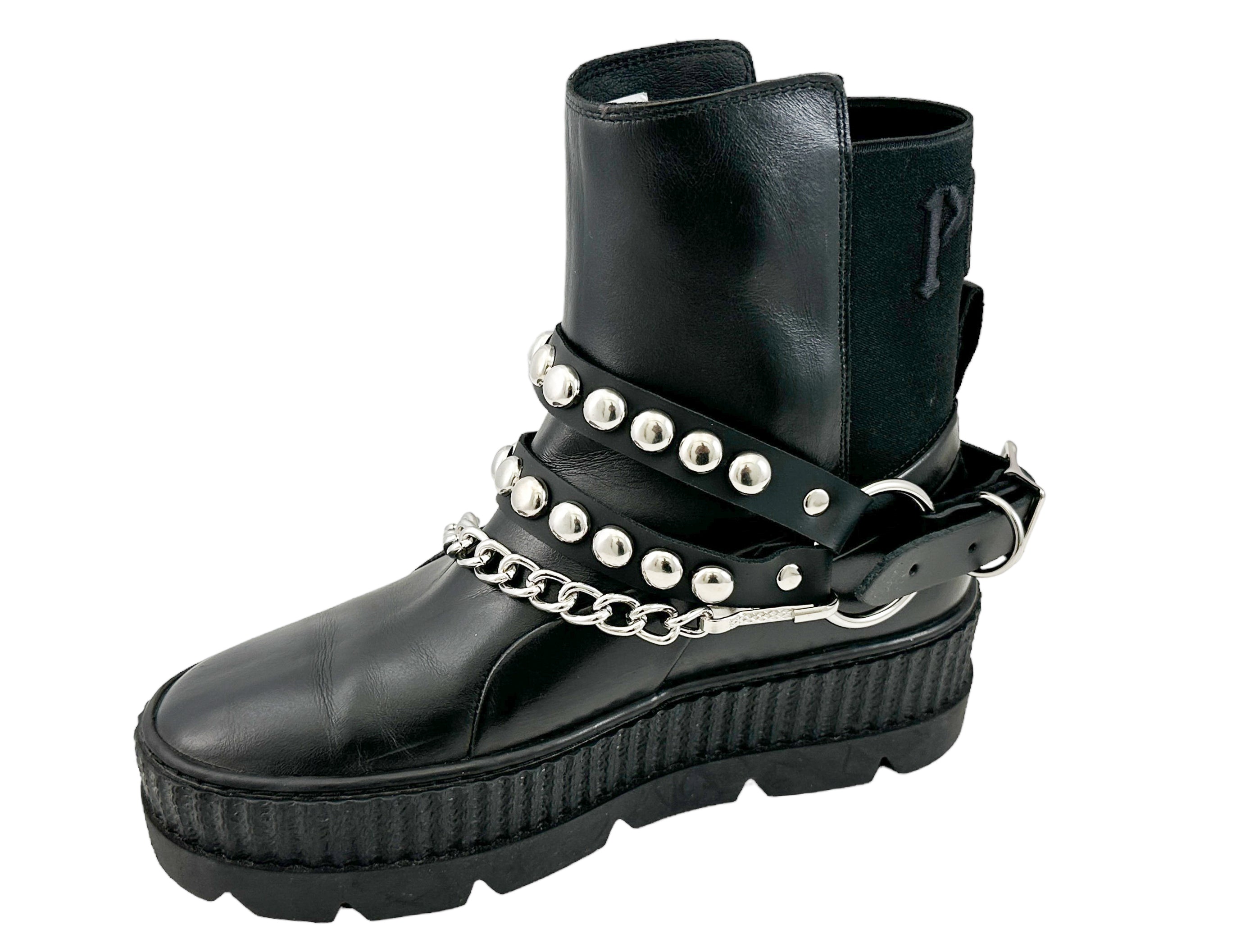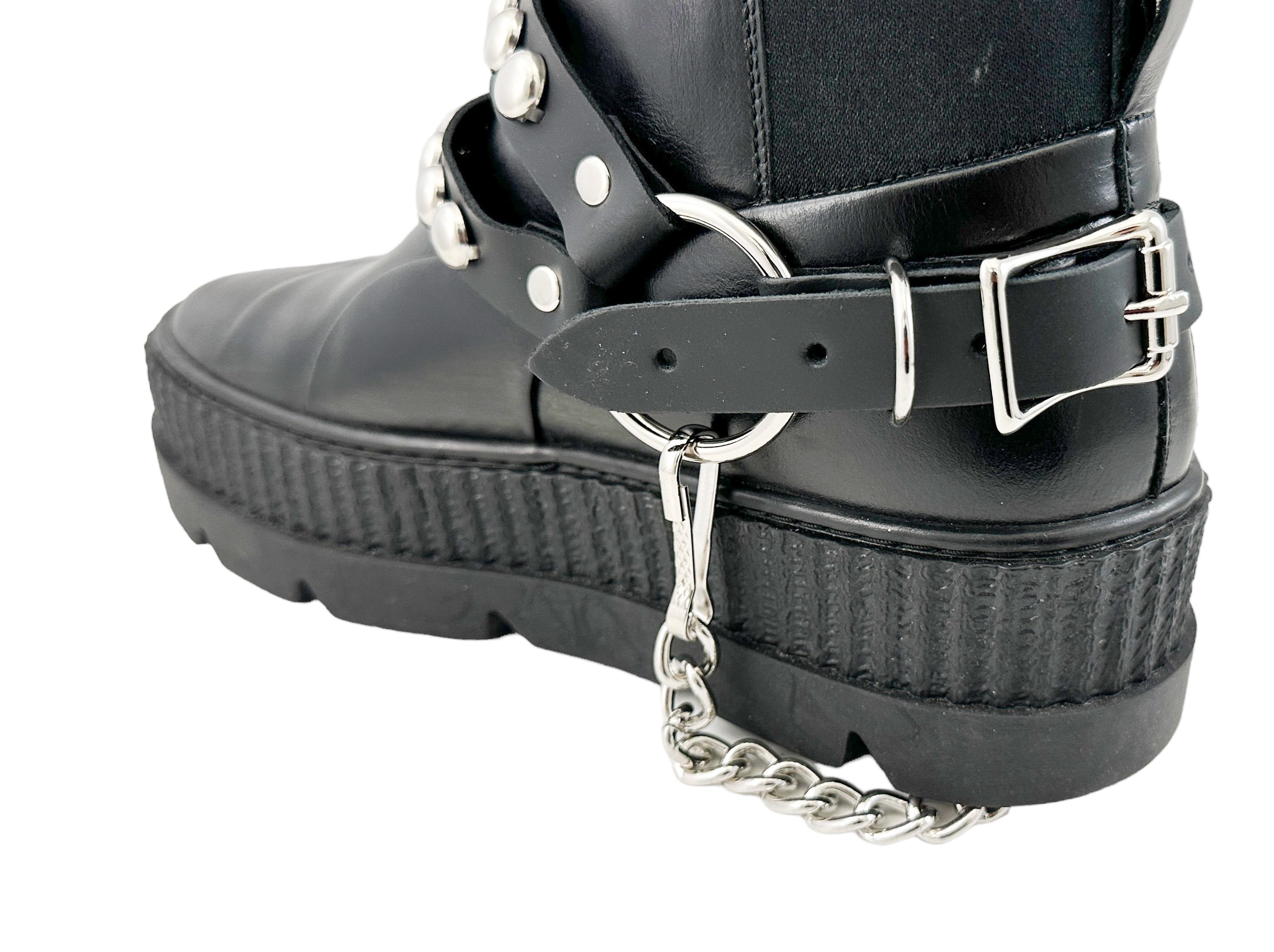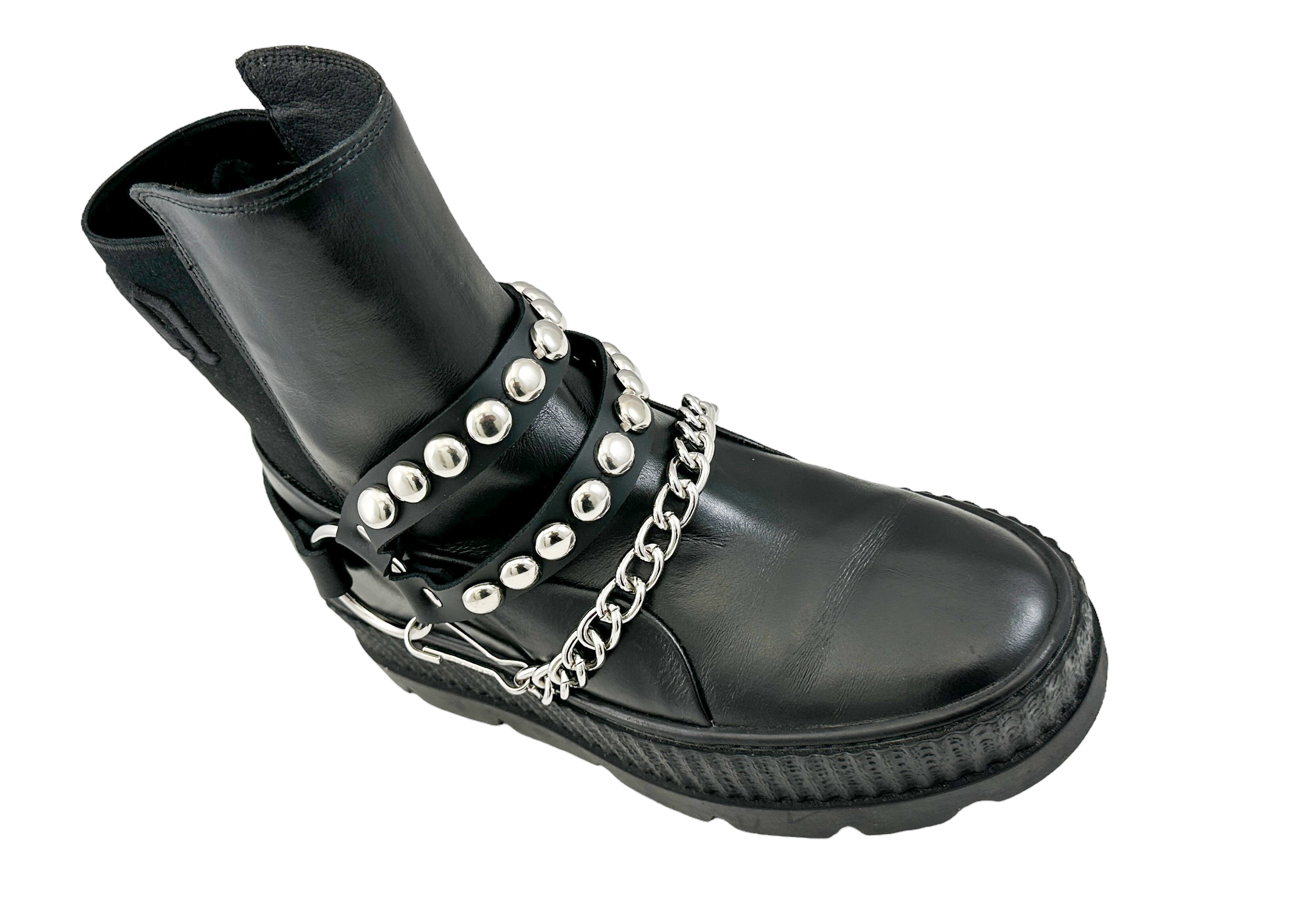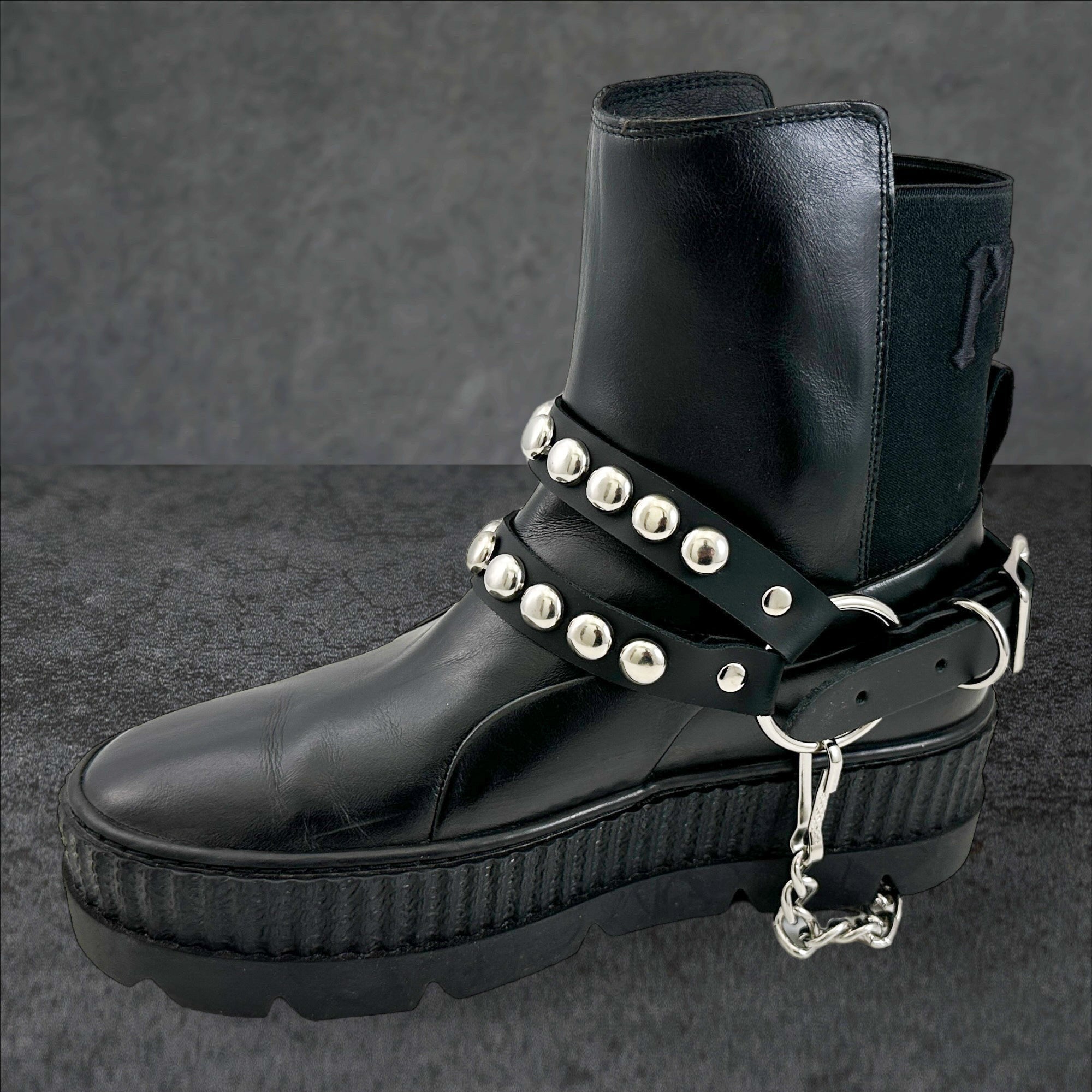 ROUND STUDDED DOUBLE STRAP BOOTSTRAP LEATHER