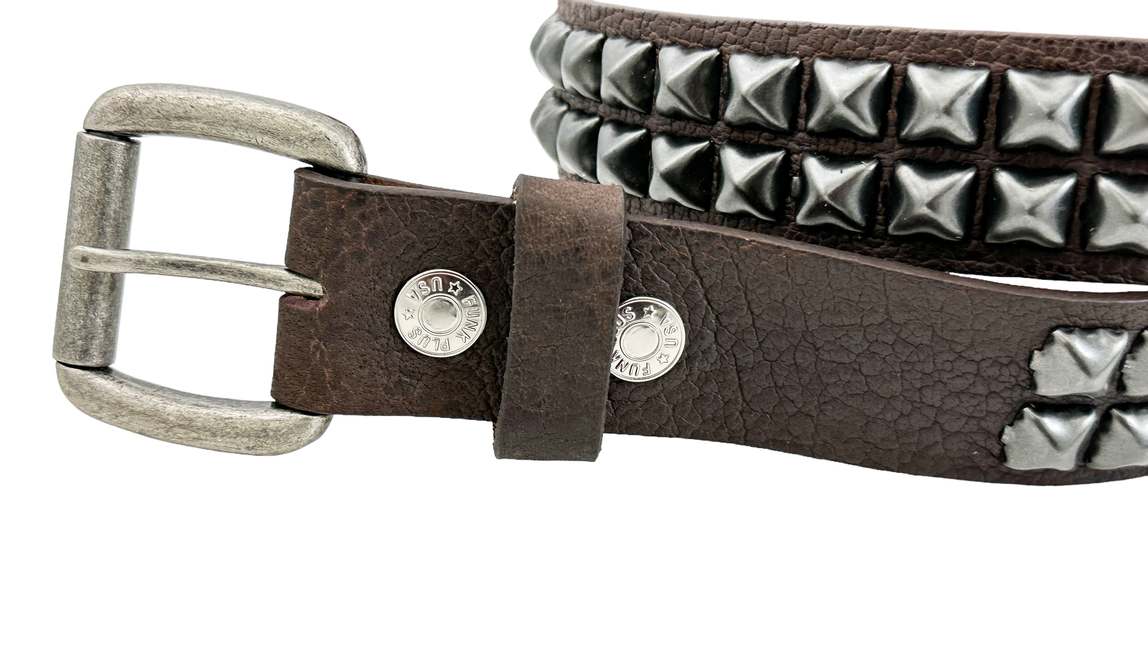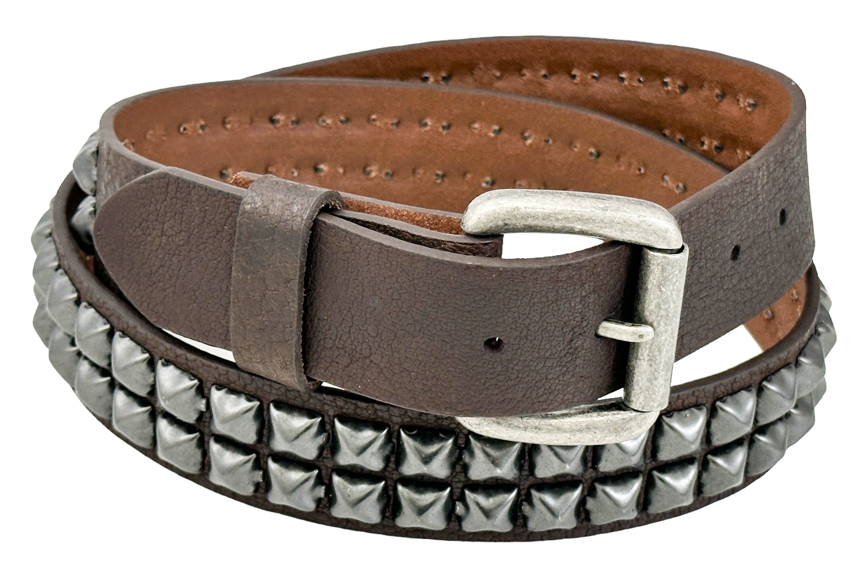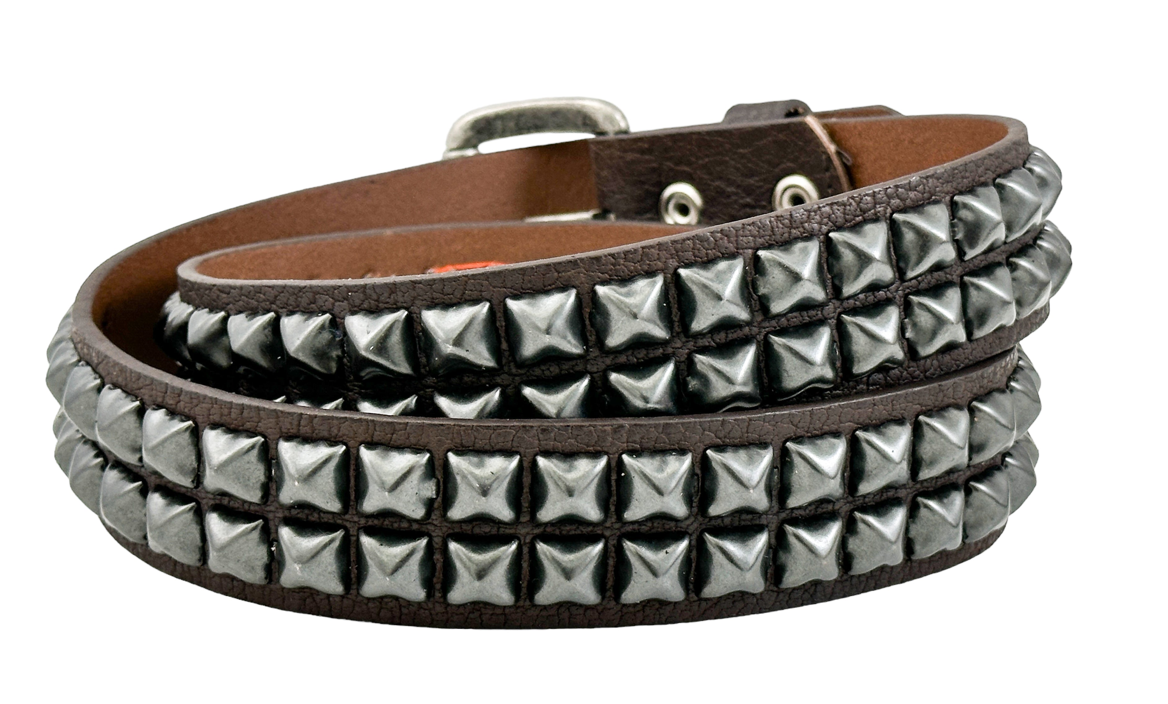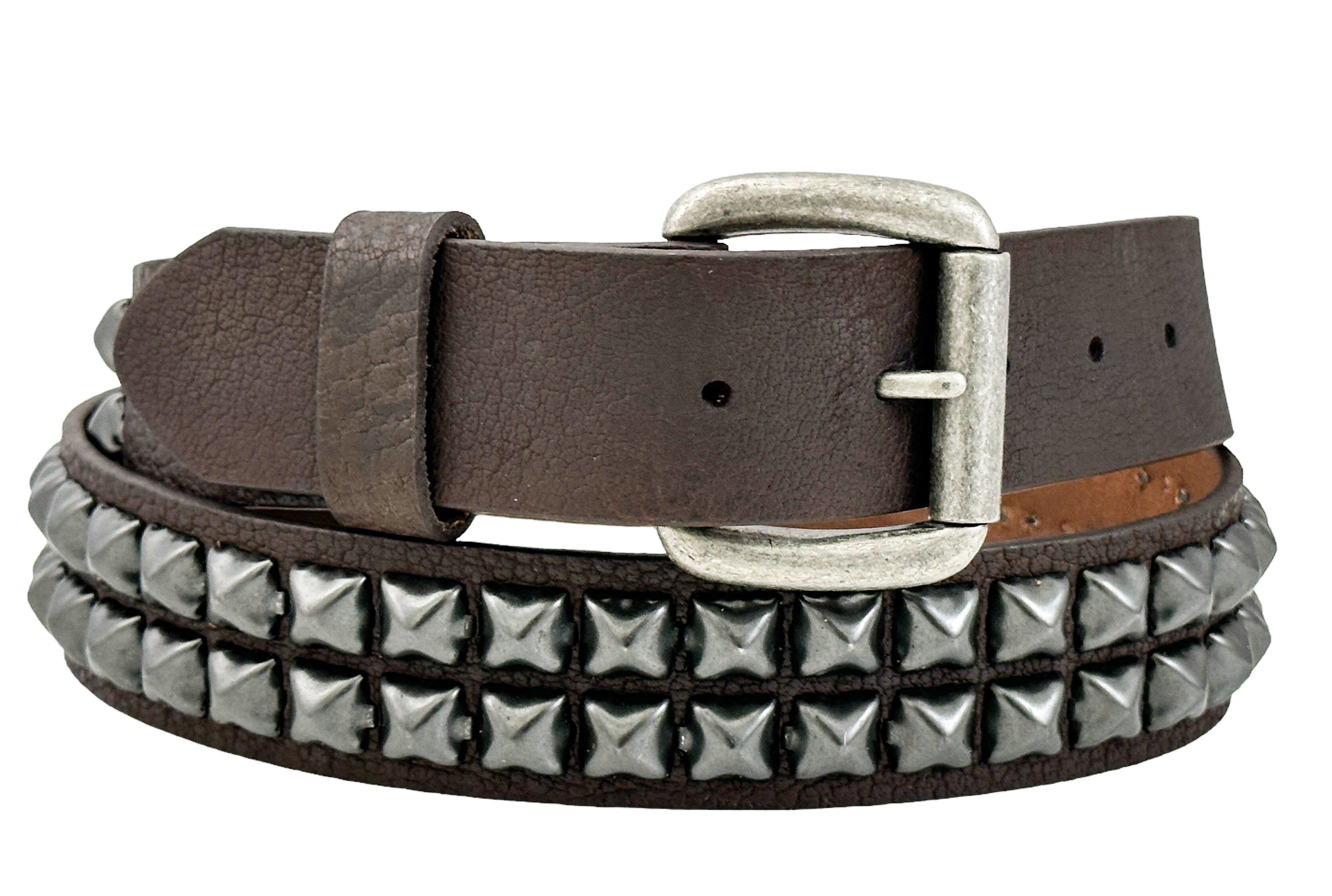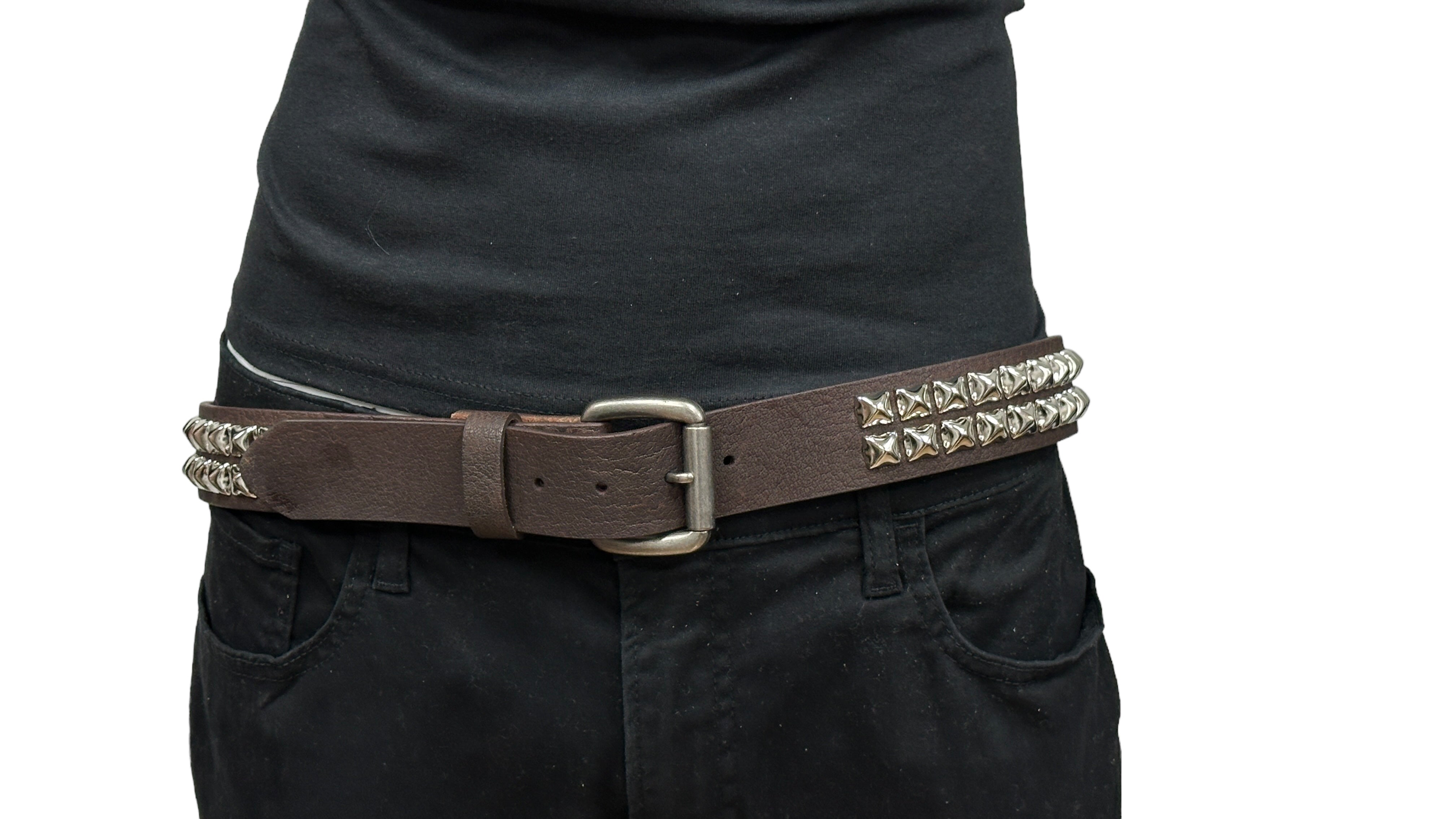 BROWN LEATHER TWO ROW STUDDED GENUINE LEATHER BELT