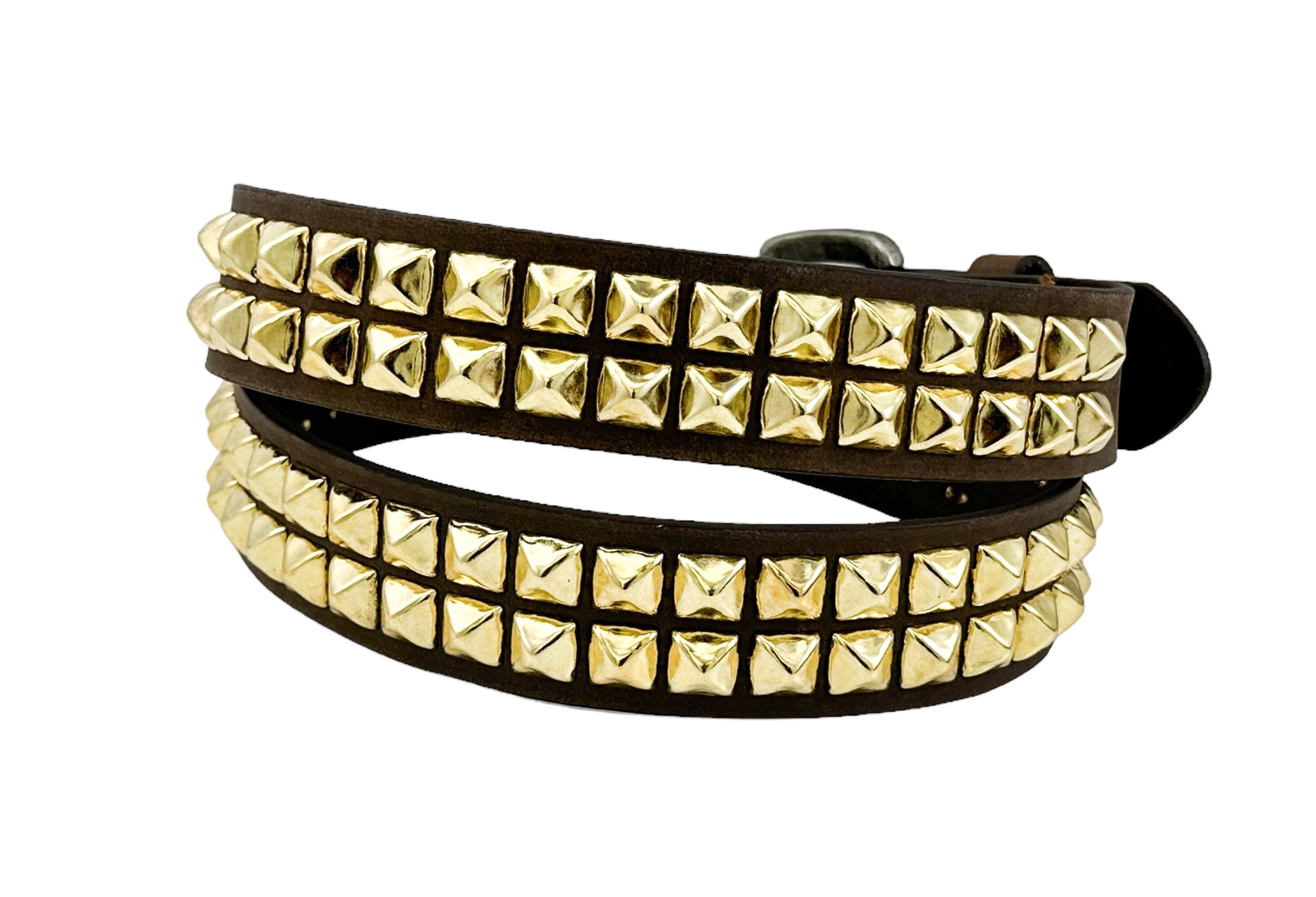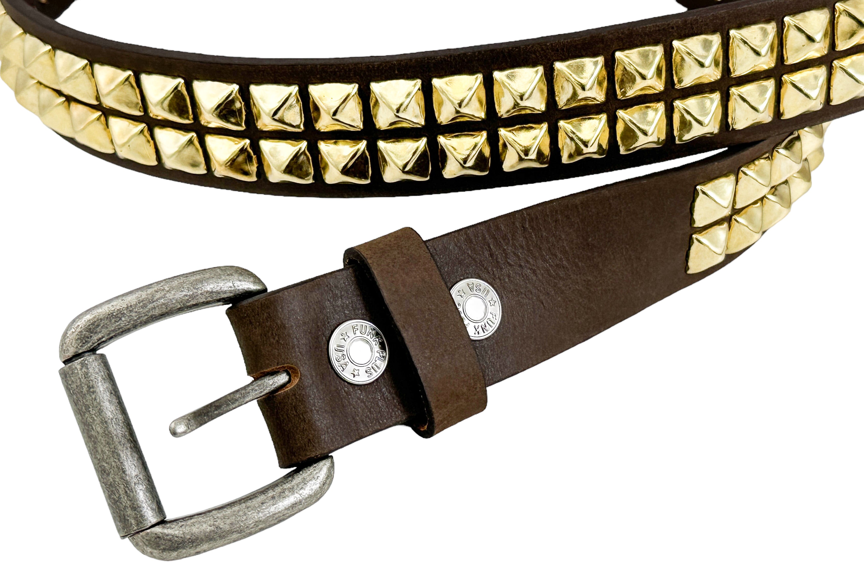 TWO ROW GOLD STUDDED GENUINE LEATHER BROWN BELT