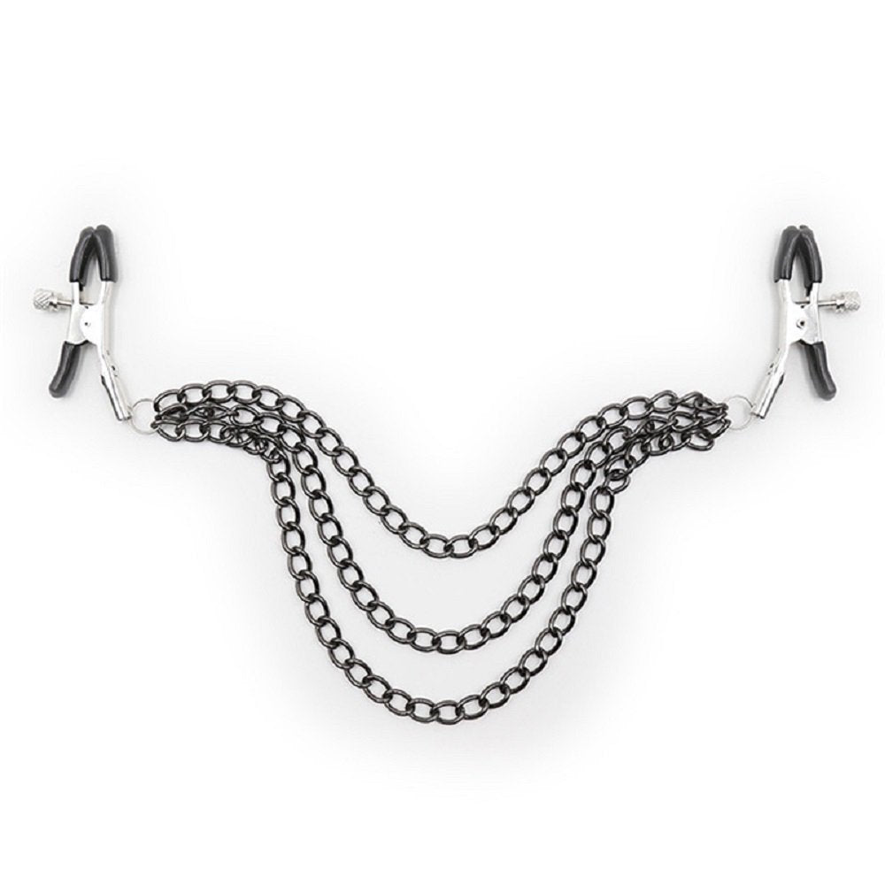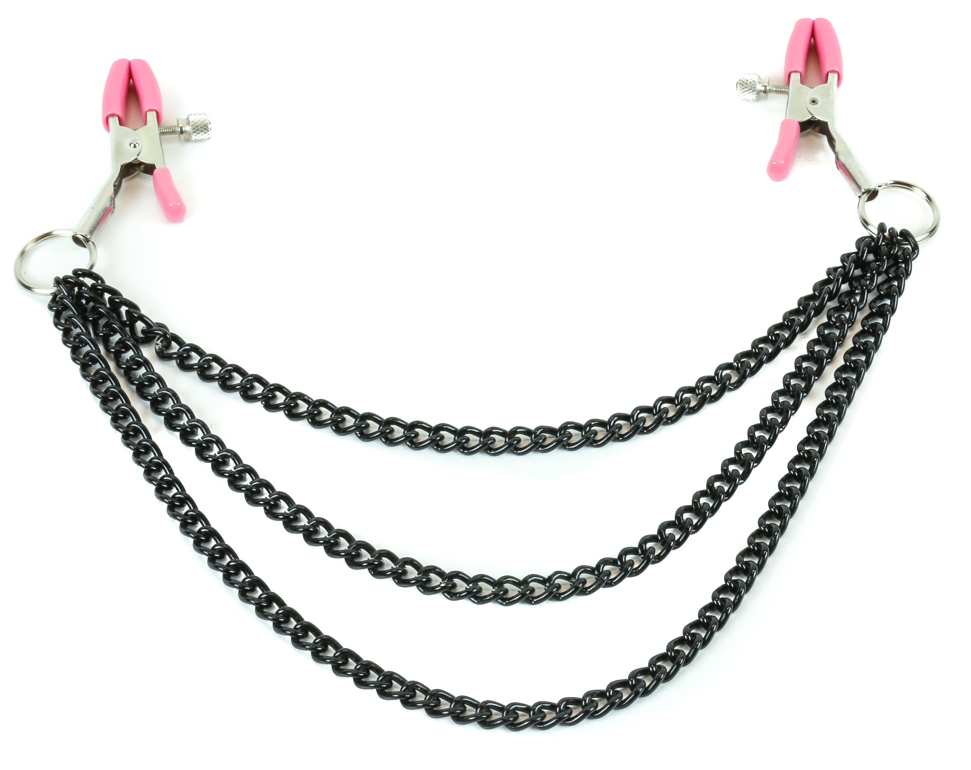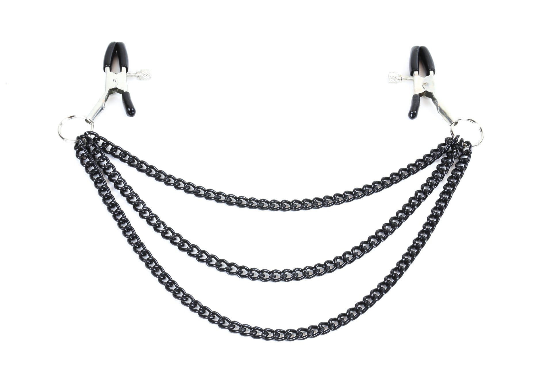 NIPPLE CLAMP PLAIN WITH 3 ROWS BLACK CHAIN