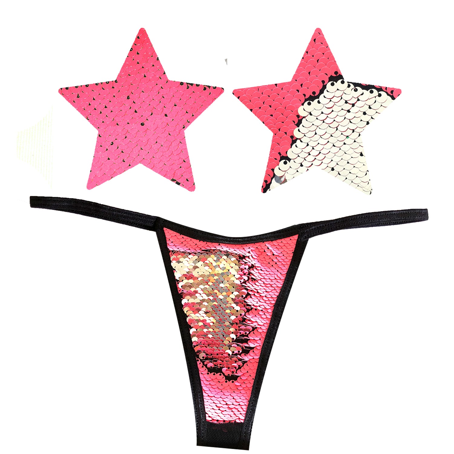 G-String Bitchin' Barbie Neon Pink Blacklight FLip Sequin Naughty Knix with matching Pasties