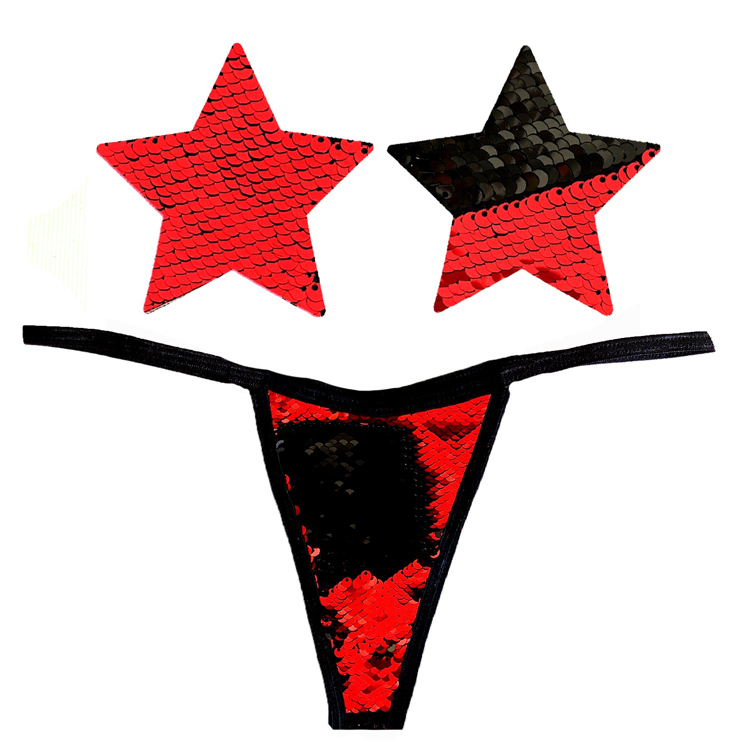 Sookie Red Black Sequin G String Naughty Knix with Pasties Set