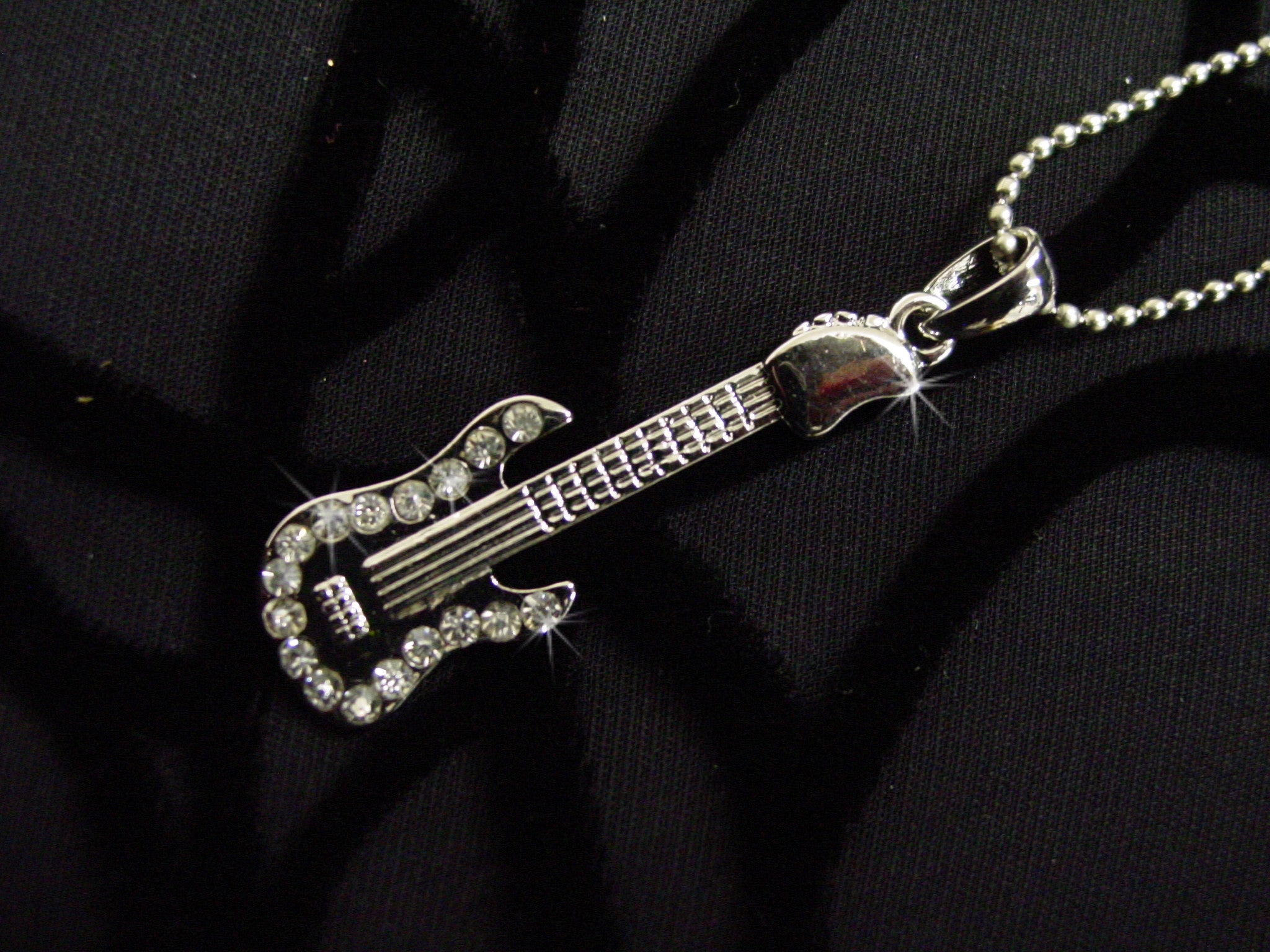 Necklace With Rhinestone Studded Guitar