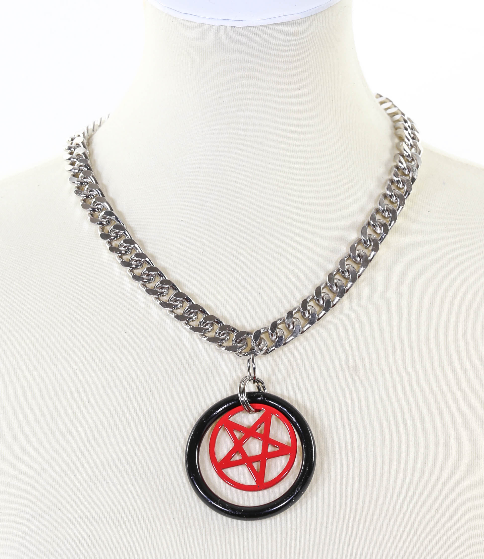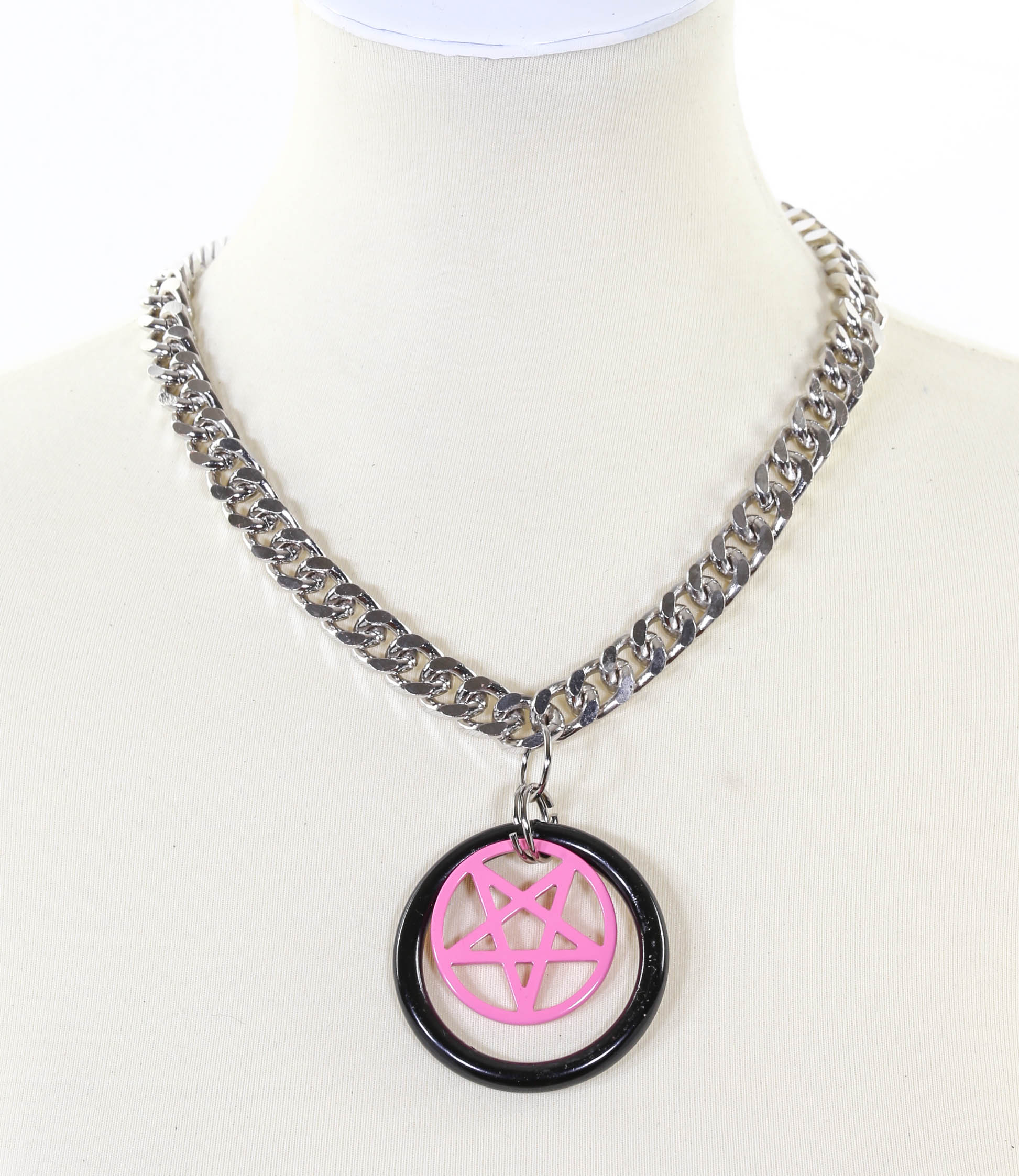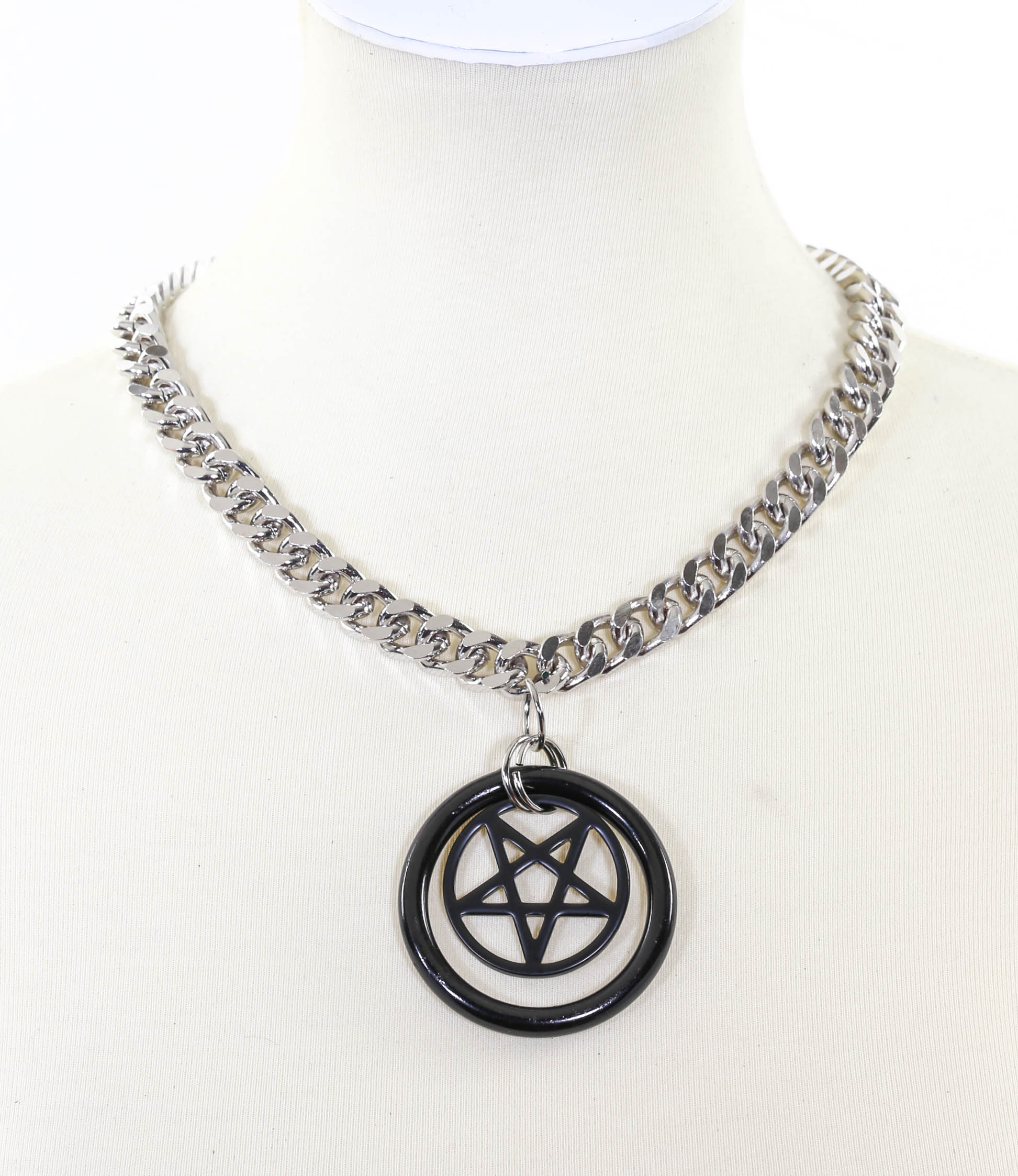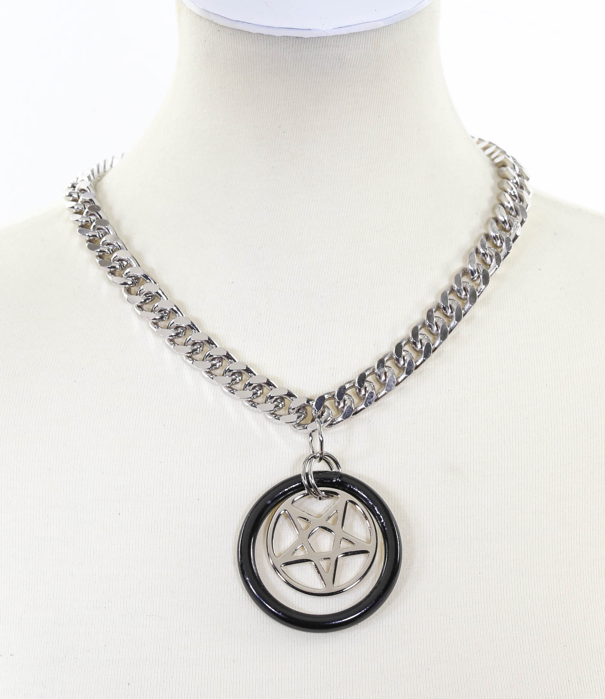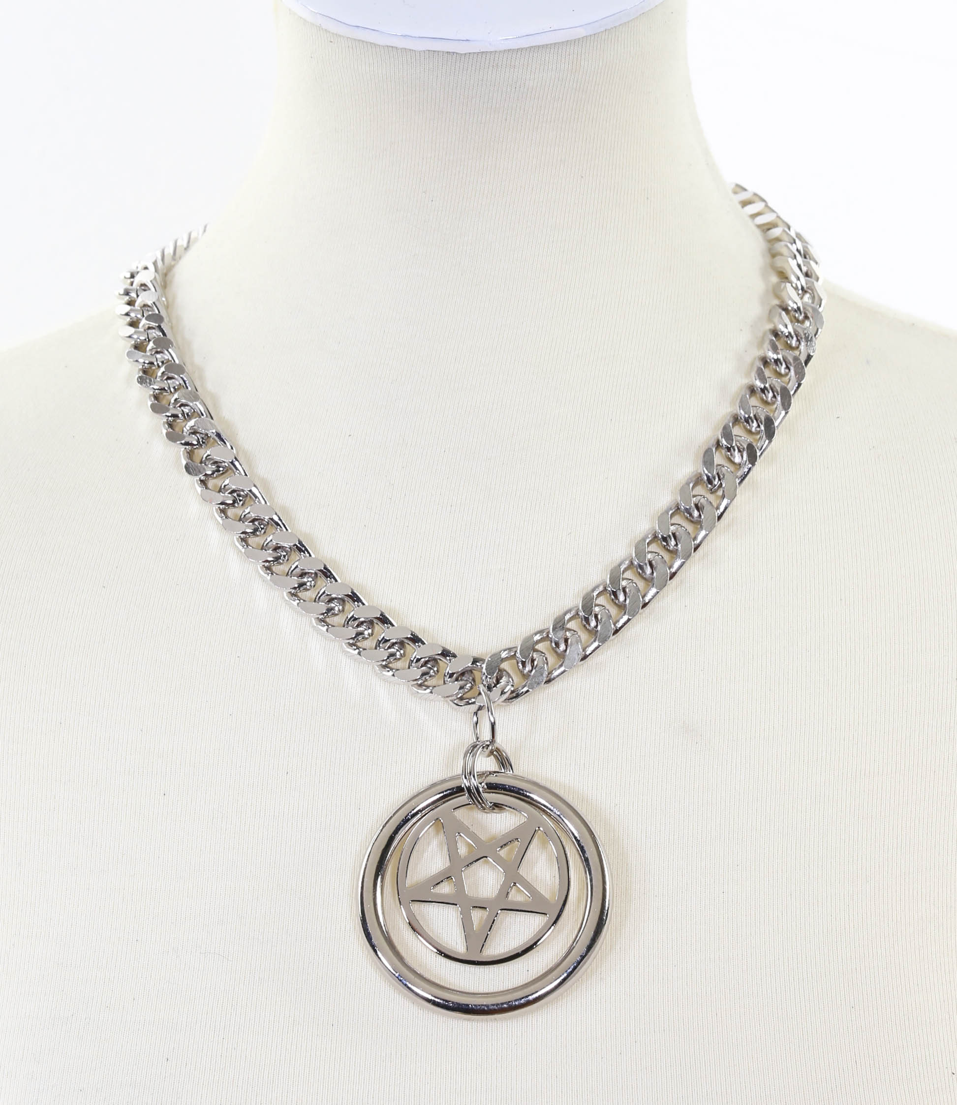 PENTAGRAM IN RING PENDANT DIAMOND CUT CHAIN