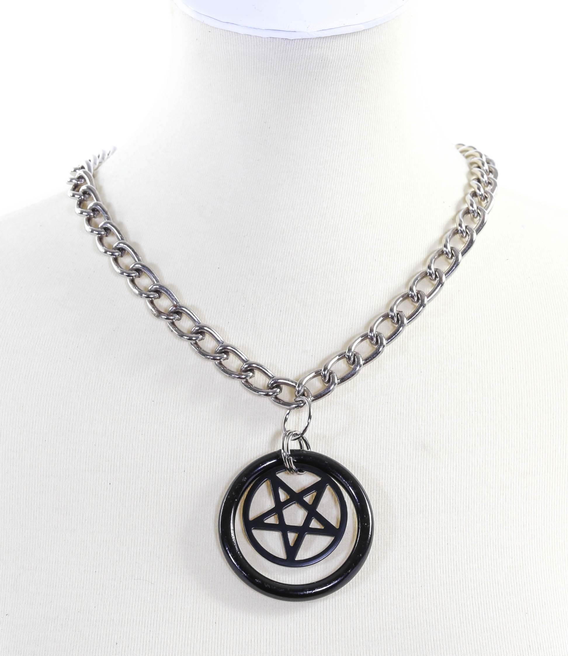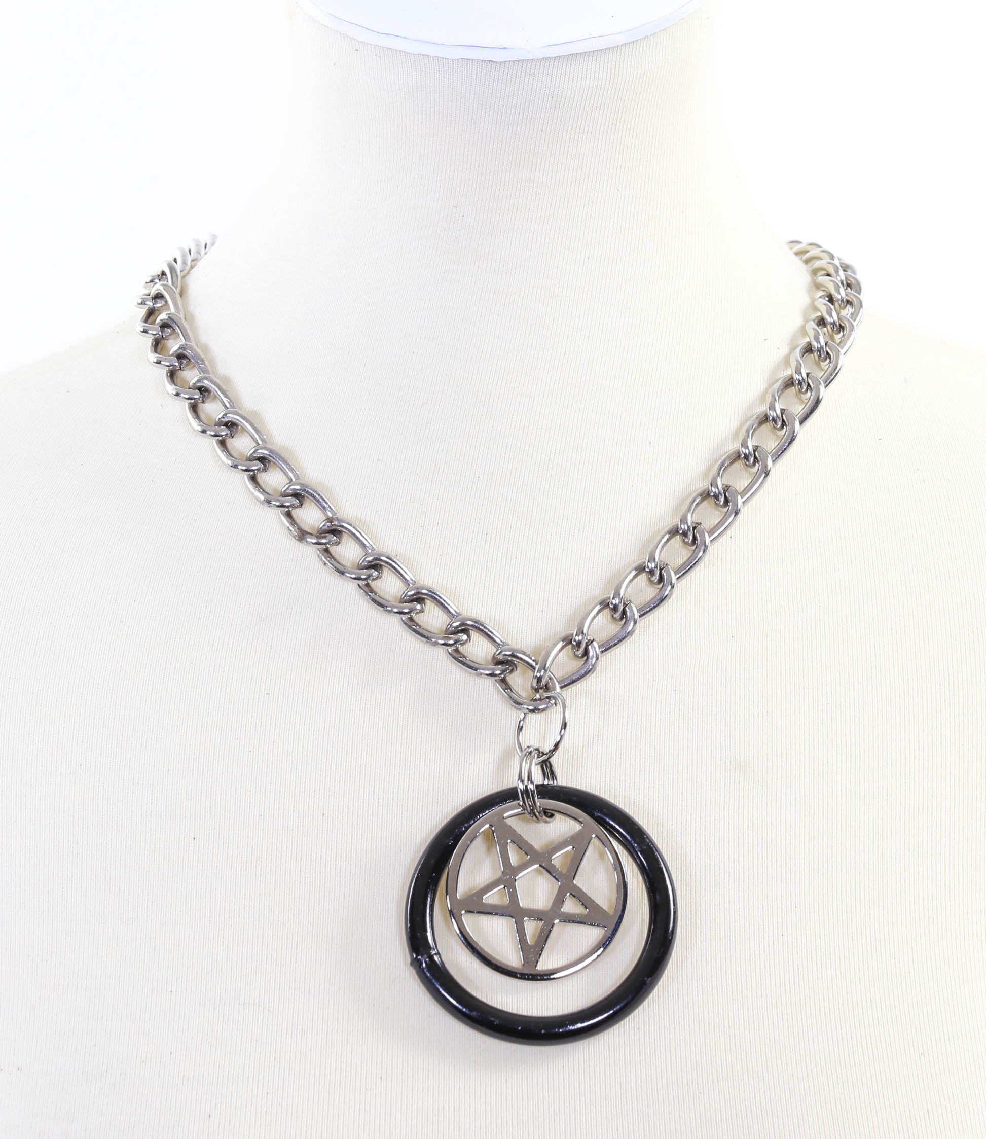 PENTAGRAM IN RING PENDANT REGULAR CUT CHAIN
