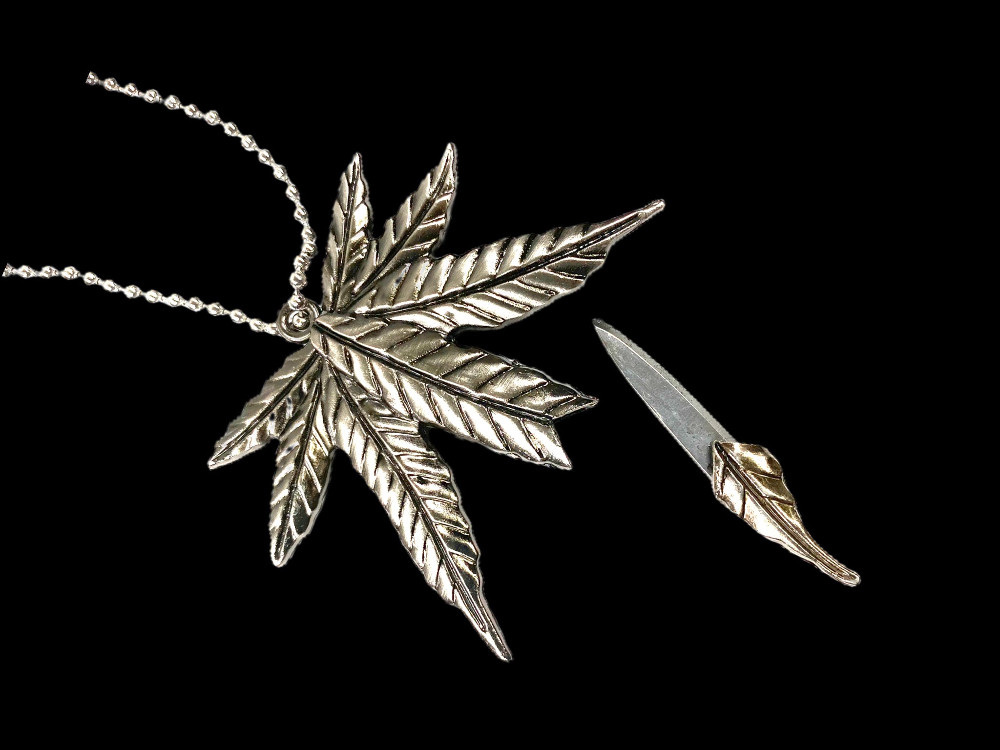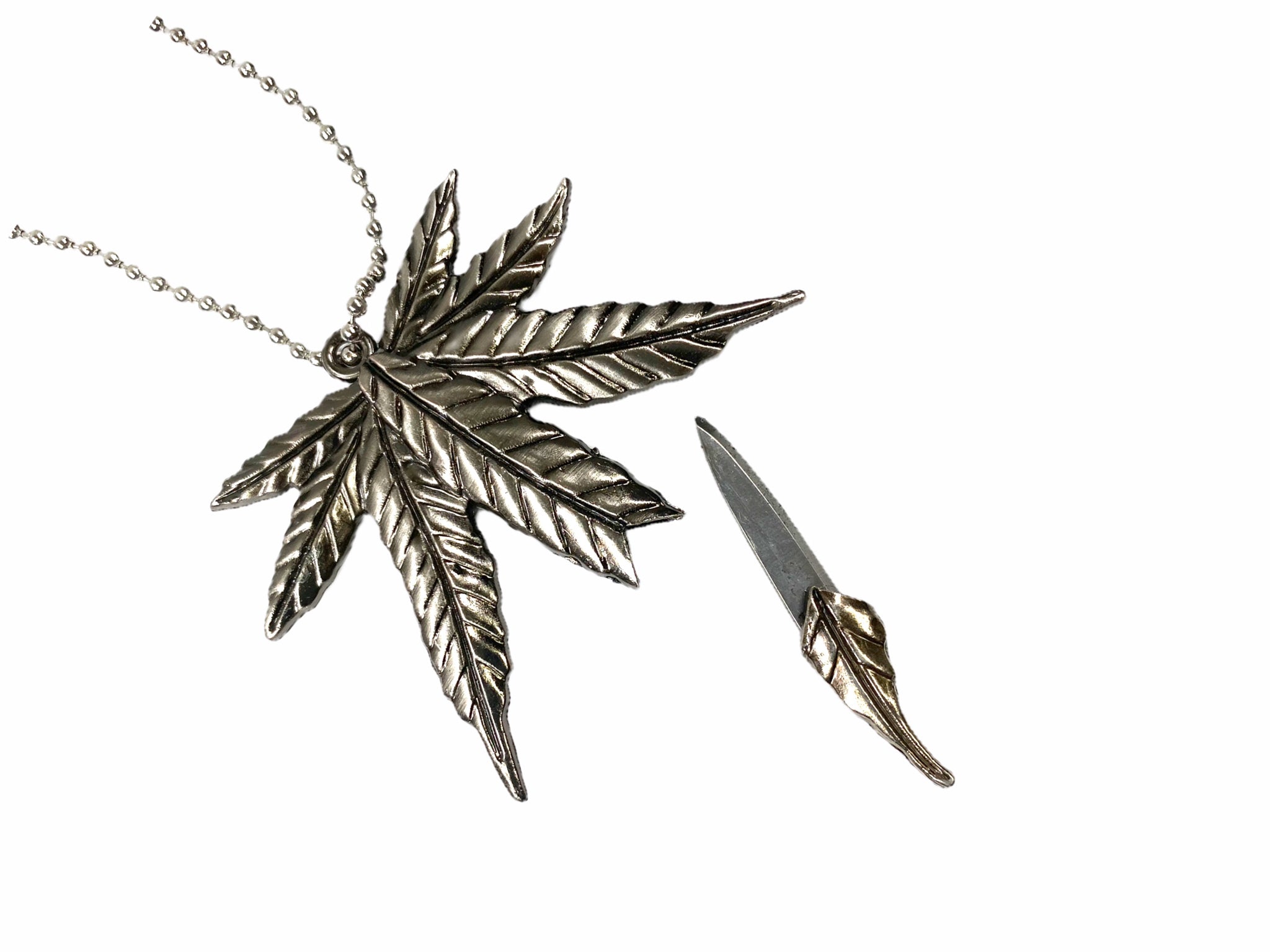 Marijuana Leaf Weed Ganja Pendant Knife Out