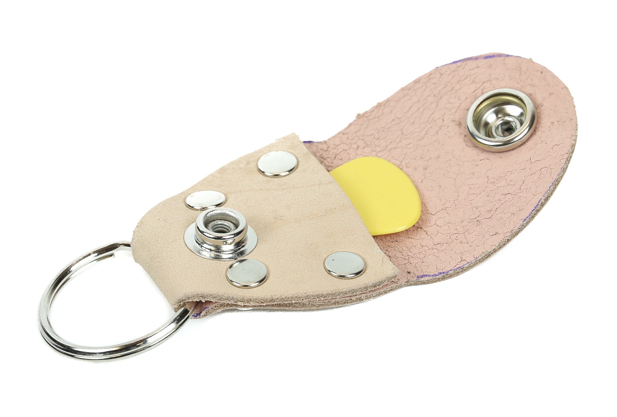 Leather Guitar Pick Key Chain is perfect for keeping track of your guitar picks. It snaps closed to keep picks safe between rehearsals and performances.