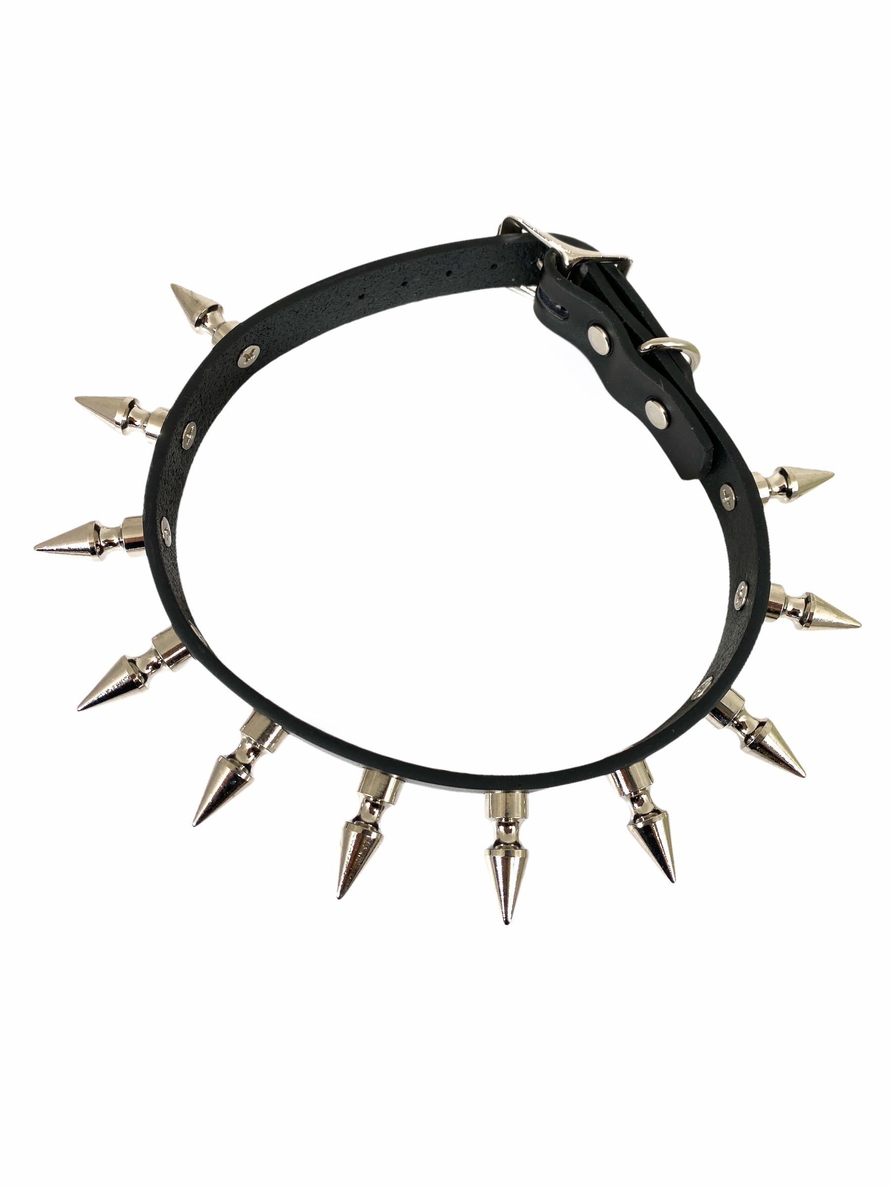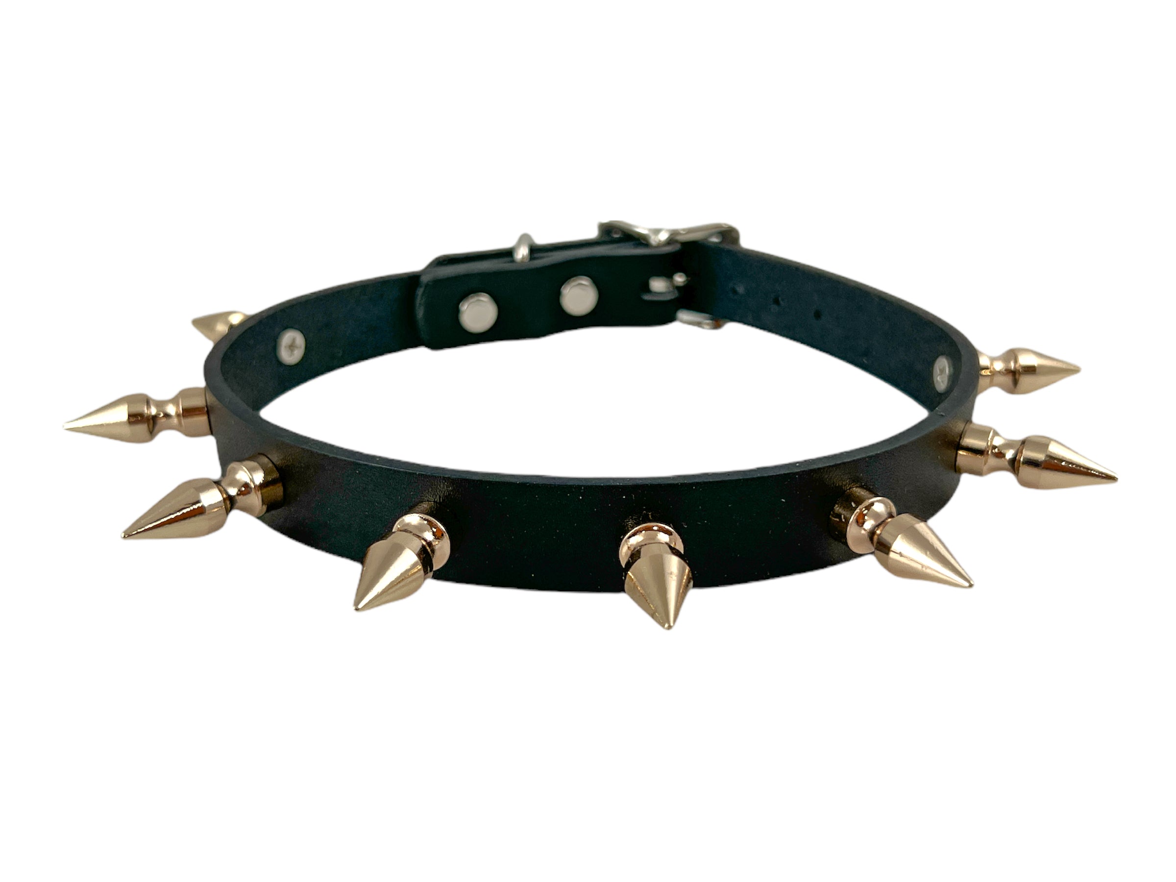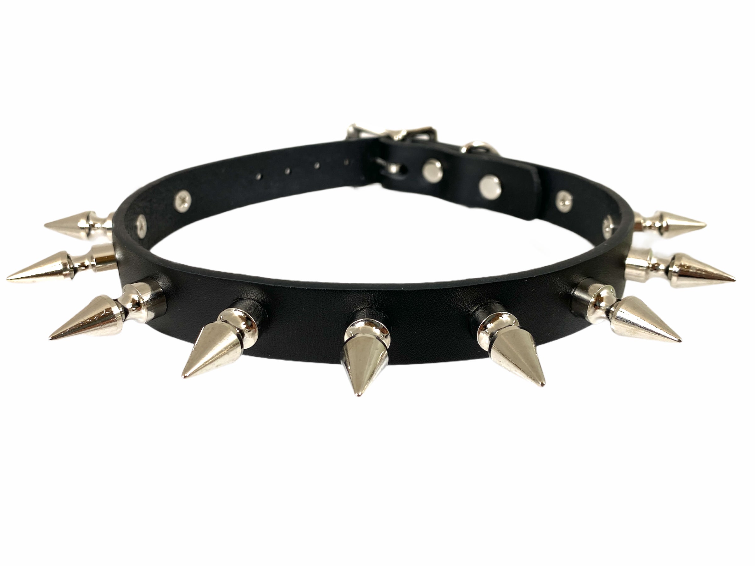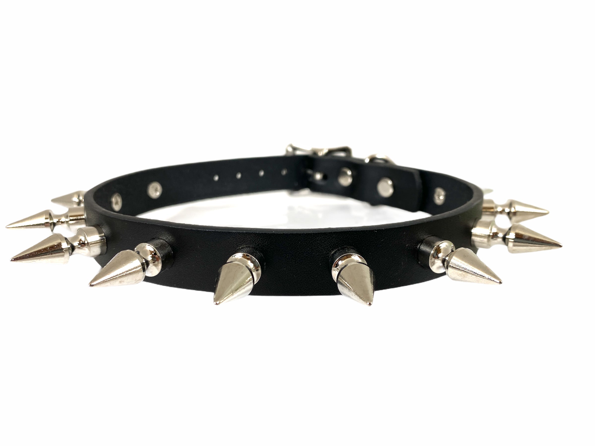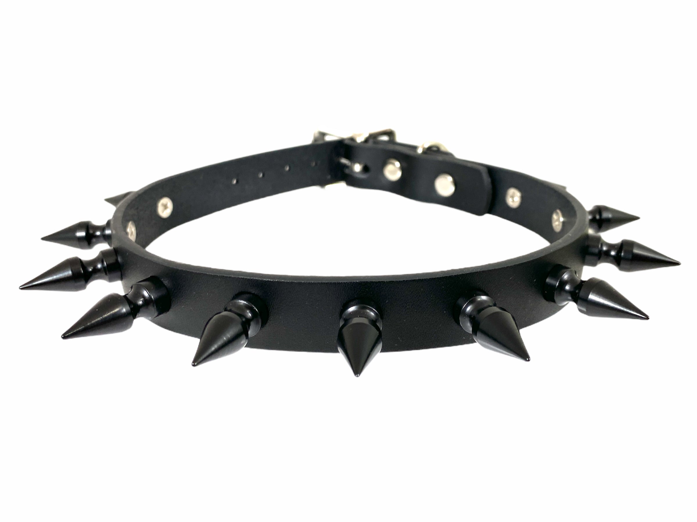 3/4" BLACK LEATHER CHOKER WITH 1" SPIKES