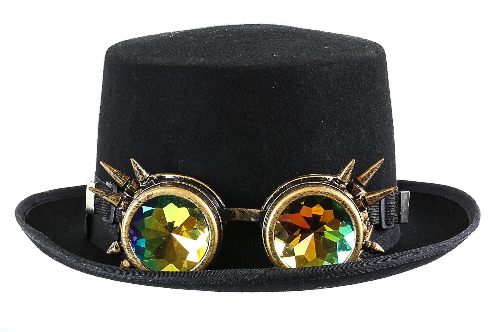 Premium Felt Top Hat With Brass Kaleidoscopic Goggles