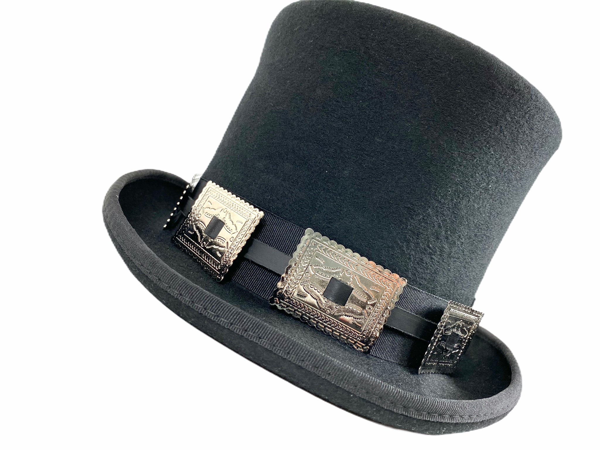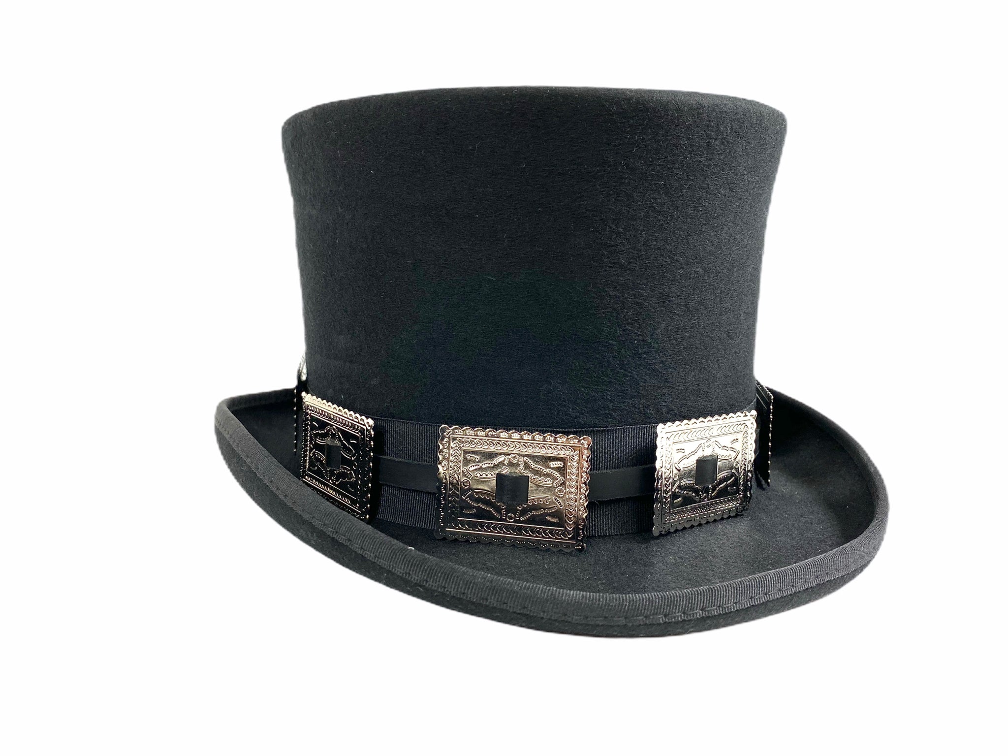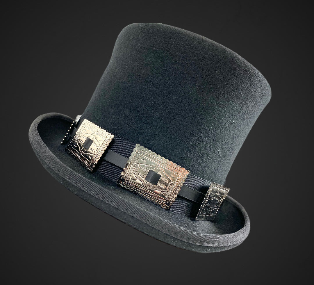 Wool Felt Top Hat Steampunk Topper Victorian Mad Hatter Square Concho Band