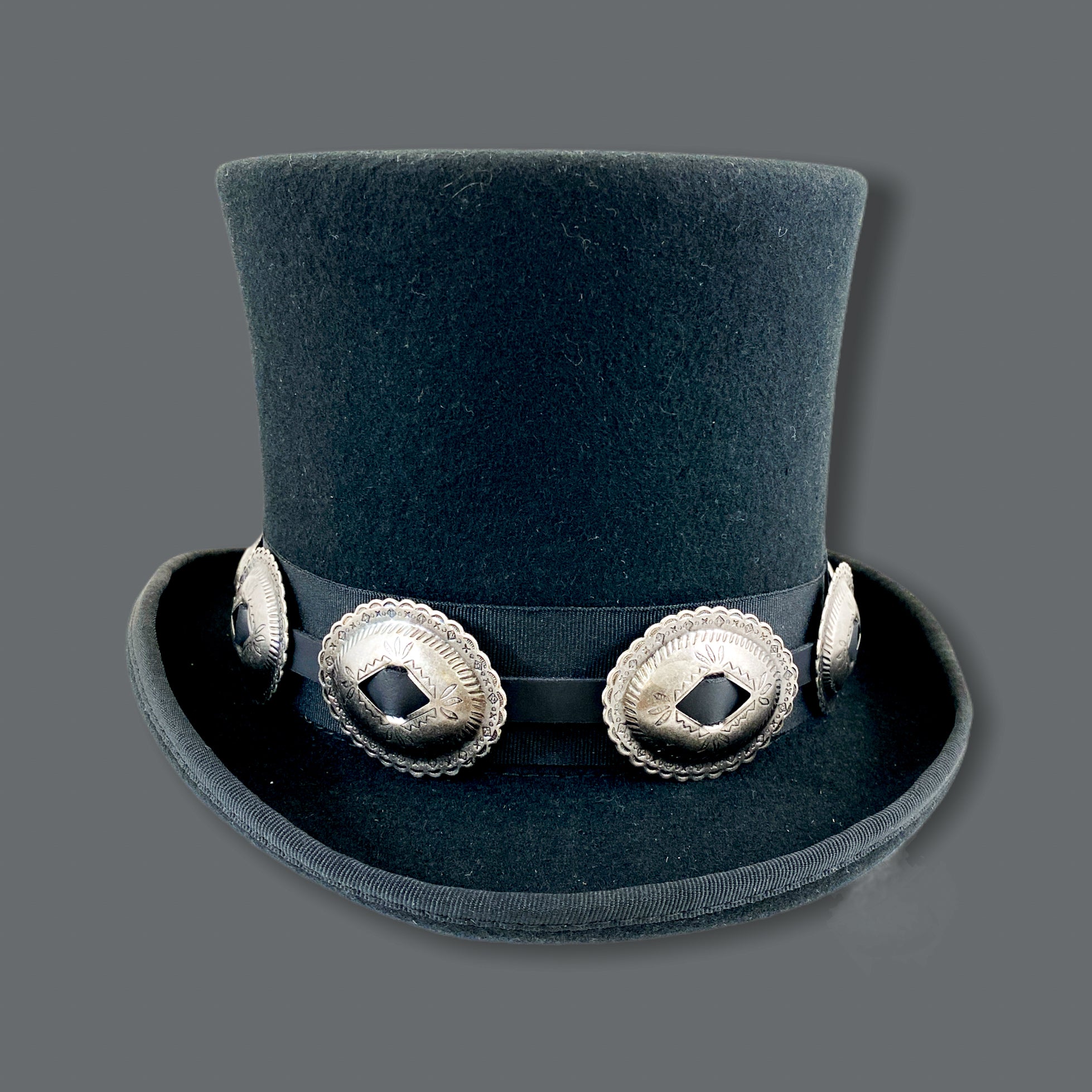 • Premium 100% Wool Felt Top Hat With Leather Hat Band With Steel Concho