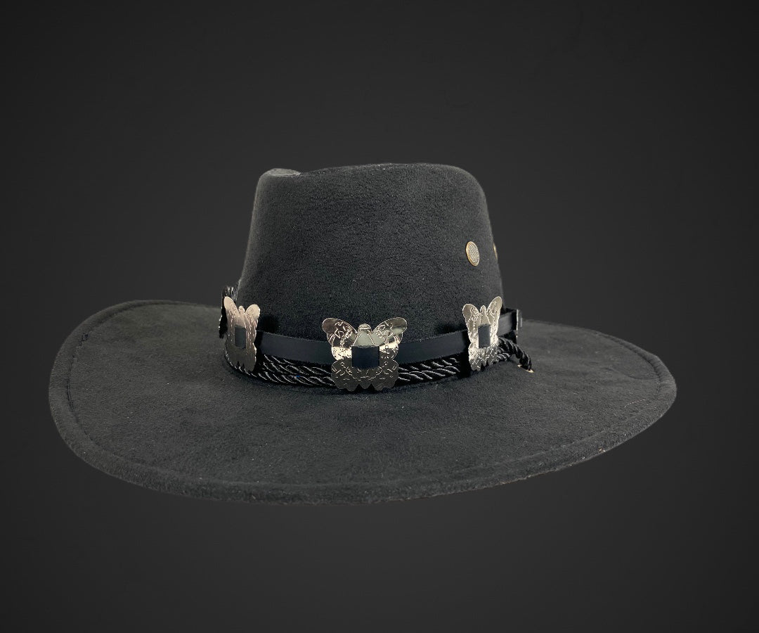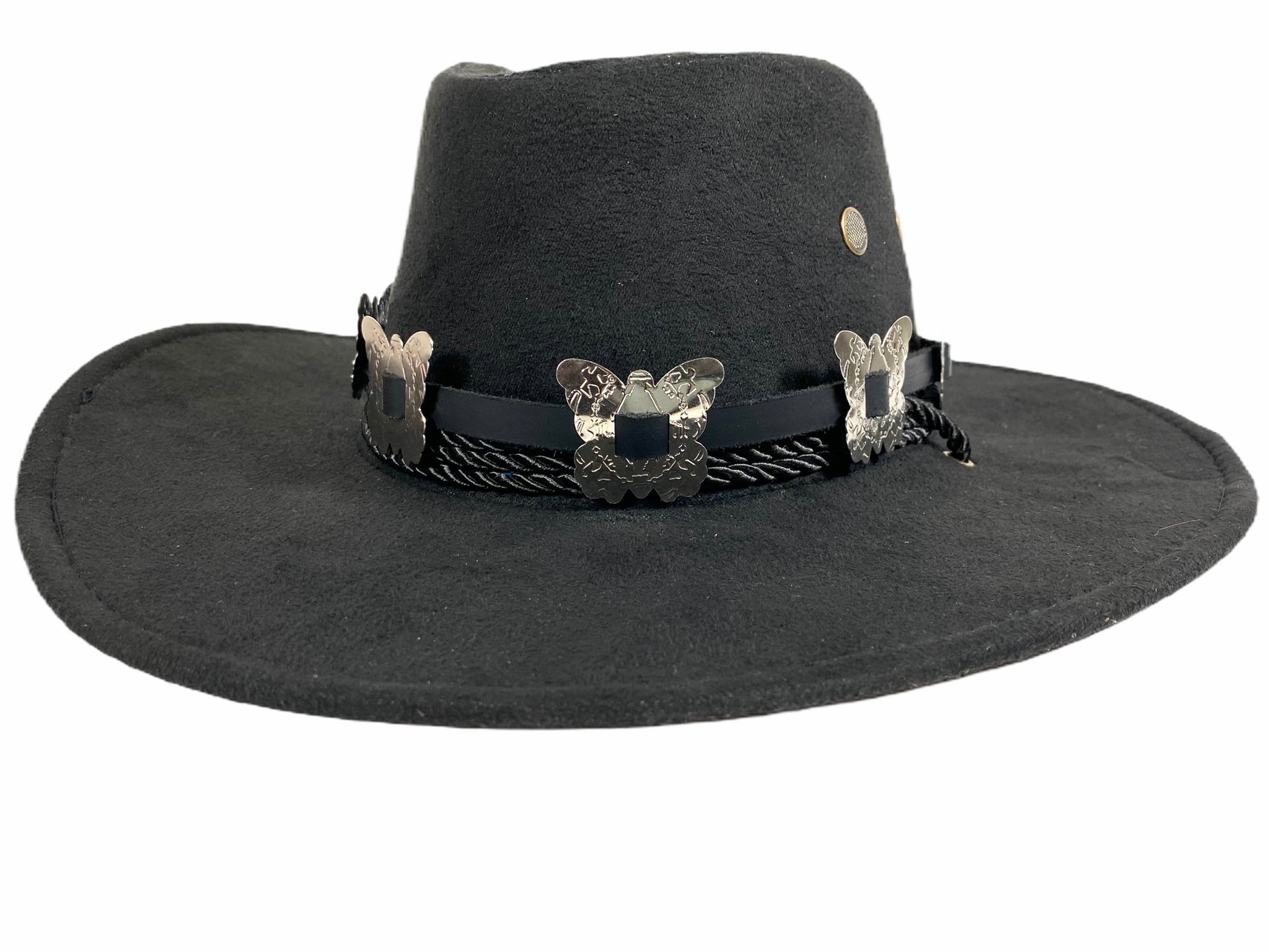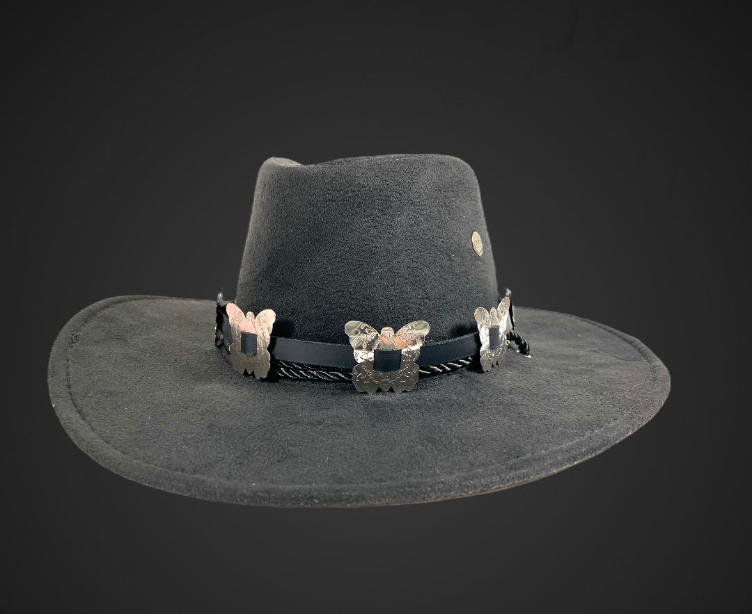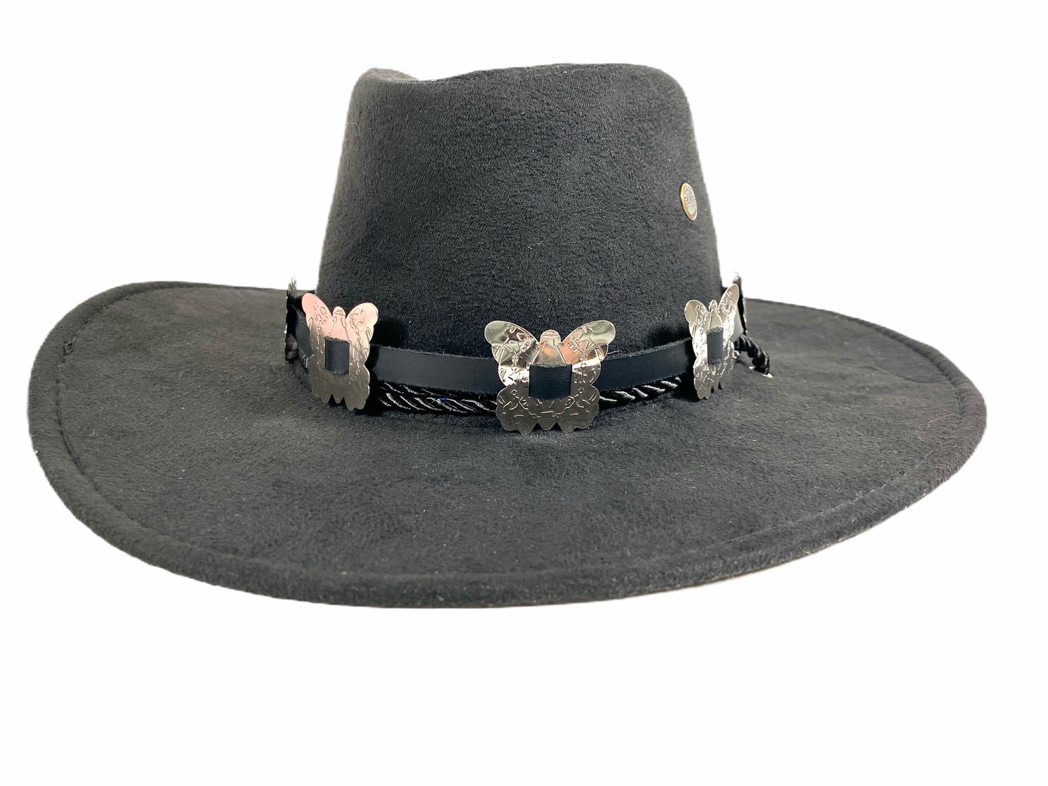 Wool Felt Cowboy Hat Steampunk Topper Victorian Mad Hatter Slash Butterfly Concho Band