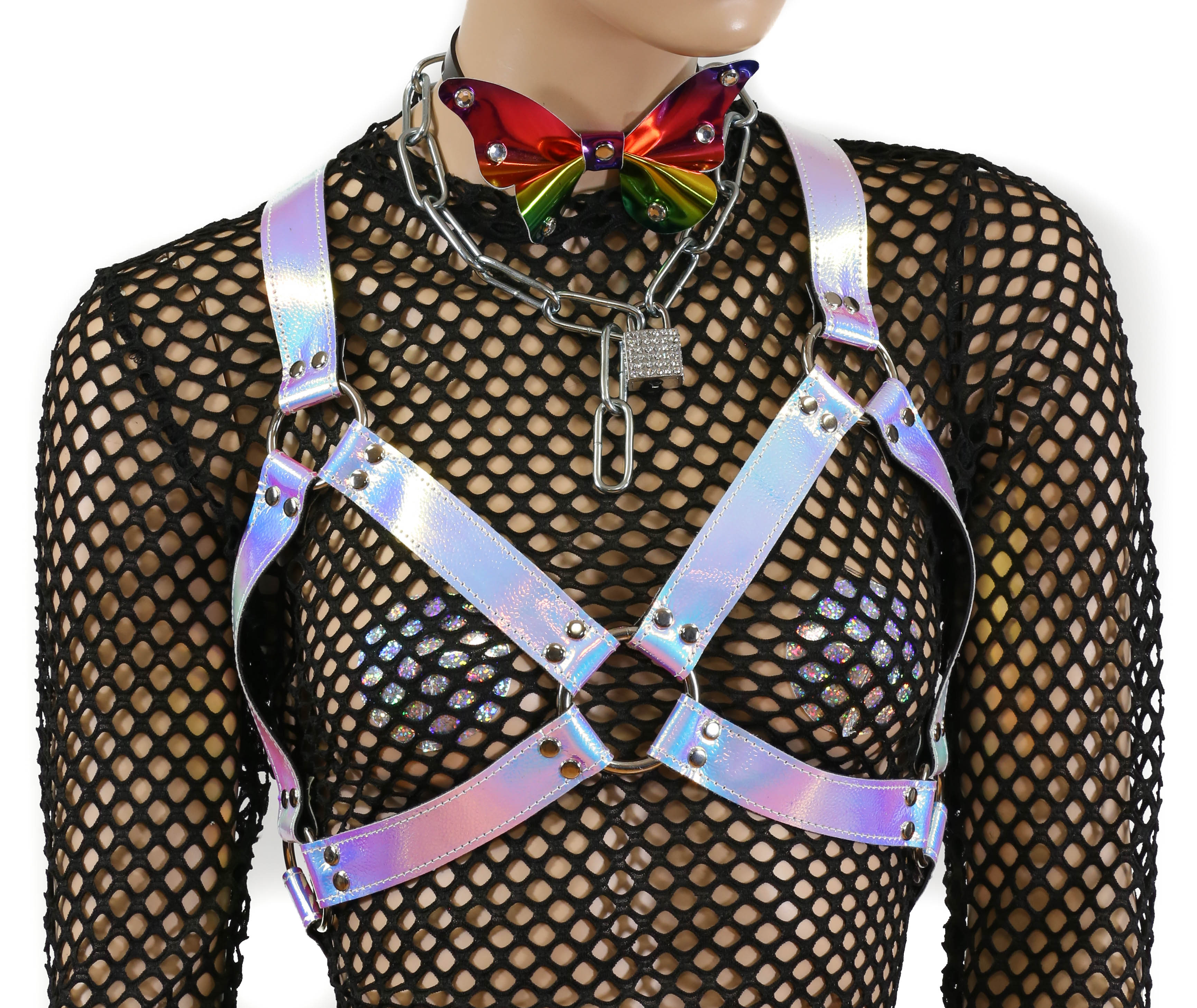 Pebbled Rainbow Leather Wide Bra Style Vegan Leather Harness