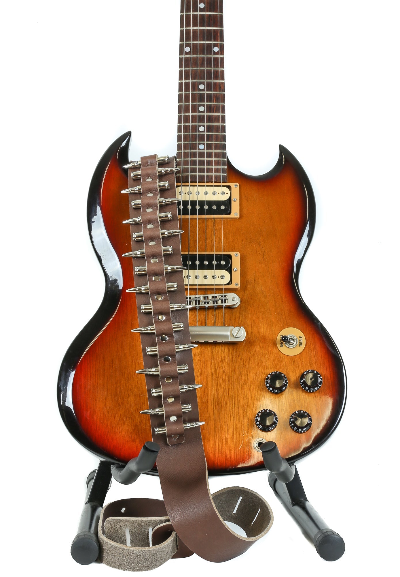 This 2 1/4" Wide Guitar Strap Has The Perfect Width For Anyone.  Finest American Cowhide Military Grade Leather Used.  Its Just A Raw Skin.  No Color Or Chemical Dye Used.  Edge Shaped And Sanded Properly So It Will Never Leave Stain Mark On Your Light Colored Shirts.  Professionally & Carefully Handmade.  Nickel Free Hardwares.