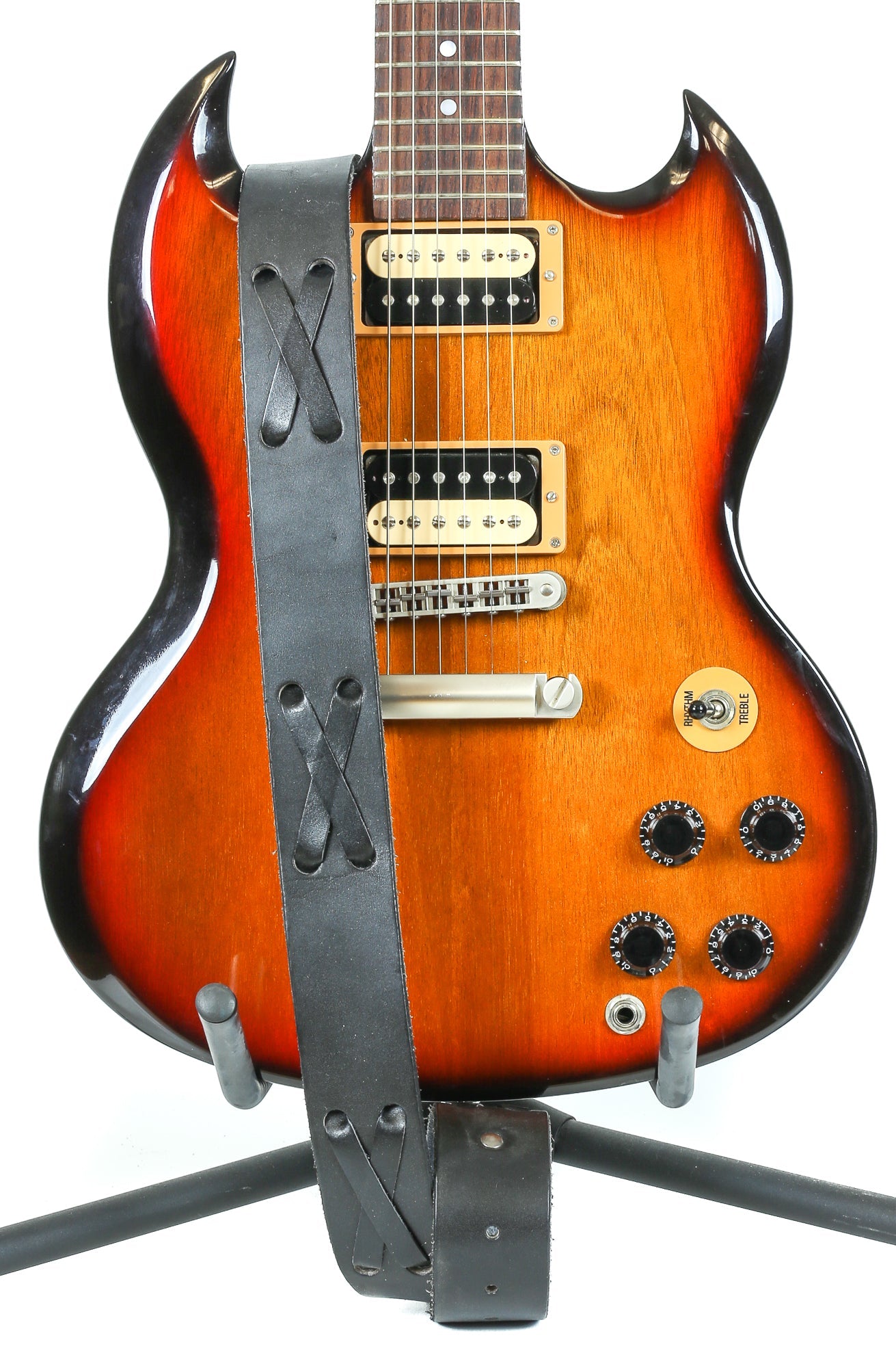 This 2 1/4" Wide Guitar Strap Has The Perfect Width For Anyone. Finest American Cowhide Military Grade Leather Used. Its Just A Raw Skin. No Color Or Chemical Dye Used. Edge Shaped And Sanded Properly So It Will Never Leave Stain Mark On Your Light Colored Shirts. Professionally & Carefully Handmade. Nickel Free Hardwares.