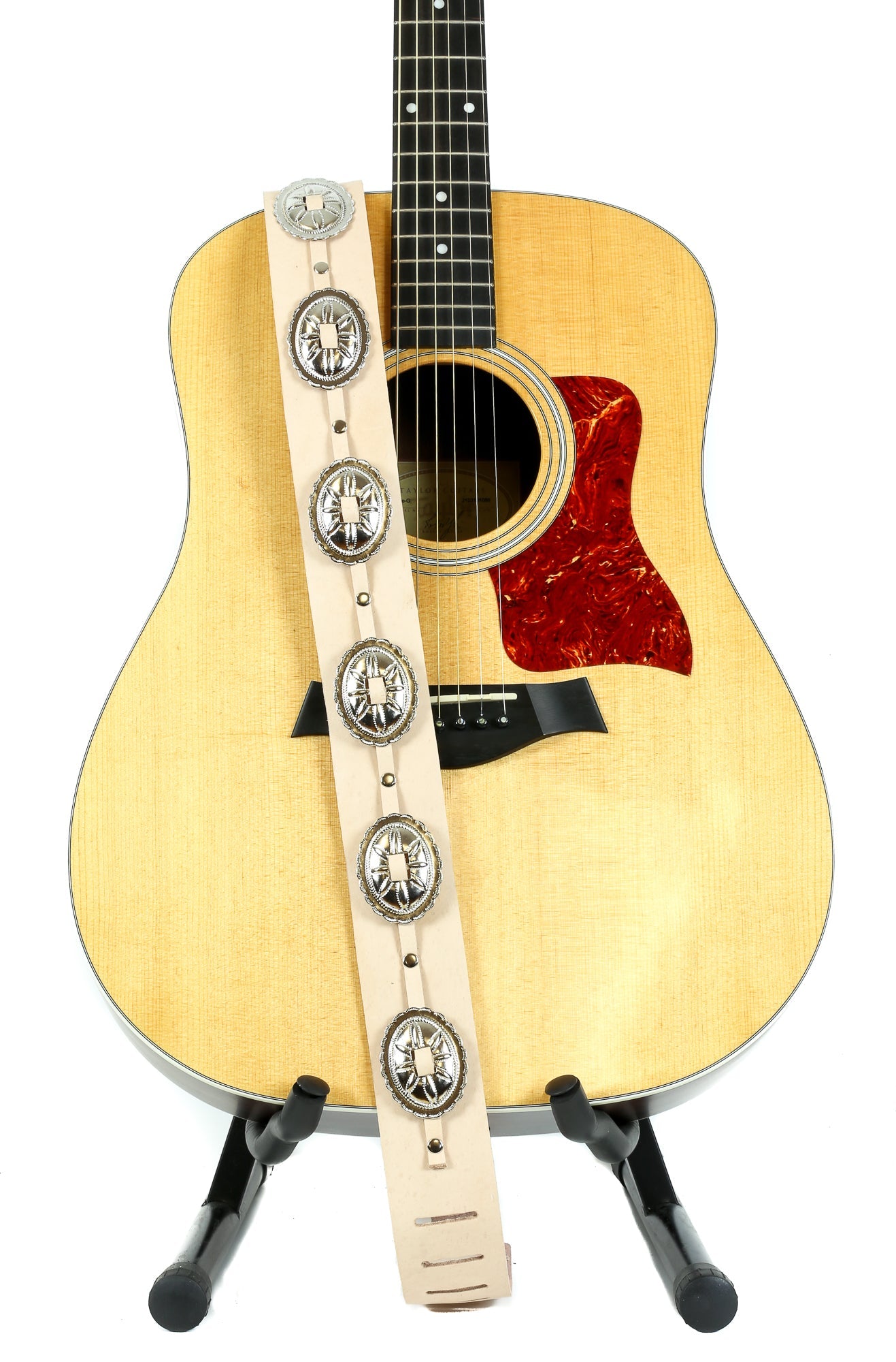 This 2 1/4" Wide Guitar Strap Has The Perfect Width For Anyone. Finest American Cowhide Military Grade Leather Used. Its Just A Raw Skin. No Color Or Chemical Dye Used. Edge Shaped And Sanded Properly So It Will Never Leave Stain Mark On Your Light Colored Shirts. Professionally & Carefully Handmade. Nickel Free Hardwares.