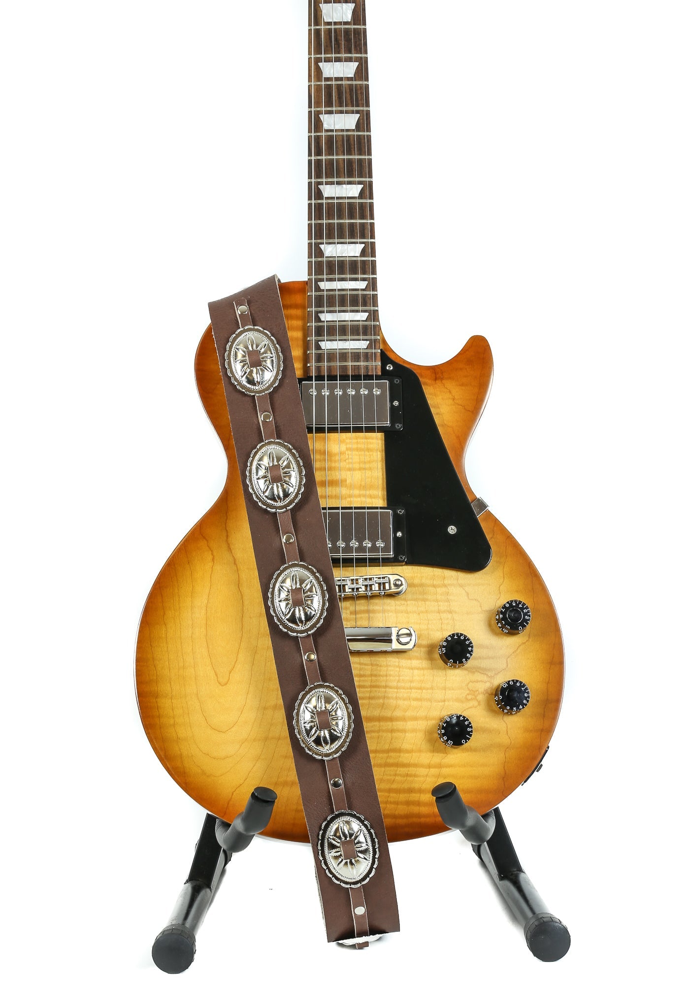 This 2 1/4" Wide Guitar Strap Has The Perfect Width For Anyone. Finest American Cowhide Military Grade Leather Used. Its Just A Raw Skin. No Color Or Chemical Dye Used. Edge Shaped And Sanded Properly So It Will Never Leave Stain Mark On Your Light Colored Shirts. Professionally & Carefully Handmade. Nickel Free Hardwares.