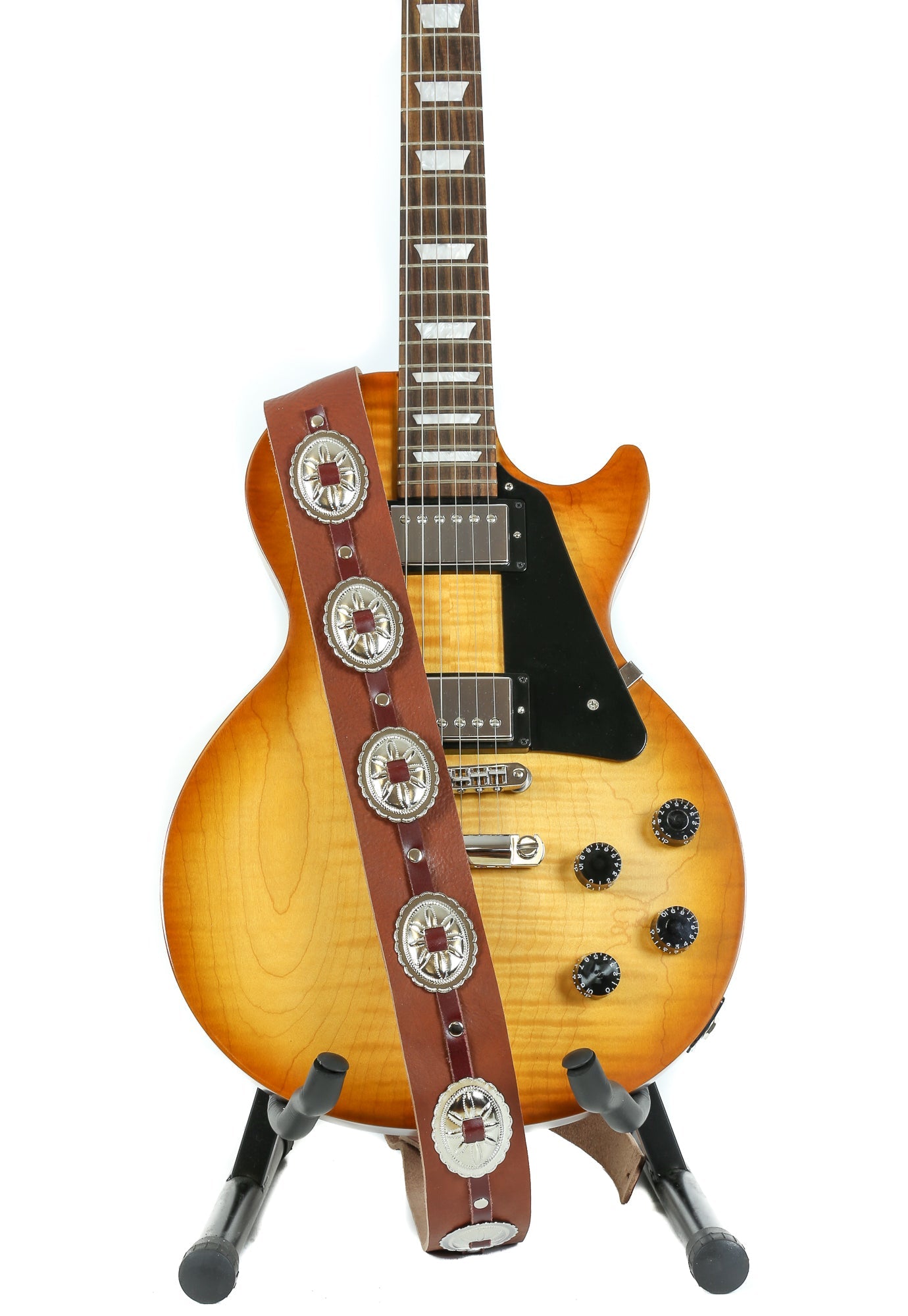 This 2 1/4" Wide Guitar Strap Has The Perfect Width For Anyone. Finest American Cowhide Military Grade Leather Used. Its Just A Raw Skin. No Color Or Chemical Dye Used. Edge Shaped And Sanded Properly So It Will Never Leave Stain Mark On Your Light Colored Shirts. Professionally & Carefully Handmade. Nickel Free Hardwares.