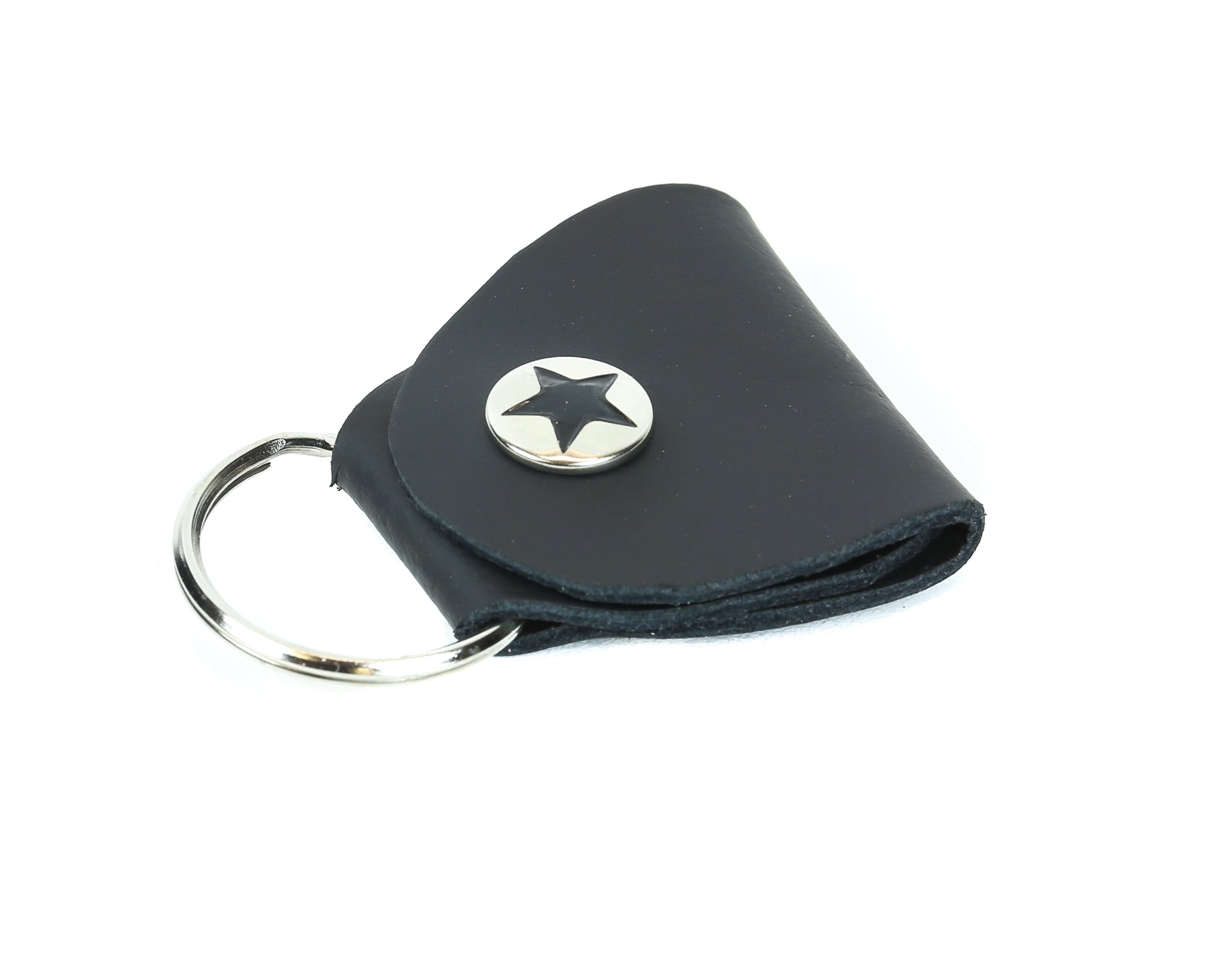Heavy Duty Guitar Pick Holder Key Ring Leather Professional Grade Black