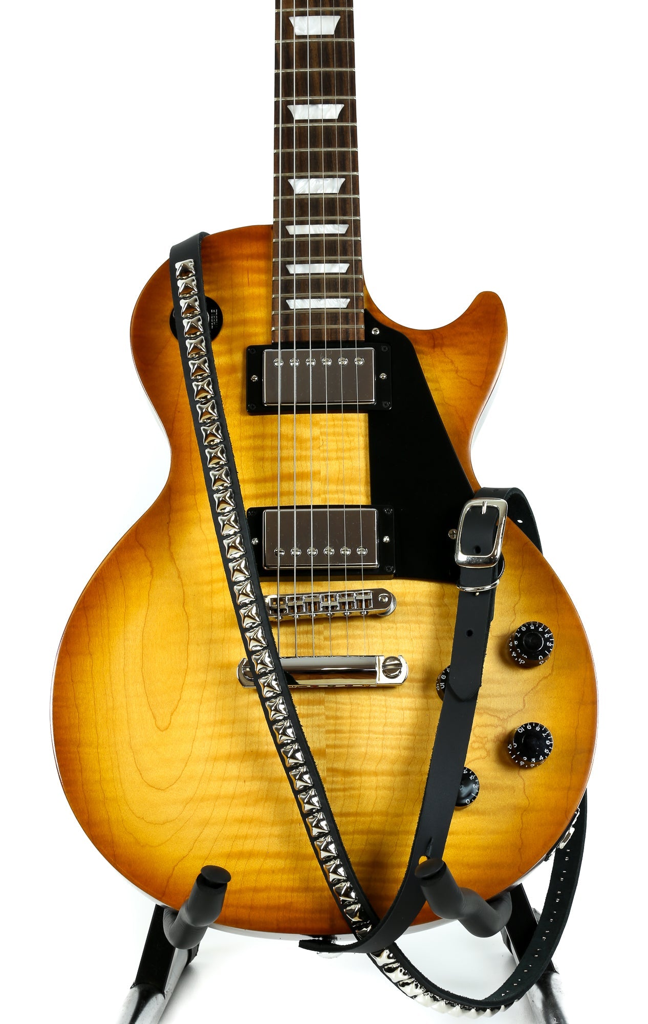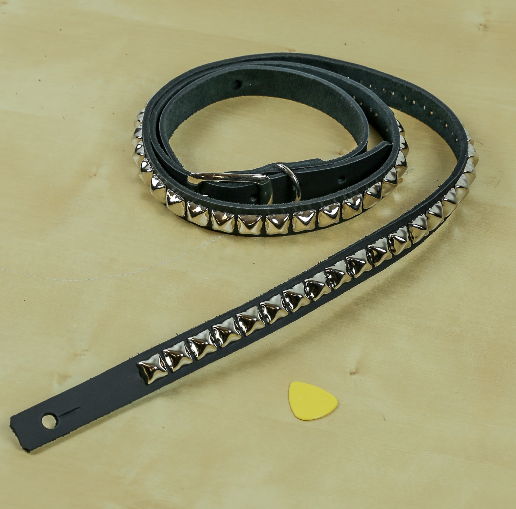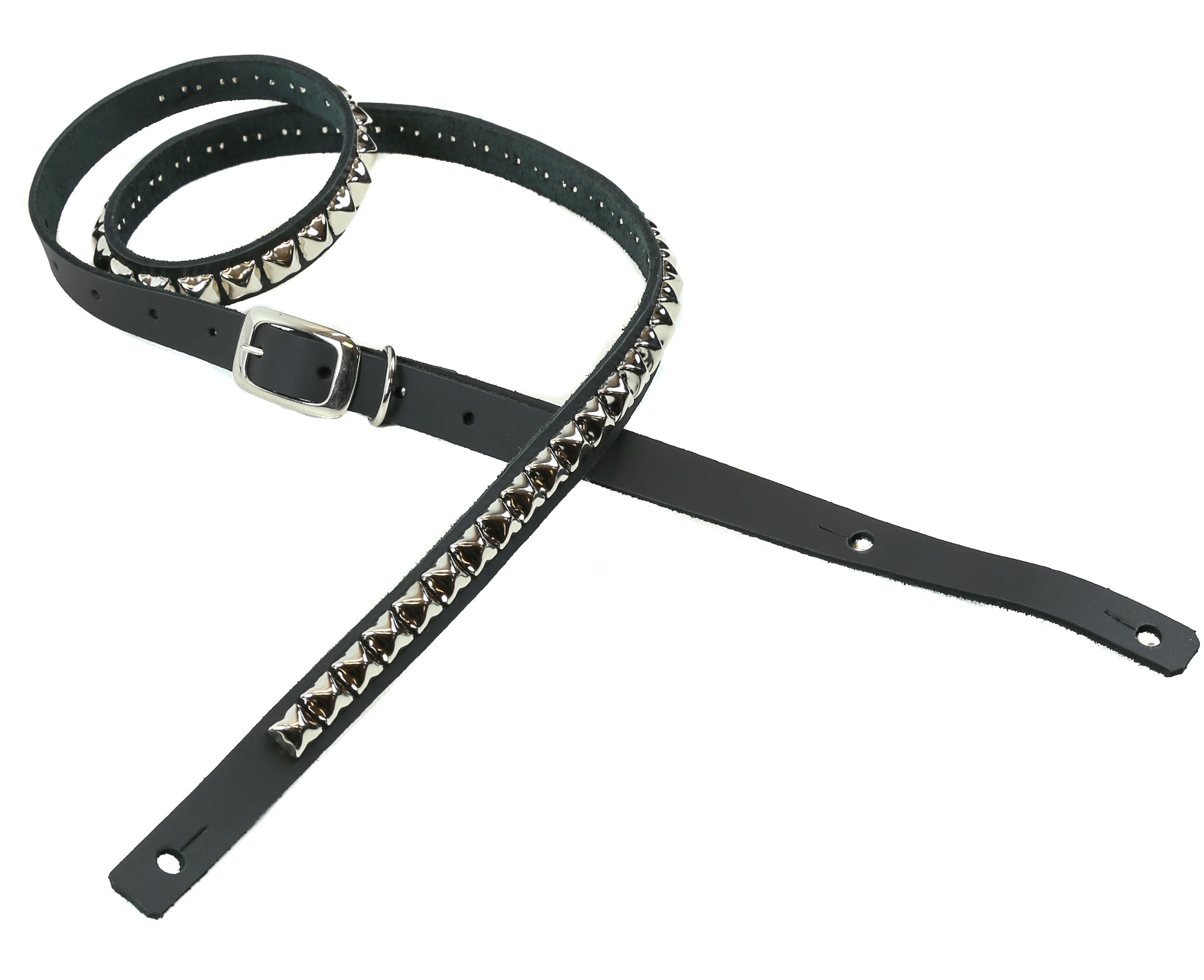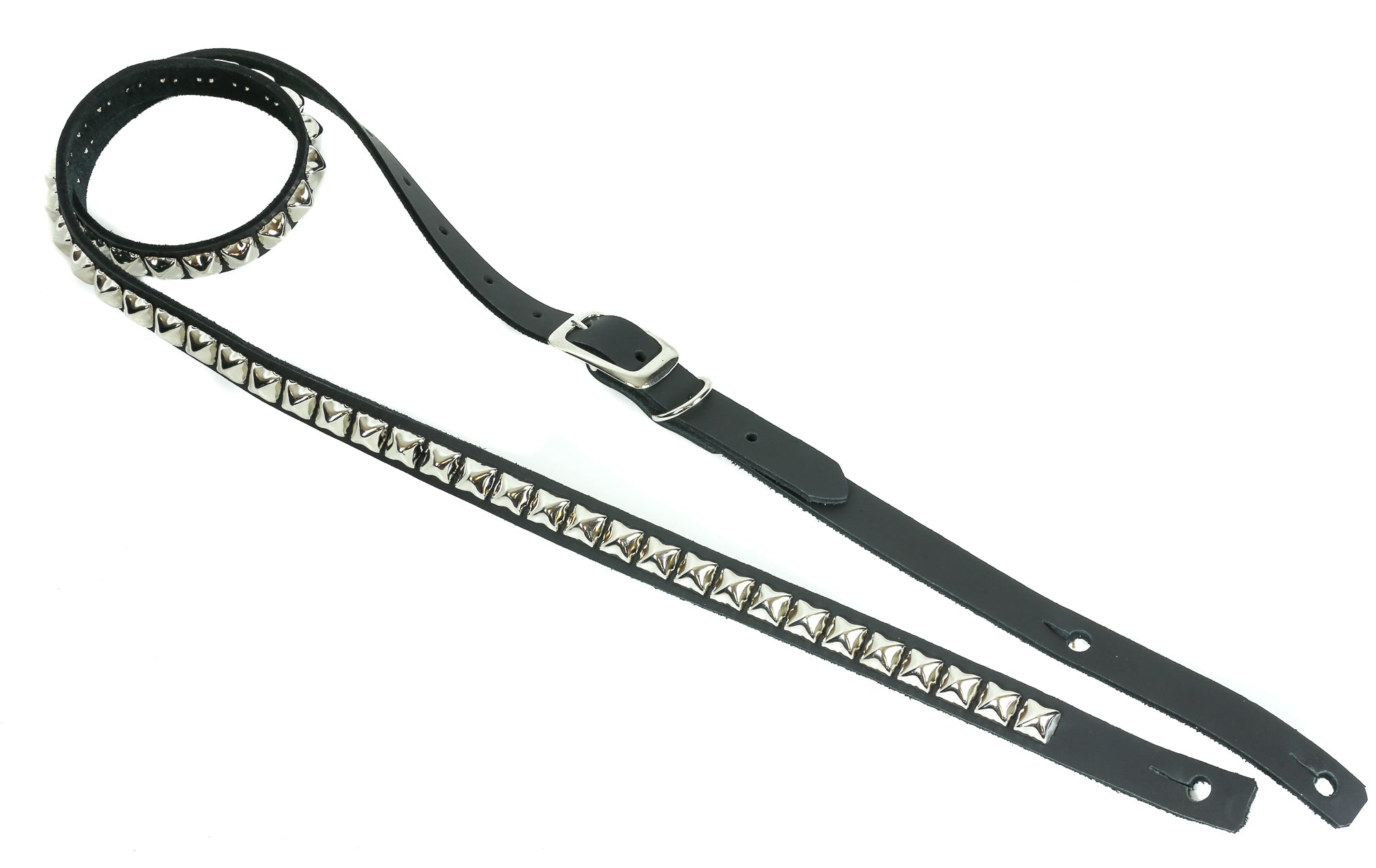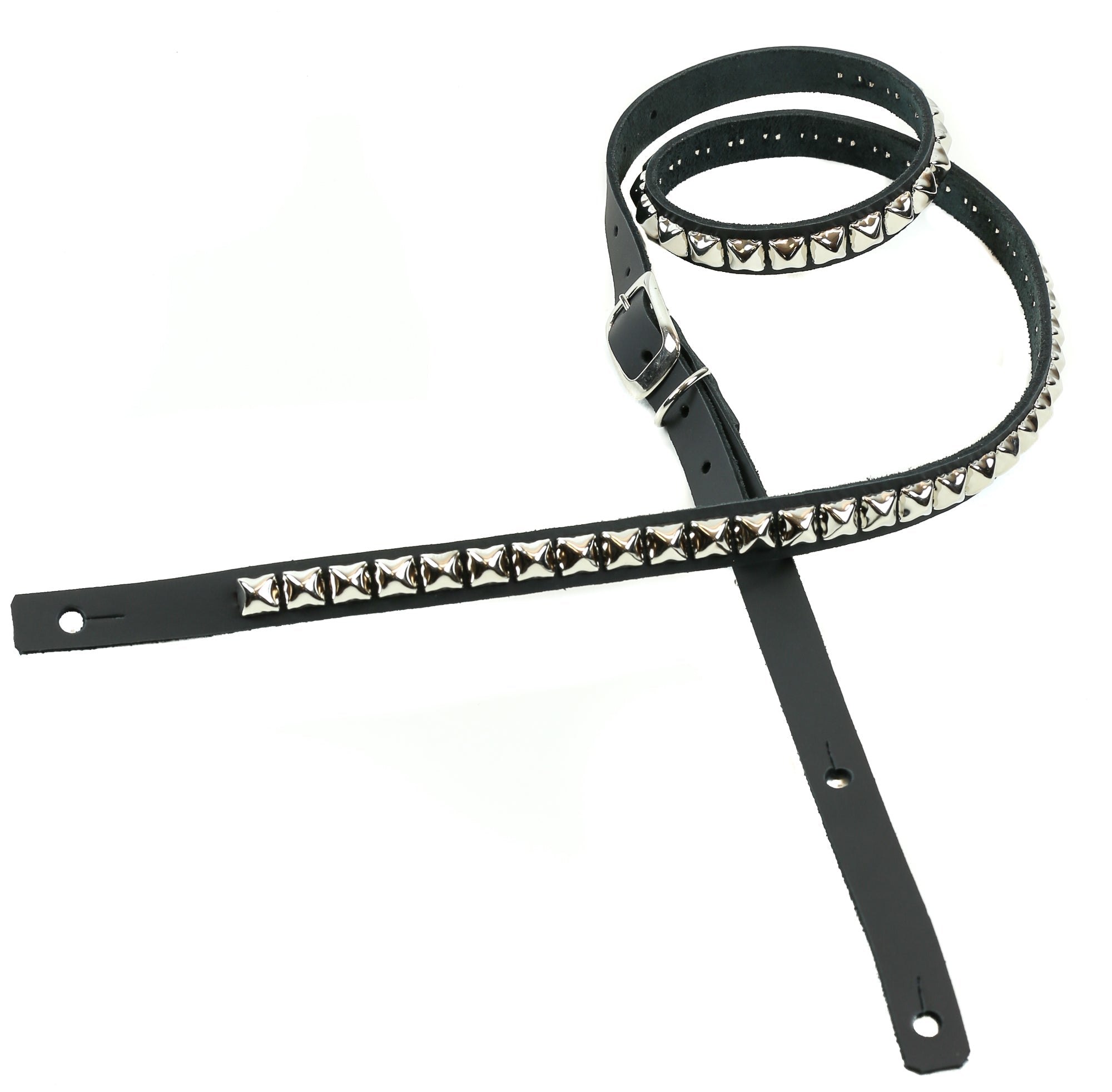 3/4" Wide 1/2" Pyramid Stud Black Cowhide Leather Buckle Guitar Strap