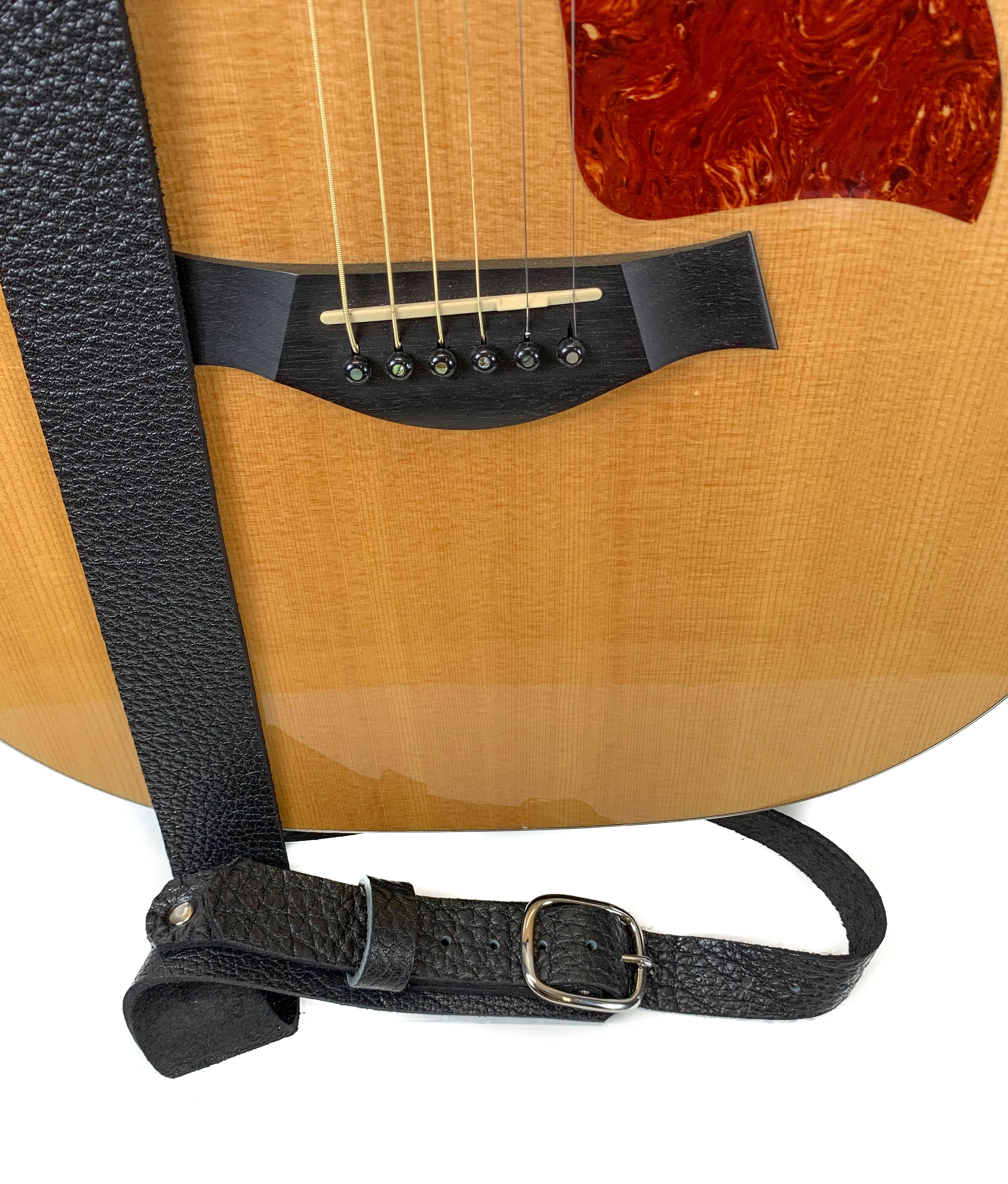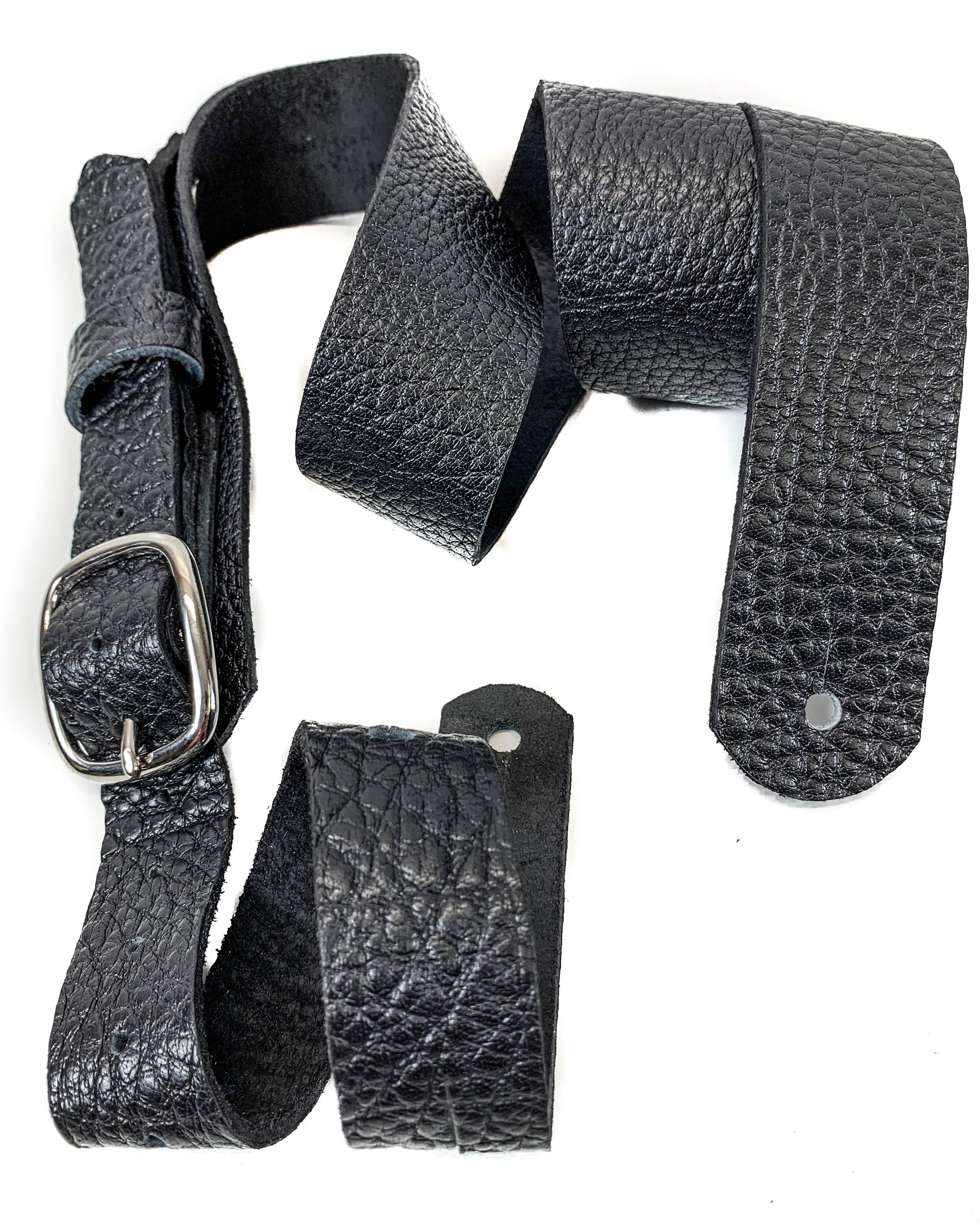 This 2 1/4" Wide Guitar Strap Has The Perfect Width For Anyone.  Finest American Cowhide Military Grade Leather Used.  Its Just A Raw Skin.  No Color Or Chemical Dye Used.  Edge Shaped And Sanded Properly So It Will Never Leave Stain Mark On Your Light Colored Shirts.  Professionally & Carefully Handmade.  Nickel Free Hardwares.