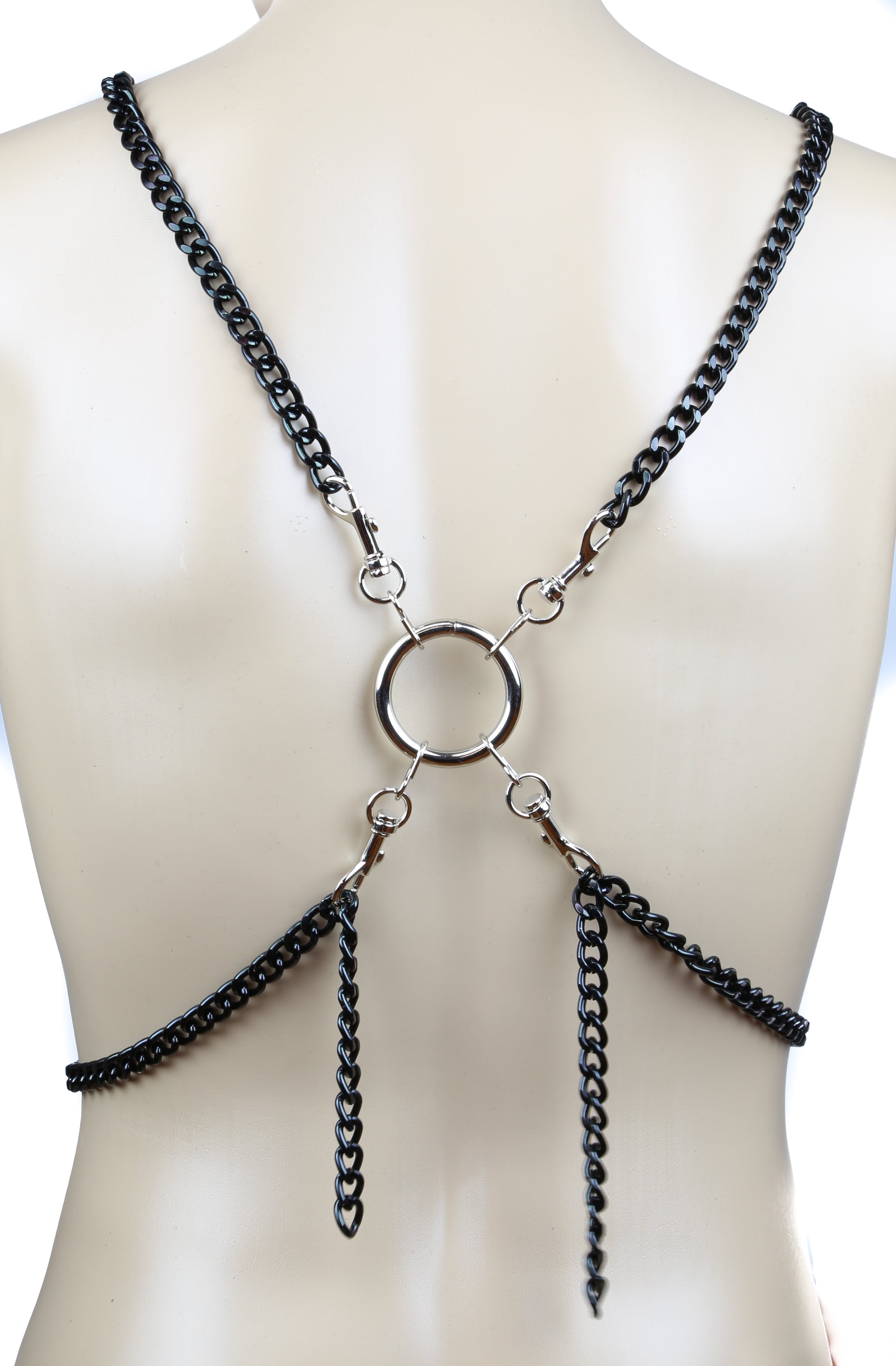 Black Chain And Leather Harness D Rings Snap Adjustable