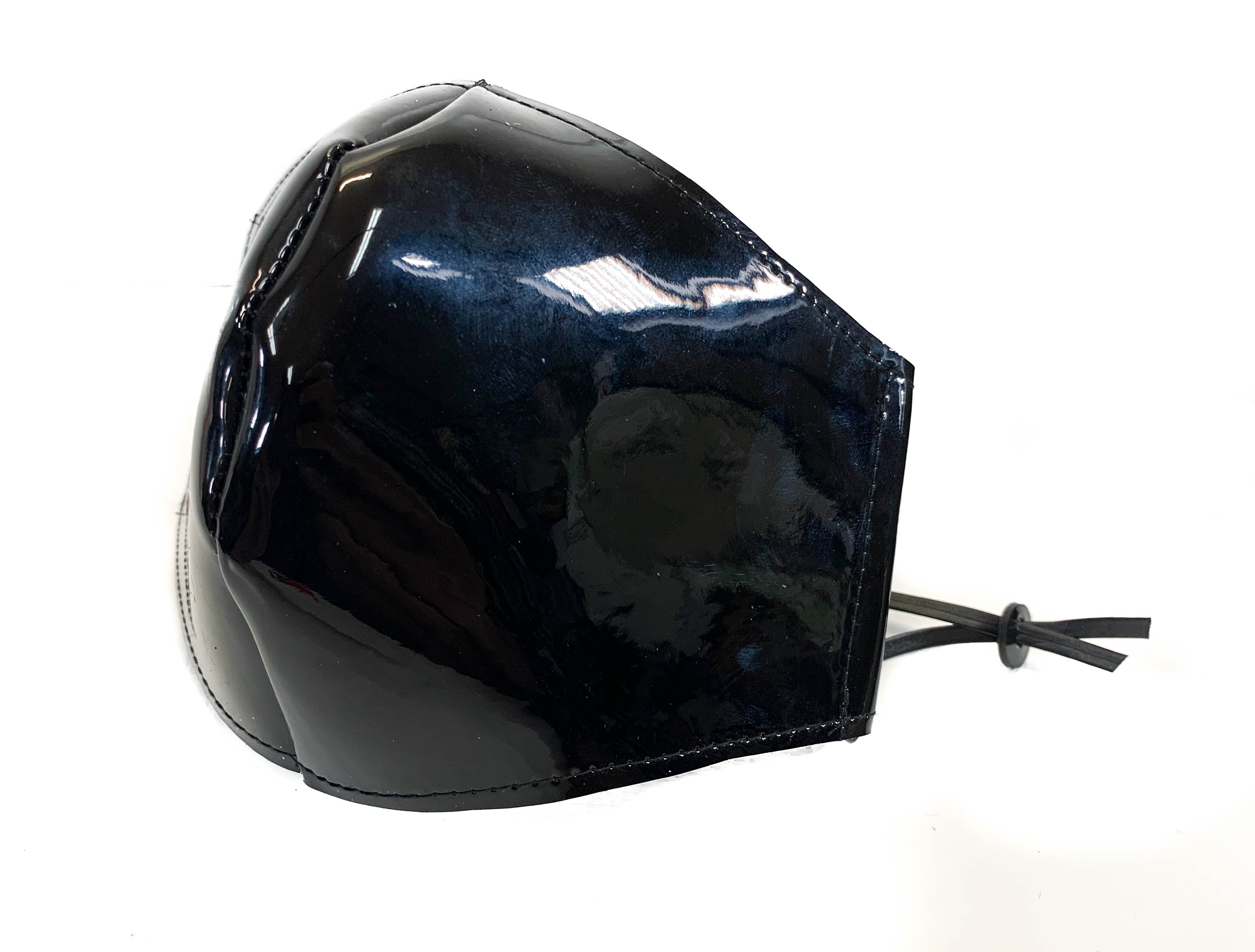 Face covering mask, these non-medical face coverings are made out of Synthetic Leather bands that for comfortably over the ears. Mask measures approx 7.5" (19.5cm) X 5" (13cm)