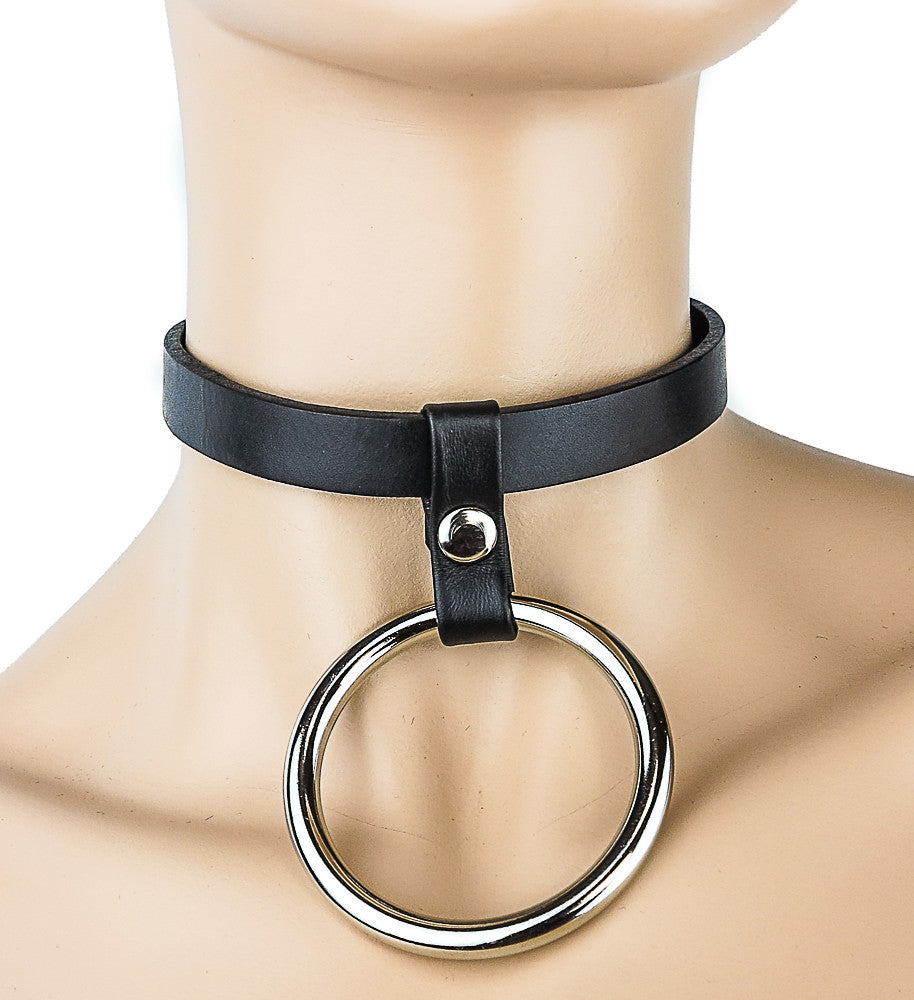 Bondage Simple Black Choker With Hanging Gold O Ring