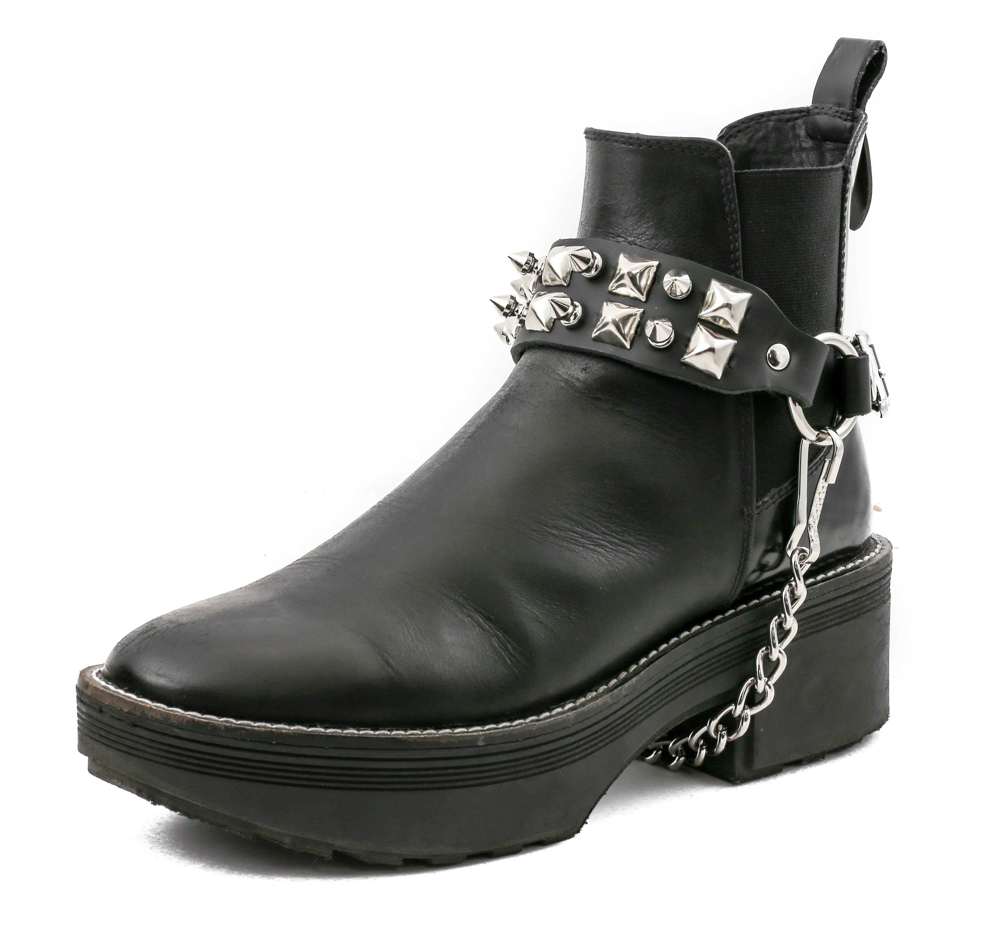 | 2 ROW SPIKES AND PYRAMIDS BOOTSTRAP WITH CHAIN |