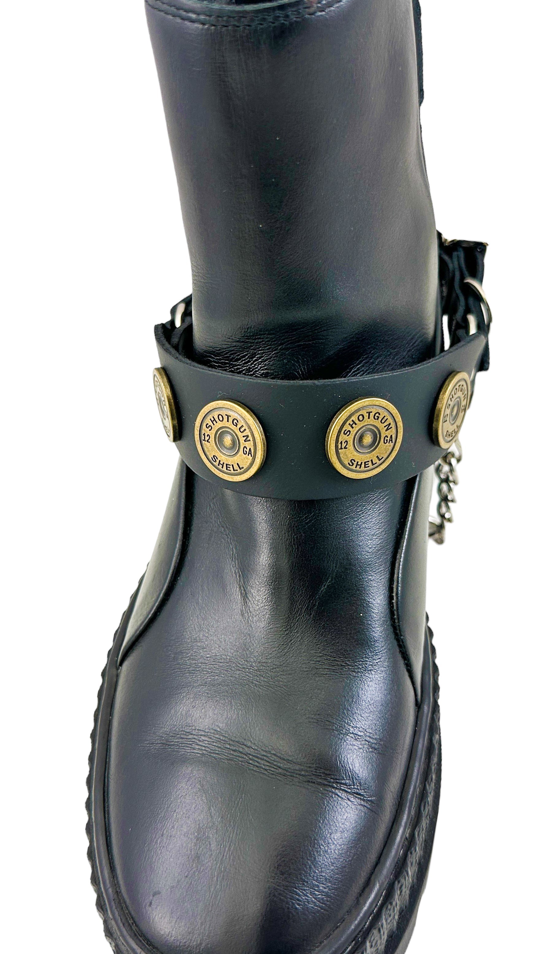 SHOTGUN SHELL SNAP BUTTON    BOOTSTRAP OVER LEATHER