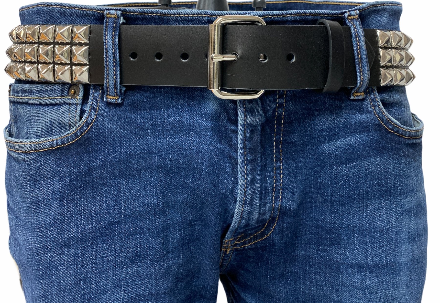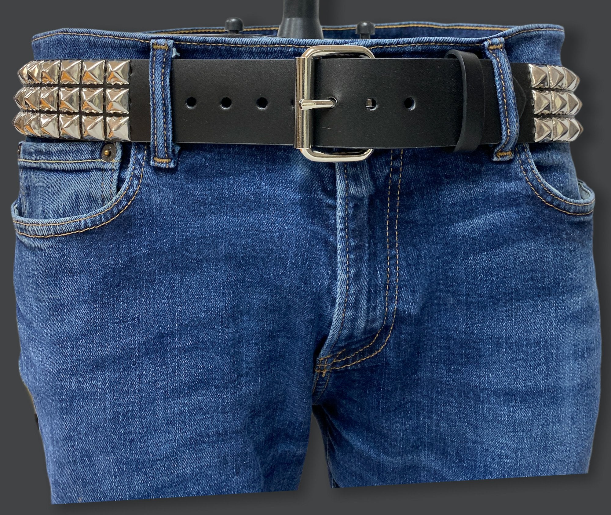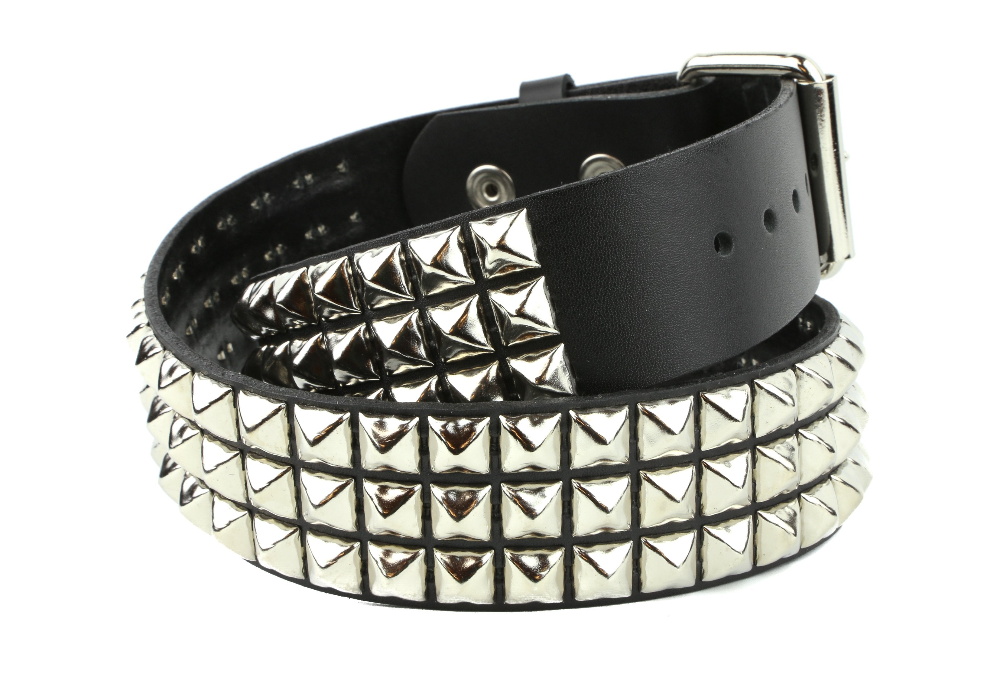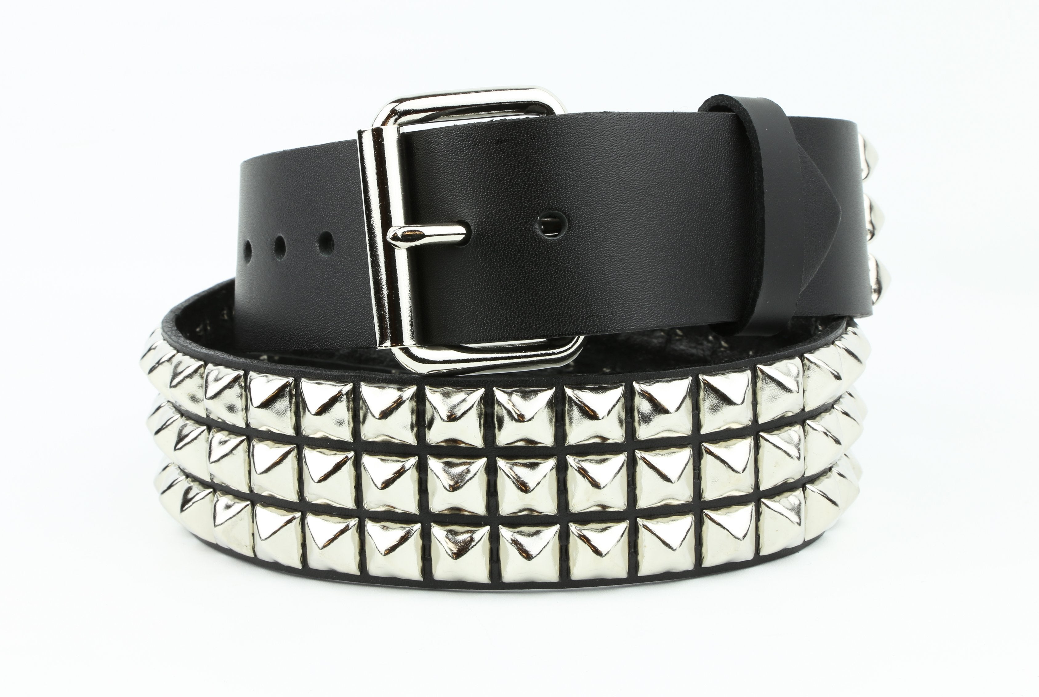 3 ROW 1/2" SILVER PYRAMID STUDS BELT, 1 3/4" WIDE