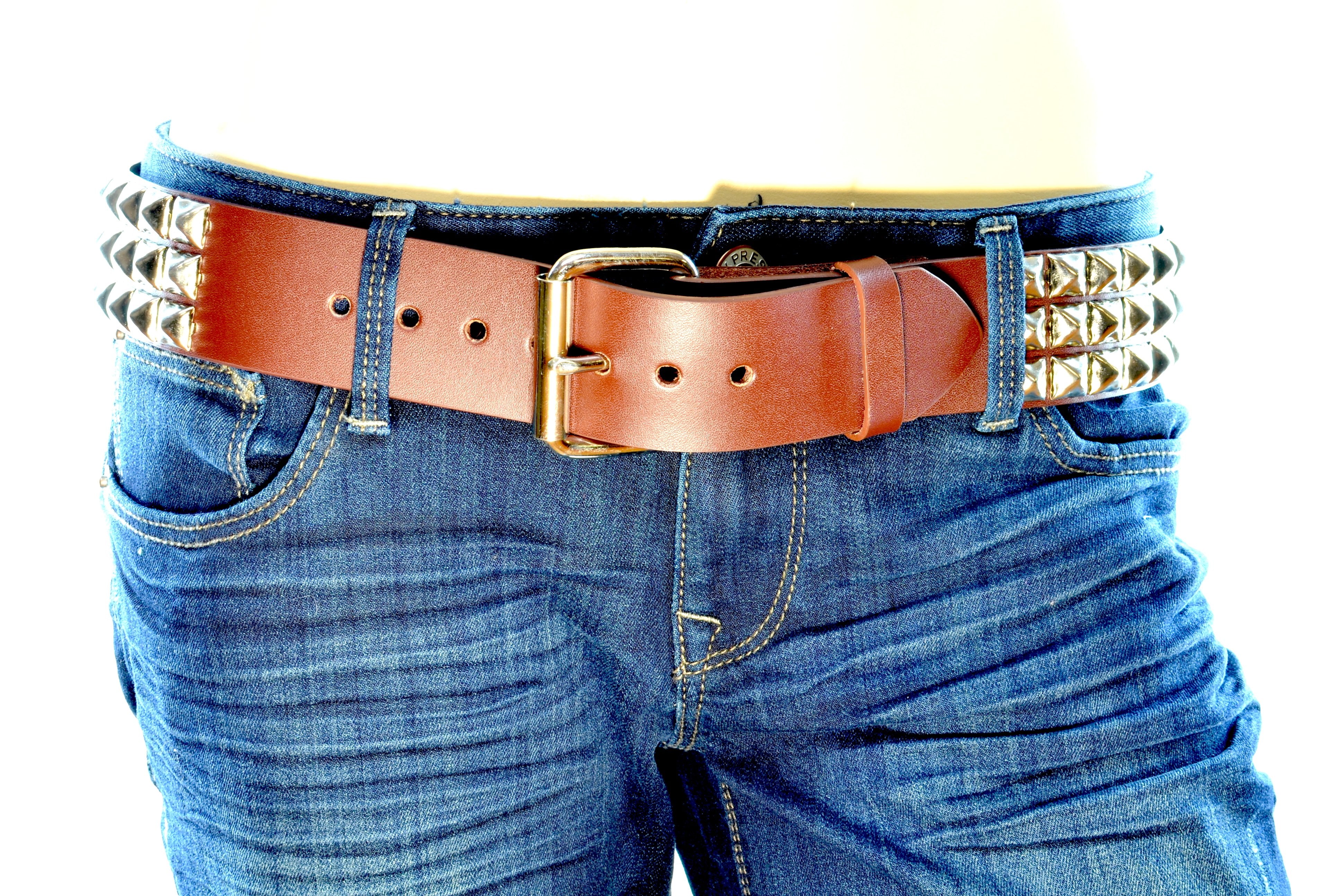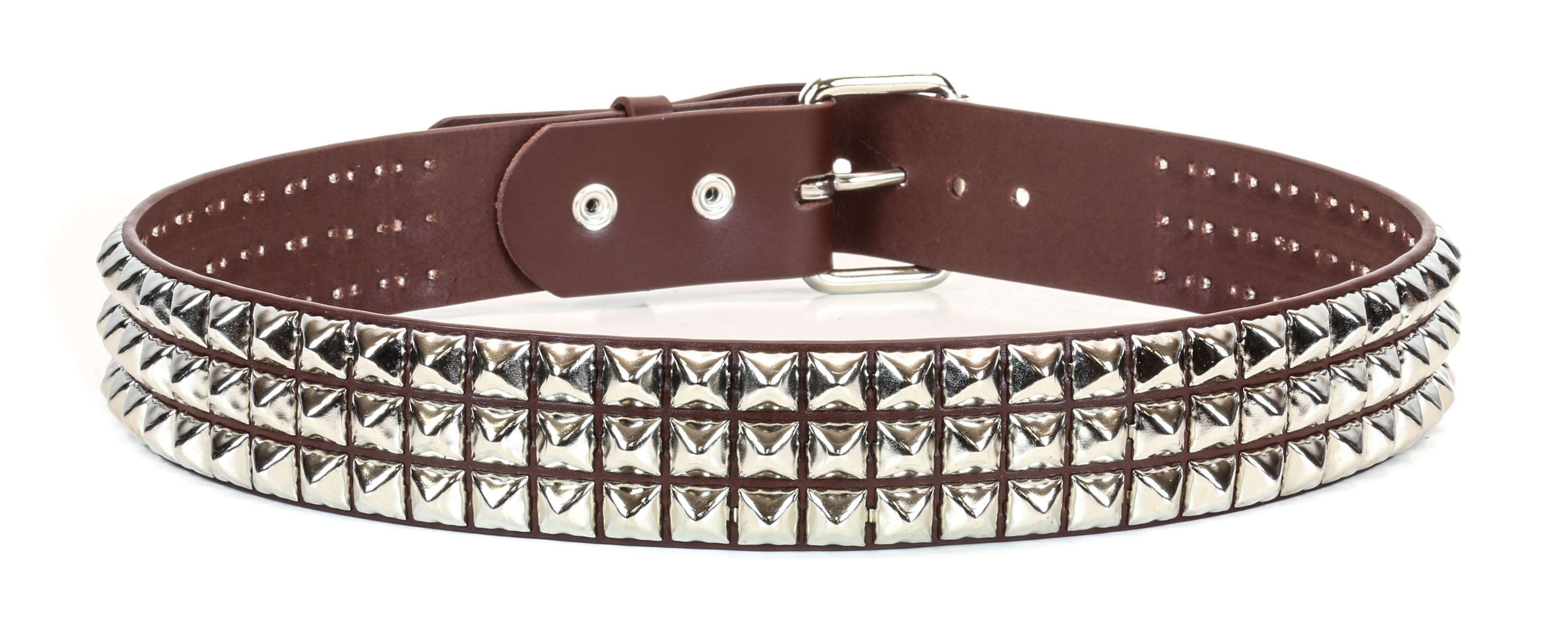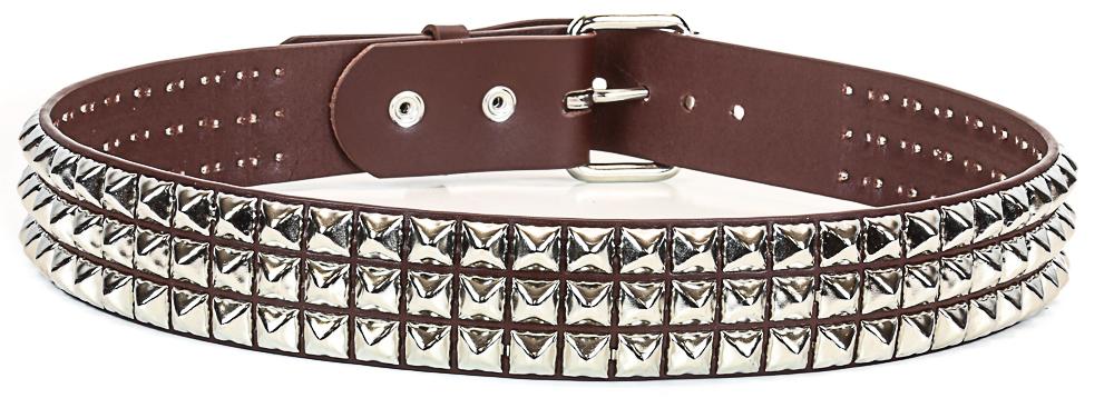 BROWN LEATHER 3 ROW 1/2" PYRAMID STUD BELT