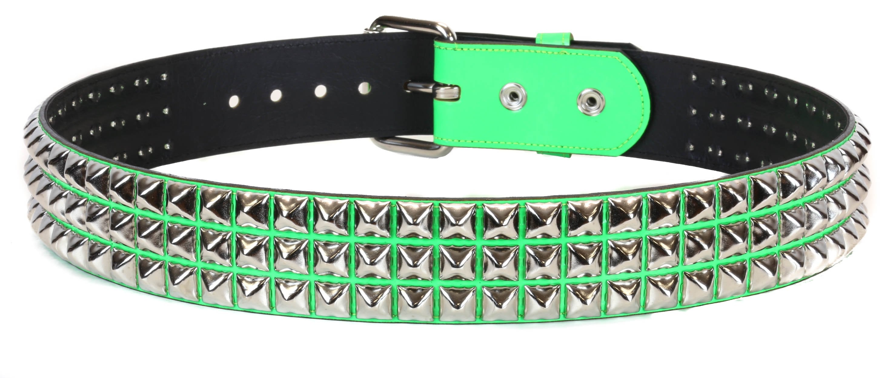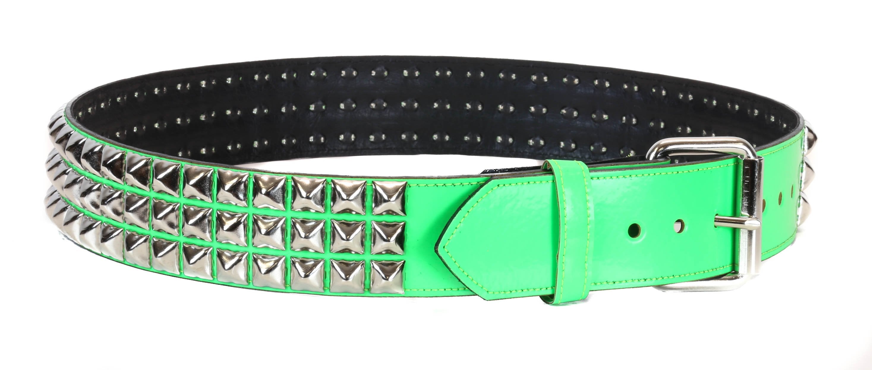 GREEN PATENT 3 ROW 1/2" PYRAMID STUD BELT, 1 3/4" WIDE